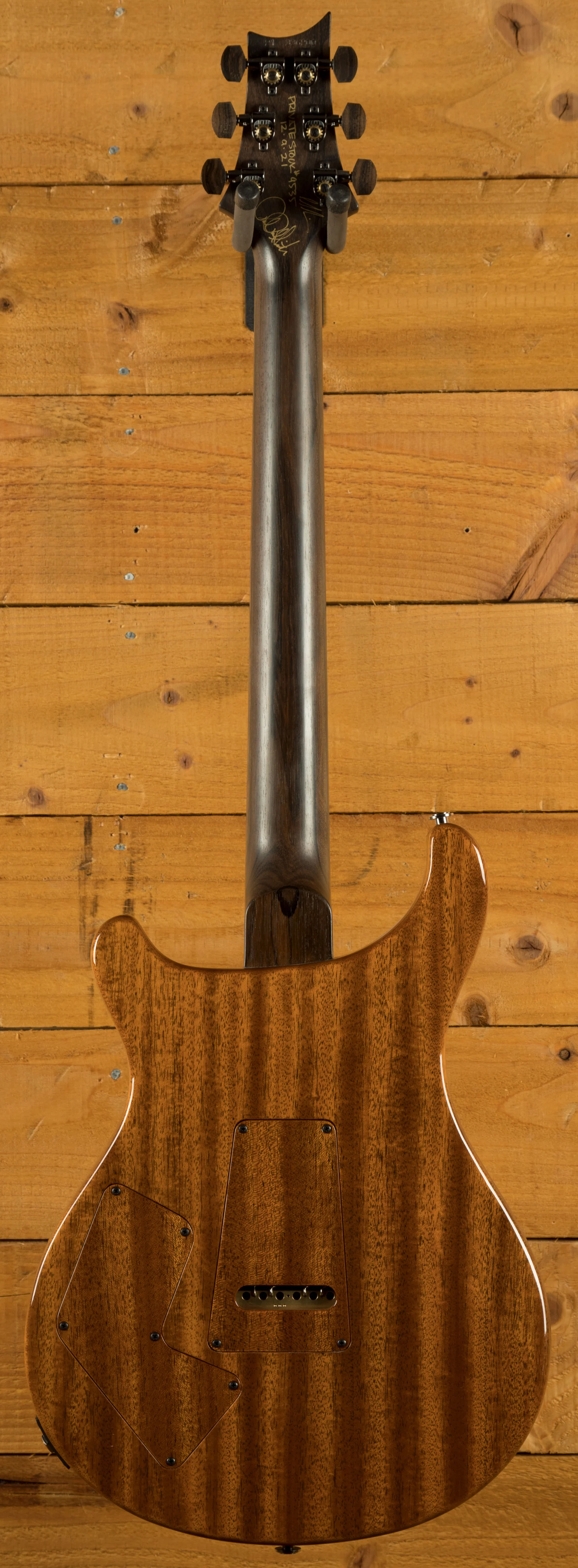 The Ziricote neck is absolutely sublime, it features some awesome natural grain figuring which really highlights the beauty of this illusive tone wood. It includes the PRS Pattern neck-carve which is smooth and super comfortable, allowing for quick and easy movements across the neck.