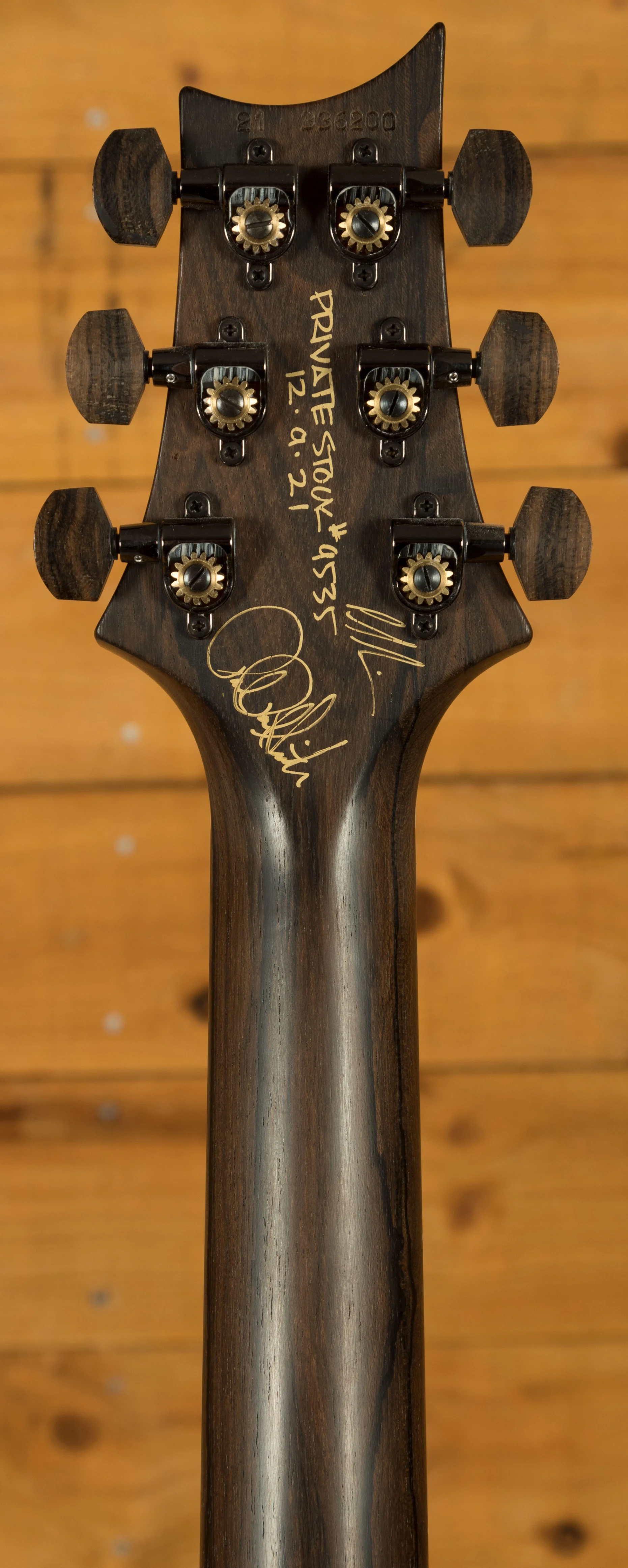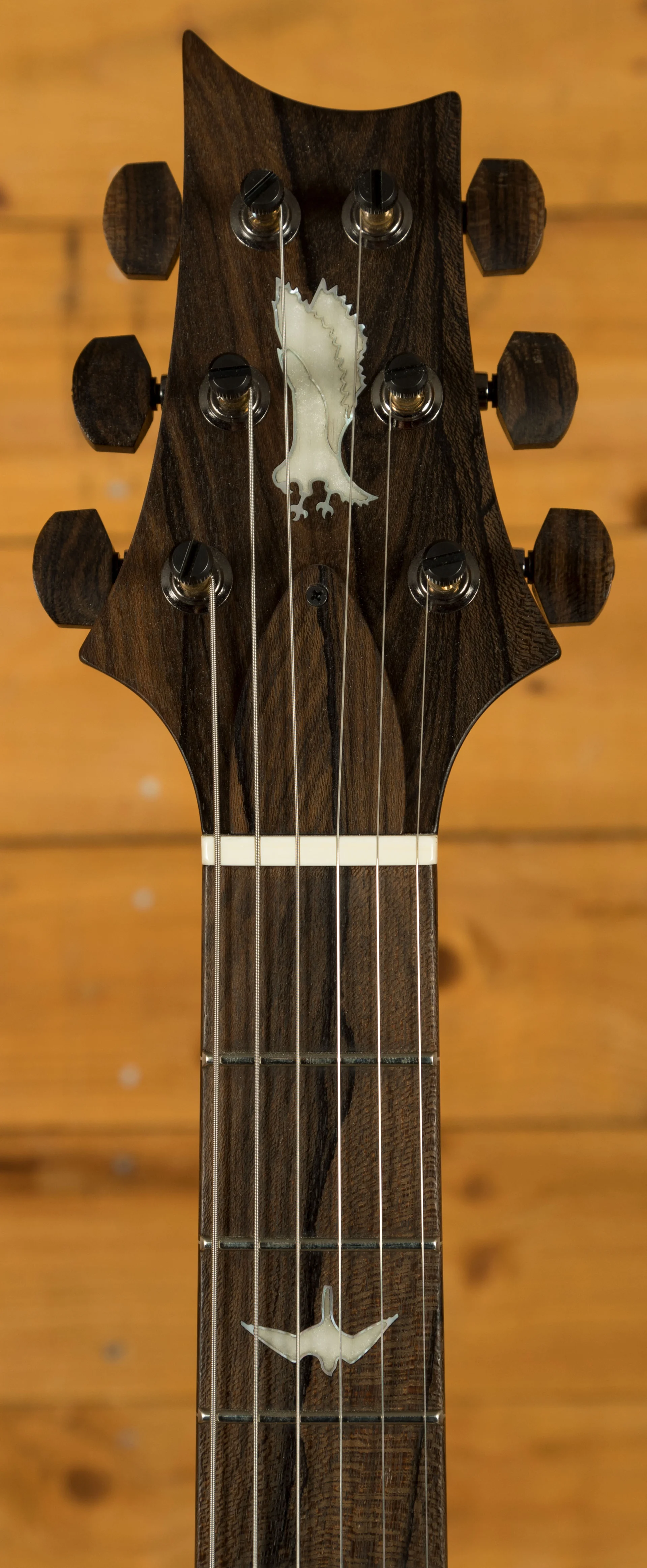 The Fingerboard is one of many eye-catching features of this Private Stock, featuring Matching small bird inlays with Mother of Pearl outlines. Finally the neck is beautifully finished with a Ziricote headstock veneer adorned with the iconic Private Stock Eagle sitting proudly. The Attention to detail on this fretboard is truly astonishing and really shows why the PRS Private Stock is held in such high regard.