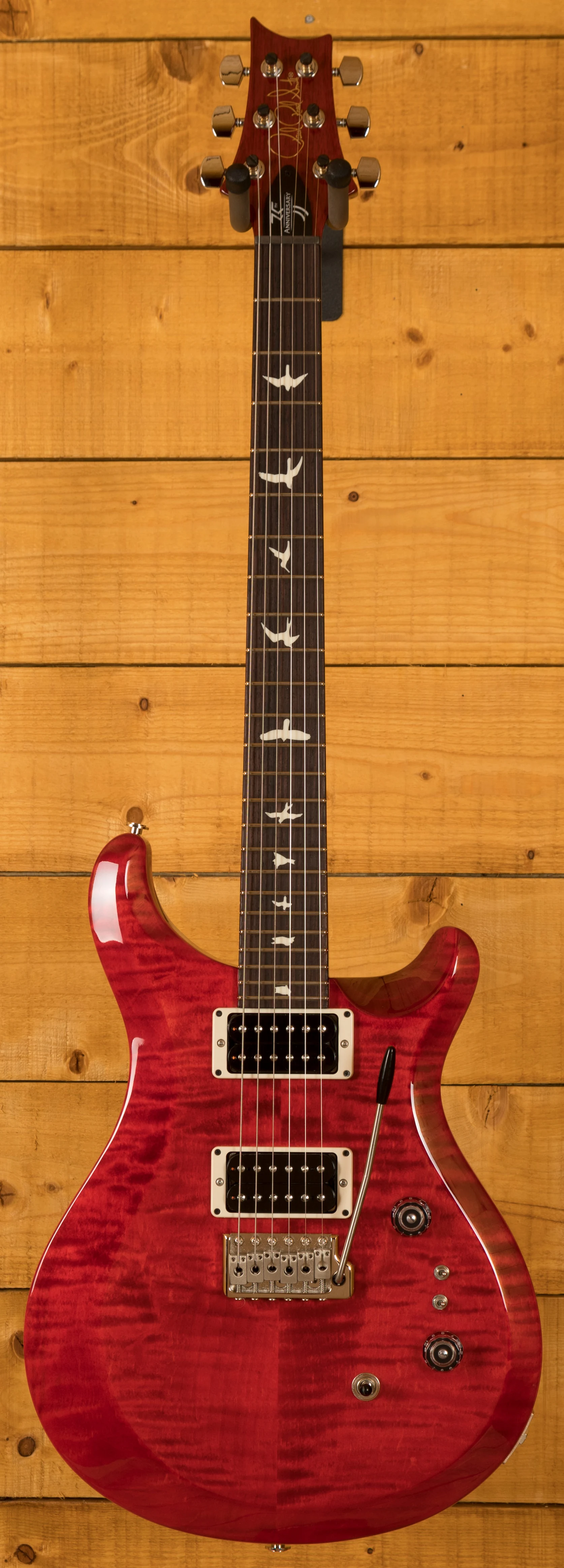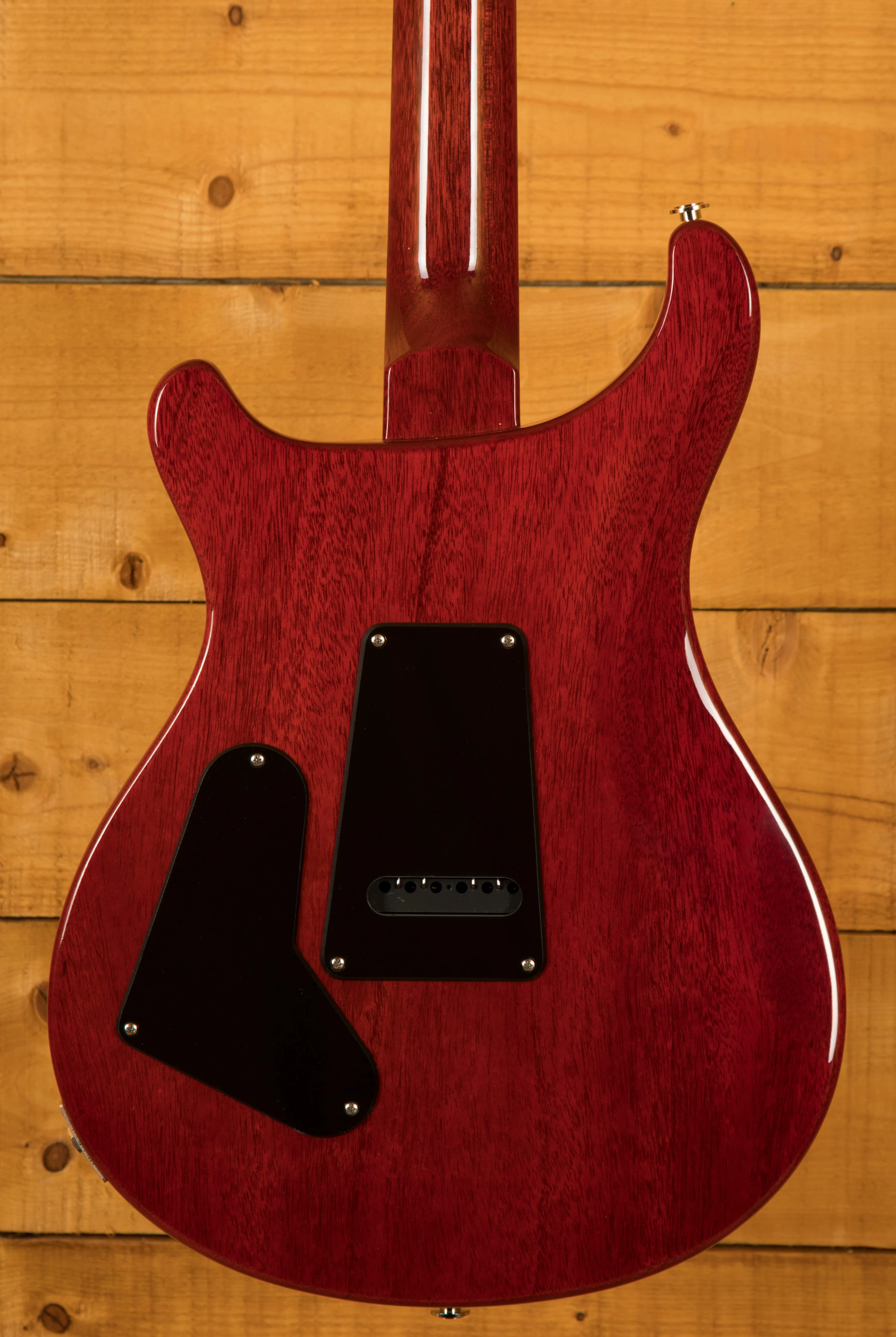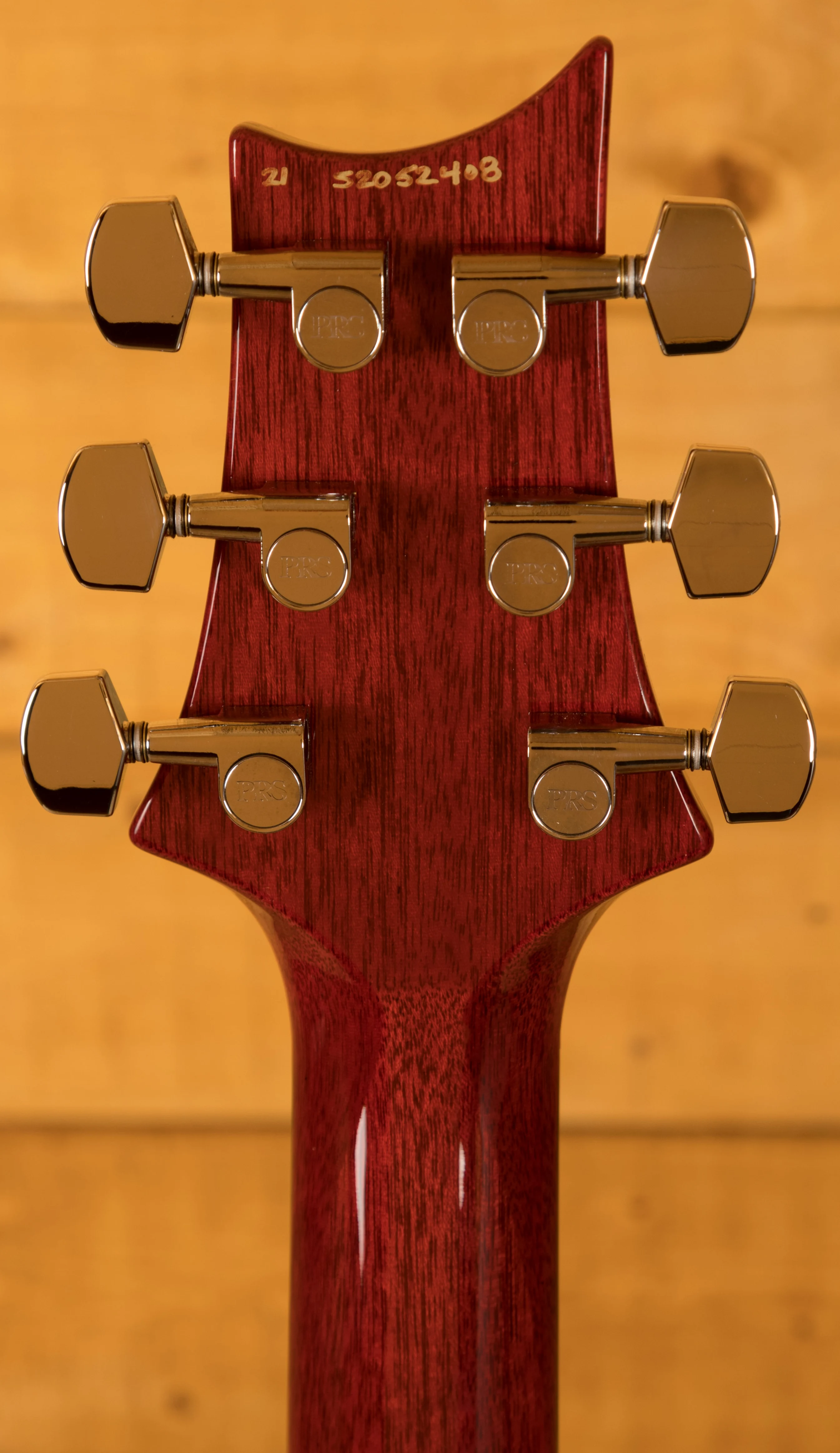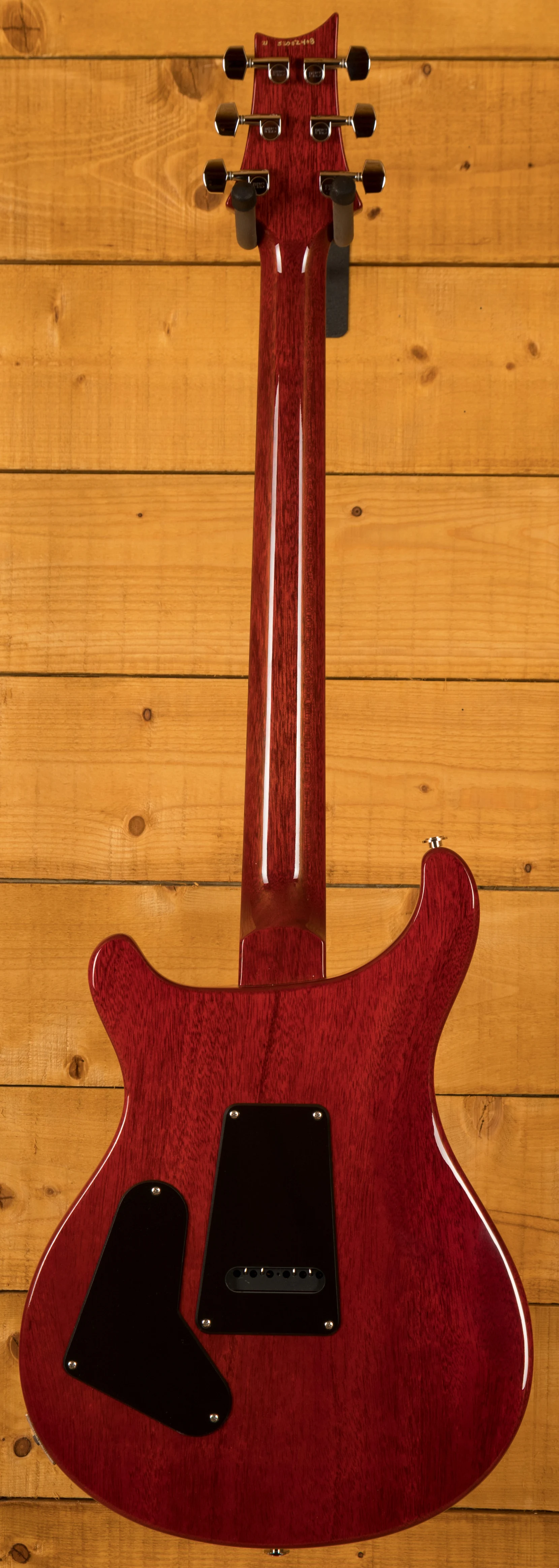 The Mahogany body with Maple top offers a rich warmth and depth that complements the beautiful Scarlet Red. With a Pattern Regular profile, 25" scale length and of course, 24 frets, the Mahogany neck feels really comfortable and familiar. The iconic PRS birds sit proudly atop the Rosewood fingerboard for the definitive PRS experience.