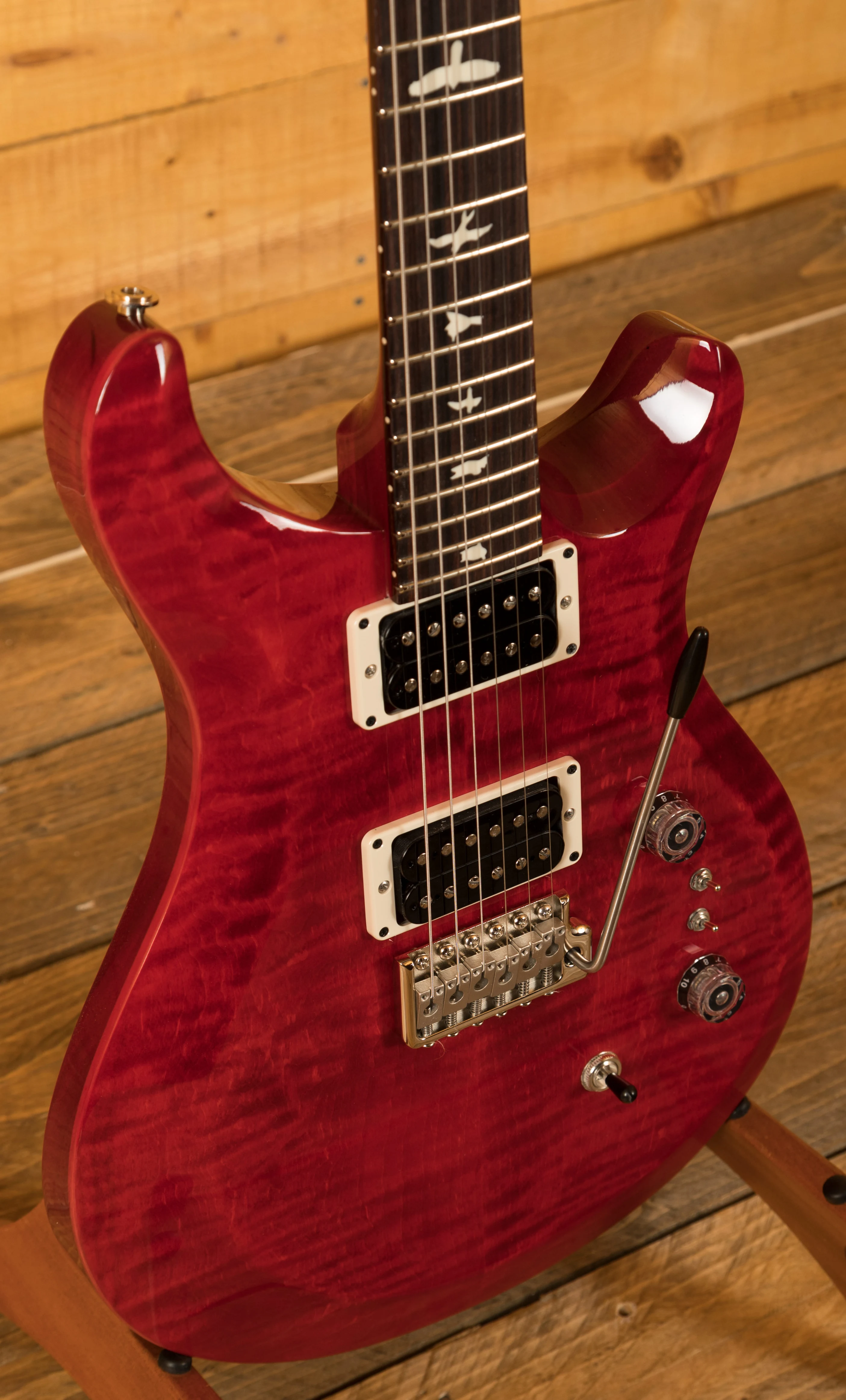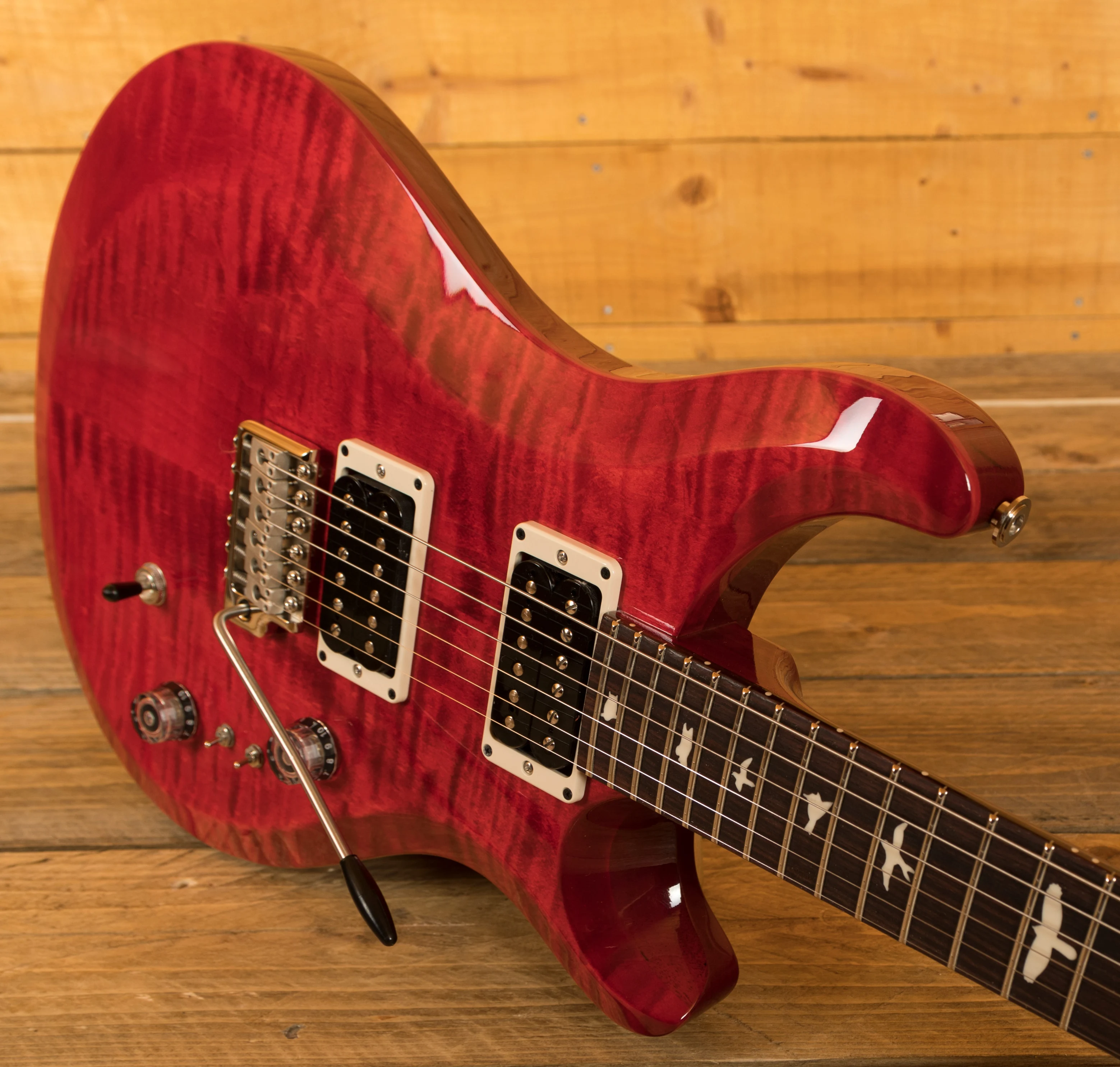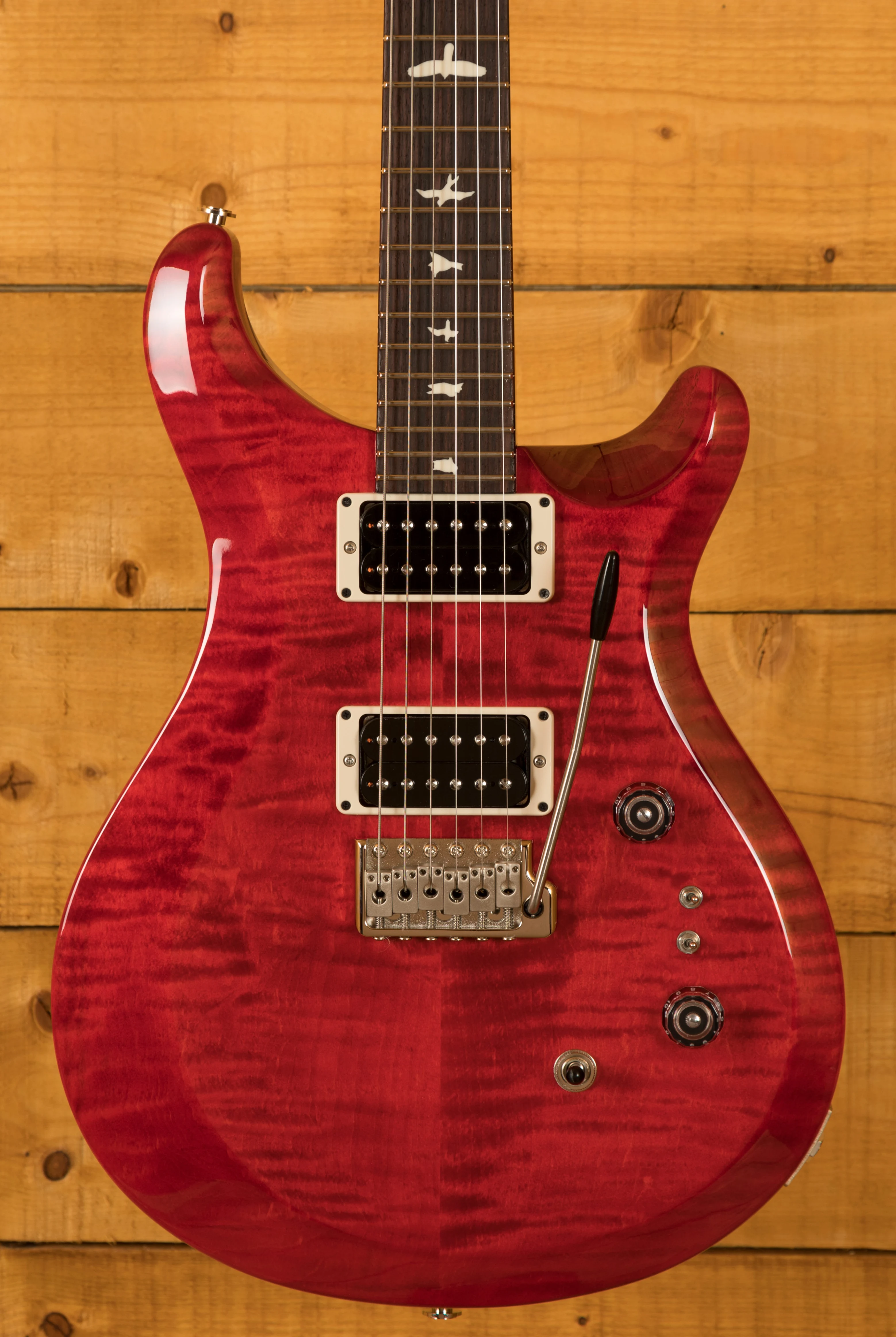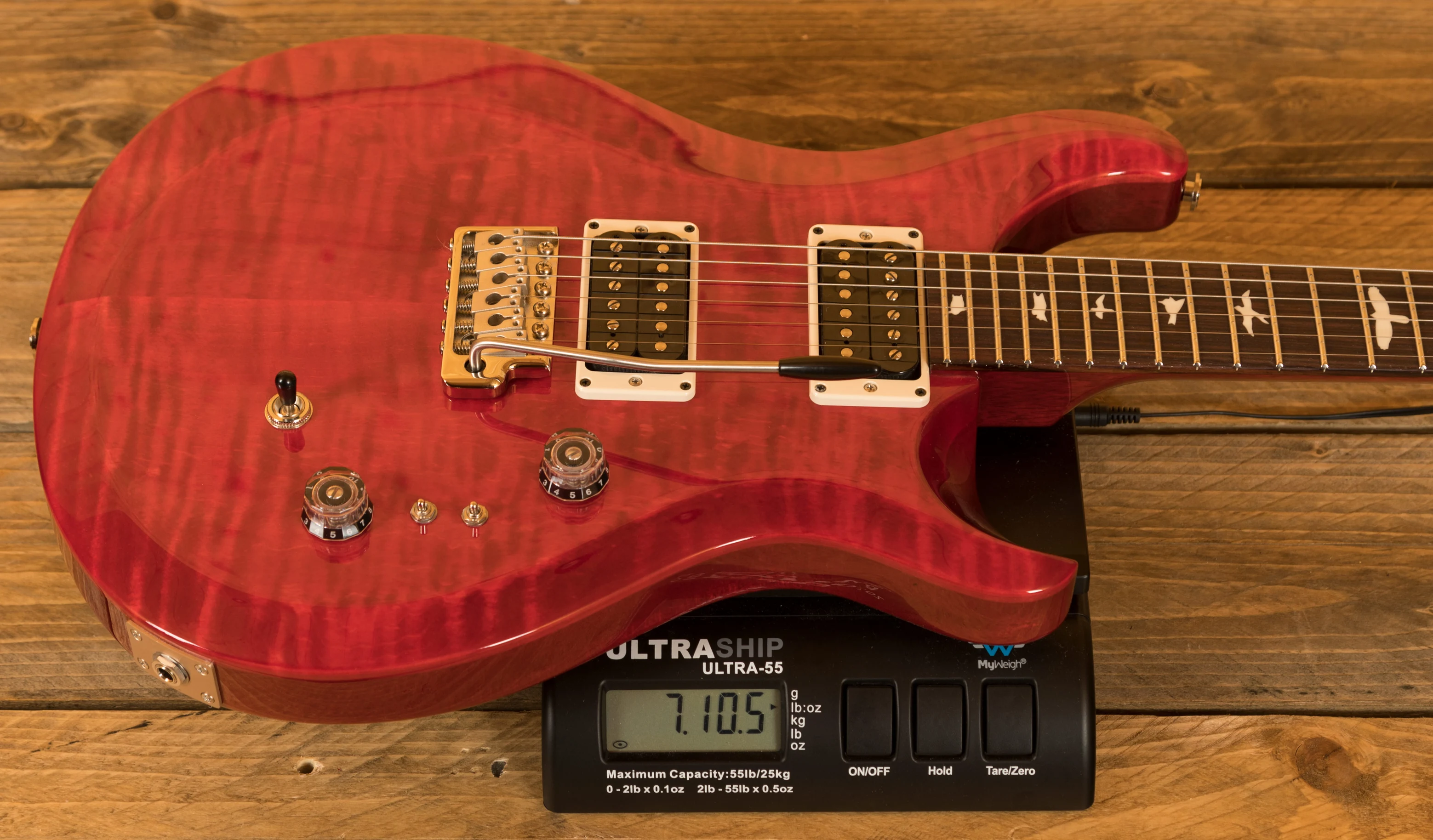 The Mahogany body with Maple top offers a rich warmth and depth that complements the beautiful Scarlet Red. With a Pattern Regular profile, 25" scale length and of course, 24 frets, the Mahogany neck feels really comfortable and familiar. The iconic PRS birds sit proudly atop the Rosewood fingerboard for the definitive PRS experience.