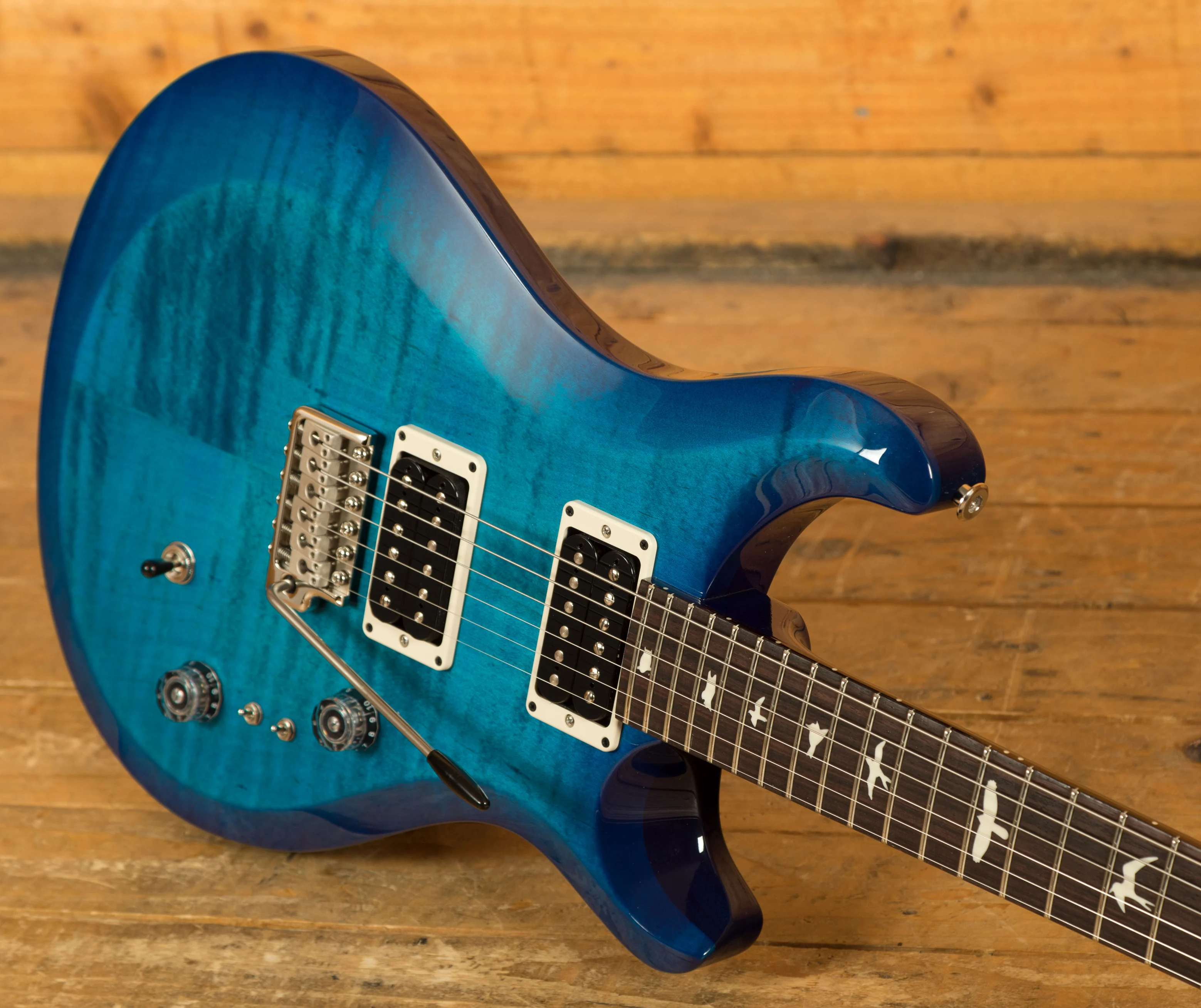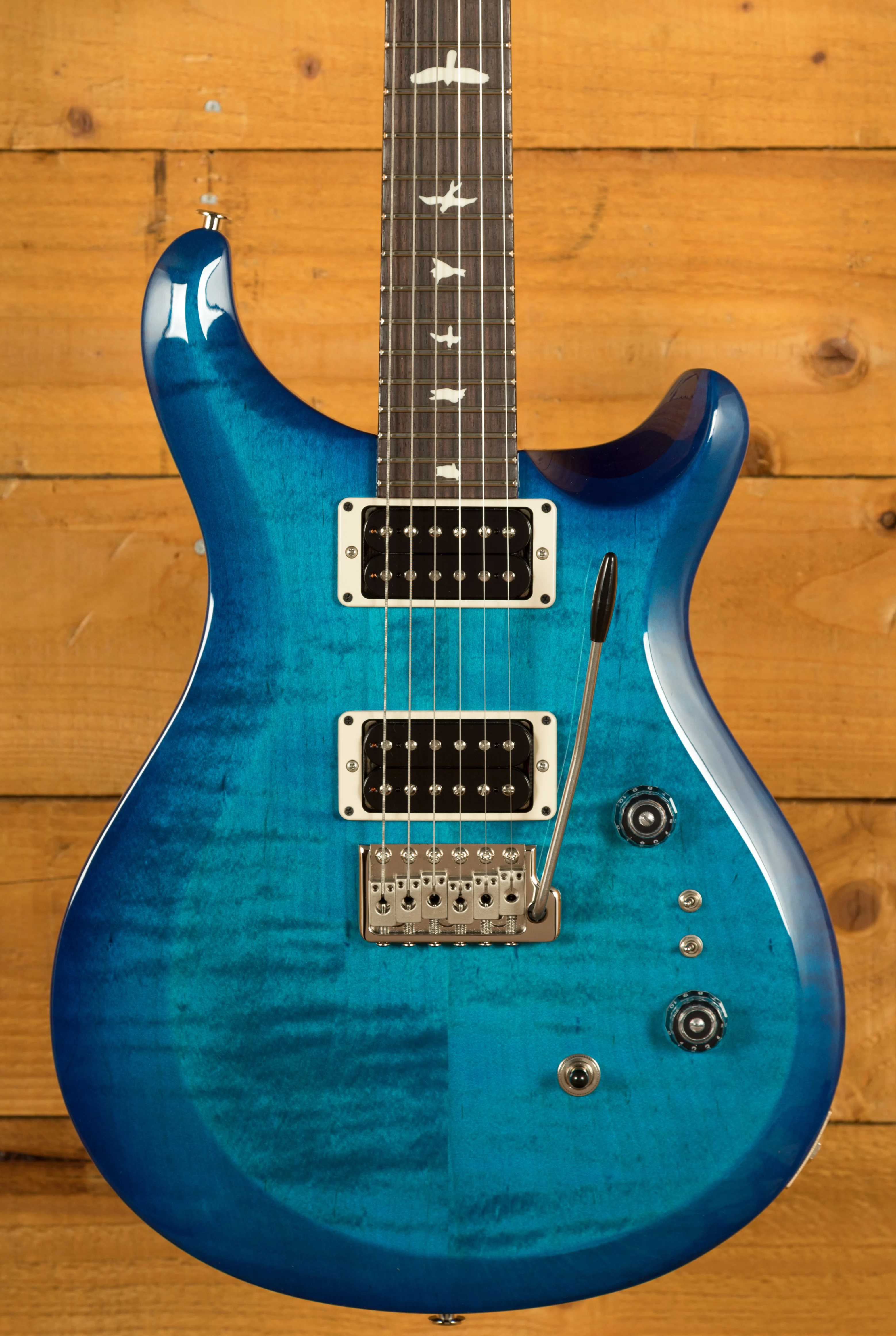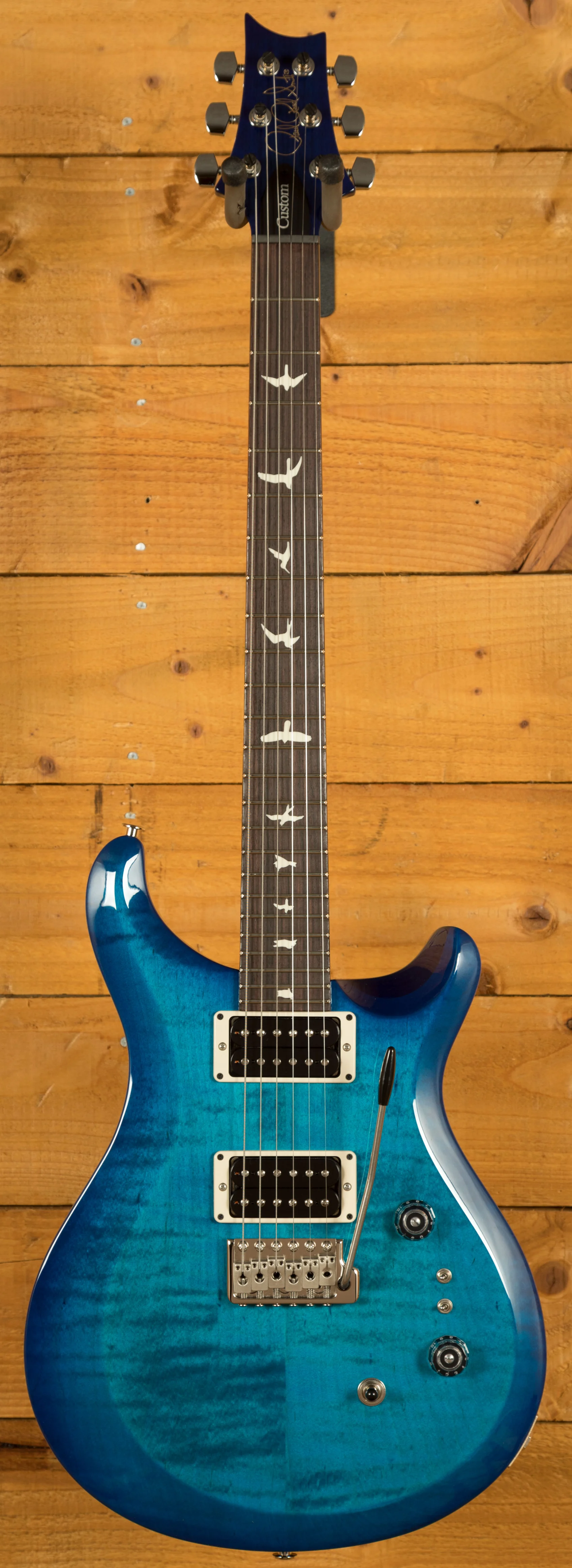 The Mahogany body and Maple top offer a rich warmth and depth that complements the beautiful aesthetic. With a Pattern Thin profile, 25" scale length and of course, 24 frets, the Maple neck feels really comfortable and familiar. The iconic PRS birds sit proudly atop the Rosewood fingerboard for the definitive PRS experience.