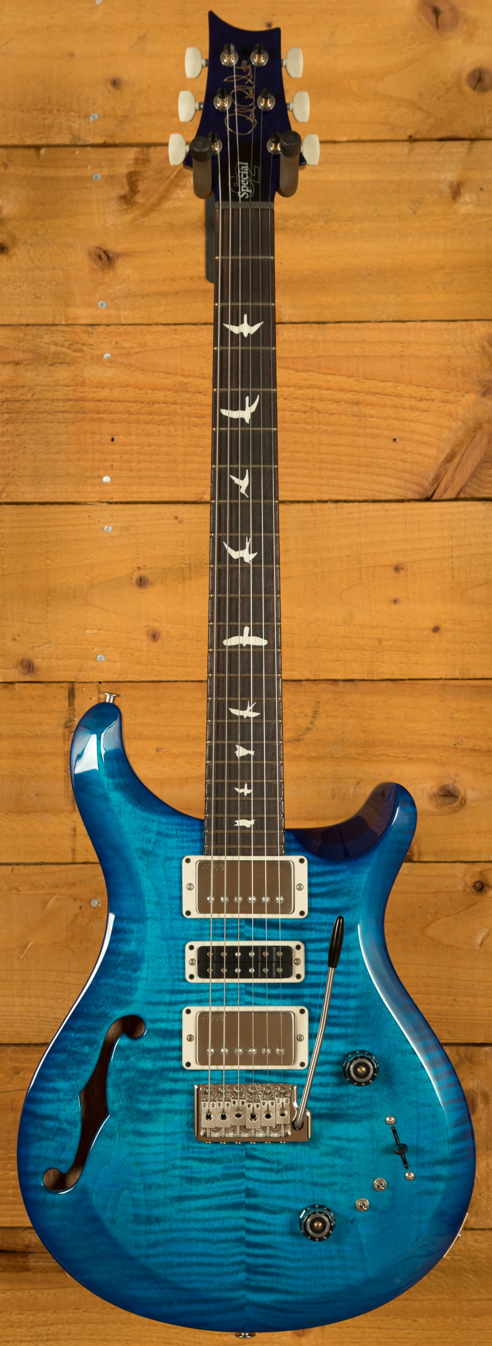 Built with a semi-hollow body featuring a carved maple top and mahogany back, the S2 Special Semi-Hollow produces natural resonance, sustain, and depth that enhance its tonal character. The 22-fret, 25" scale length Pattern Regular mahogany neck with a 10" radius rosewood fingerboard ensures comfortable playability across the entire range. Signature PRS bird inlays not only provide a refined aesthetic but also serve as practical position markers. This construction strikes an ideal balance between tonal richness, durability, and player comfort.
