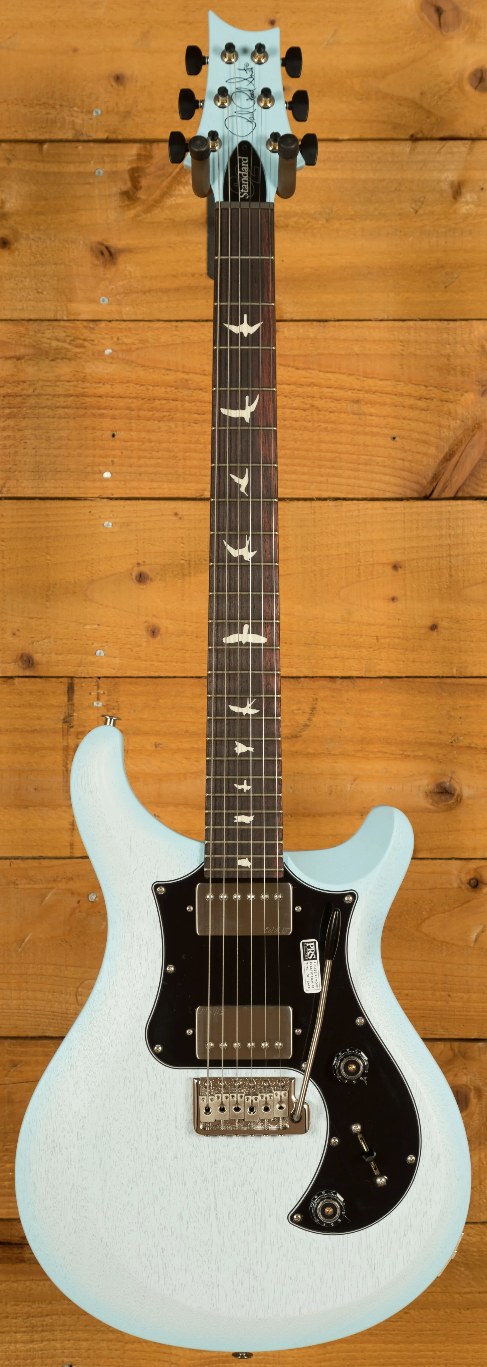 The PRS S2 Standard 24 Satin is designed for players who want performance, reliability, and tonal versatility. Built in the USA, it features a solid mahogany body and set neck that deliver excellent sustain and resonance. The thin satin nitro finish enhances the natural response of the wood, allowing the guitar to ring freely and feel smooth and fast in the player's hands. Its simple, classic design with pickguard-mounted electronics gives it a clean, professional appearance suited to both stage and studio environments.
