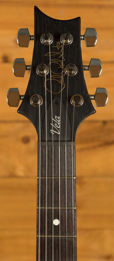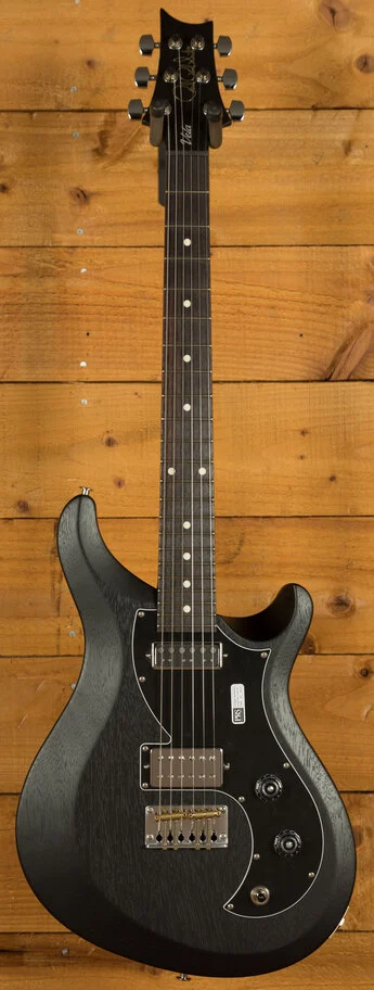Its pickguard-loaded electronics feature a PRS-Designed DS-01 pickup in the treble pickup position, providing a bright, punky tone, and the PRS-Designed Type-D Single-Coil in the bass pickup position gives the Vela some noteworthy bite. The coil-tap on the tone control allows the treble pickup to split to single coils, providing a balanced tone that will cut through the mix with style. Anchoring this guitar is the PRS plate-style bridge with two saddles that were designed to compensate for intonation. This bridge harkens back to Paul's early designs and traditional bass plate-style bridges but is top-loading for easy restringing. Like the bridge found on Paul's Guitar and some Private Stock models, PRS's plate-style bridge features brass saddles and an aluminium plate for maximum tonal sustain.