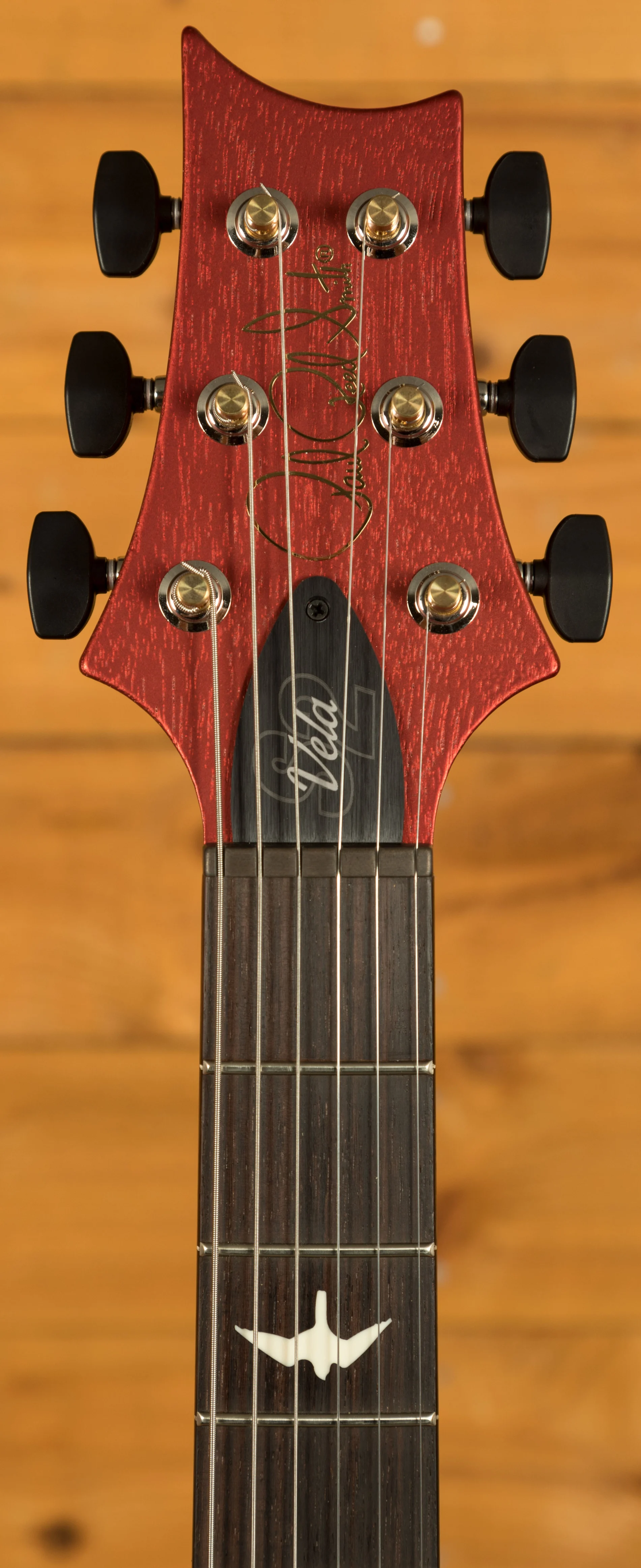 Hardware on the S2 Vela Satin is engineered for both stability and performance. The PRS plate-style bridge features a steel plate and brass saddles for maximum resonance and sustain, while its top-loading design makes restringing simple. PRS Phase III non-locking tuners with wing buttons are lightweight, enhance tuning stability, and promote better tone transfer for a louder, more resonant instrument. Together, these components ensure that the S2 Vela Satin is not only versatile but also reliable for both studio work and live performance.