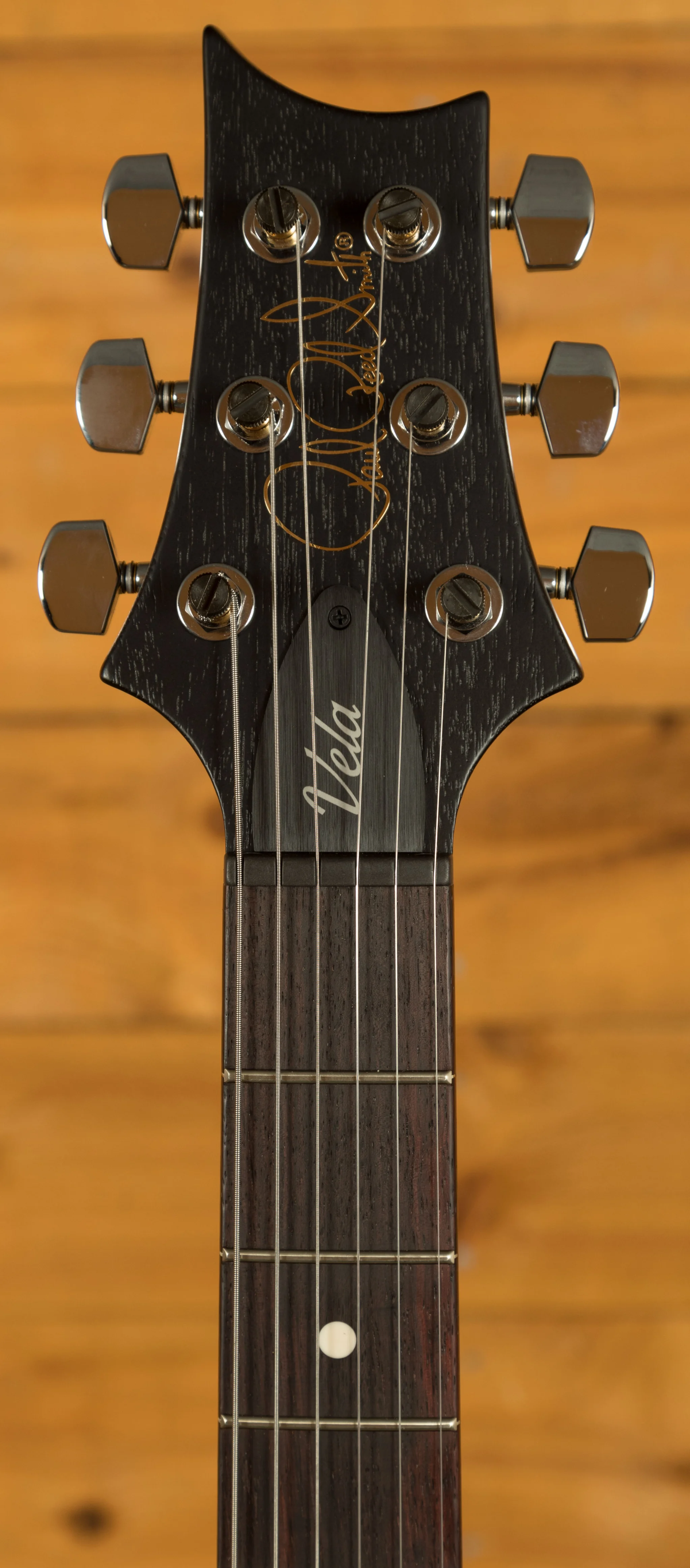 Its pickguard-loaded electronics feature a PRS DS-01 pickup in the treble pickup position, providing a bright, punky tone and the PRS-Designed Type-D Single-Coil in the bass pickup position gives the Vela some noteworthy bite. The coil-tap on the tone control allows the treble pickup to split to single coils, providing a balanced tone that will cut through the mix with style. Anchoring this guitar is the PRS plate-style bridge with two saddles that were designed to compensate for intonation. This bridge harkens back to Paul's early designs and traditional bass plate-style bridges but is top-loading for easy restringing. Like the bridge found on Paul's Guitar and some Private Stock models, PRS's plate-style bridge features brass saddles and an aluminium plate for maximum tonal sustain.