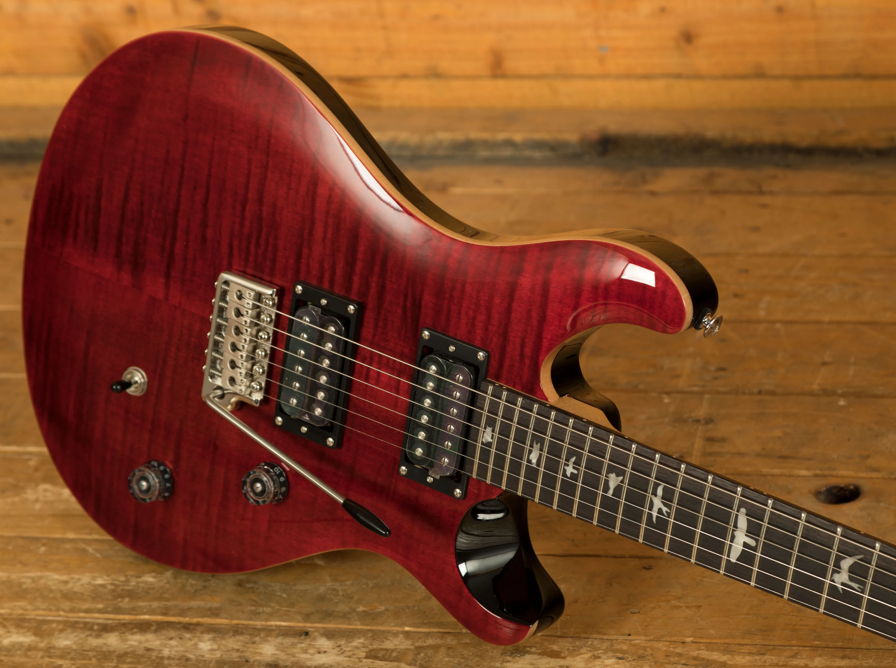 Beyond its exceptional tonal qualities, this guitar is built for playability. With 24 frets, a comfortable wide thin neck shape, and PRS's signature bird inlays on the fretboard, it offers an experience that will please even the most discerning players. The shallow violin top carve adds to its aesthetic appeal.