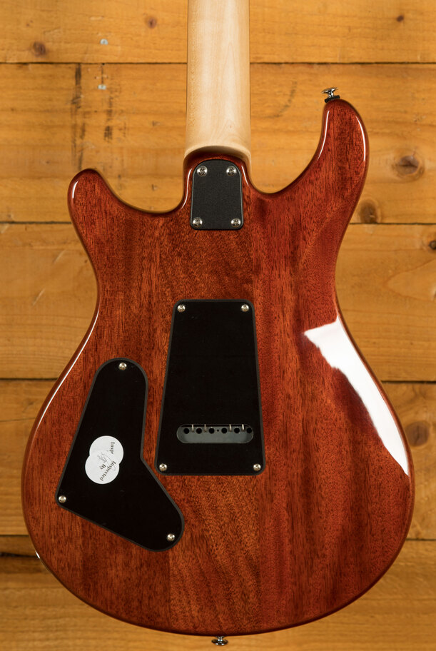 The PRS SE CE 24 is a guitar that harmoniously blends tradition with innovation. It retains the iconic PRS Custom 24 design, featuring a maple top with a captivating flame maple veneer, a rich mahogany back, and a smooth rosewood fretboard. What sets it apart is the inclusion of a bolt-on maple neck, a feature that has played a pivotal role in the history of guitars, offering enhanced snap and responsiveness. PRS puts its unique spin on this classic design, staying true to the heritage of bolt-on construction.