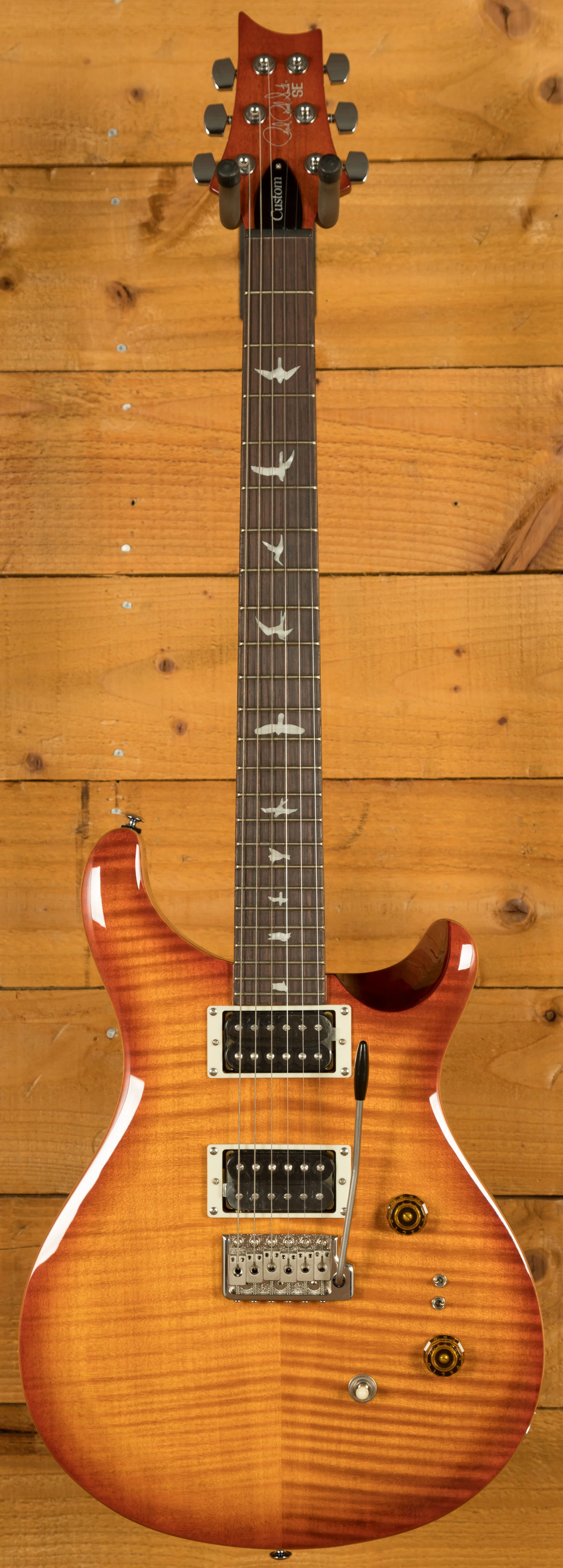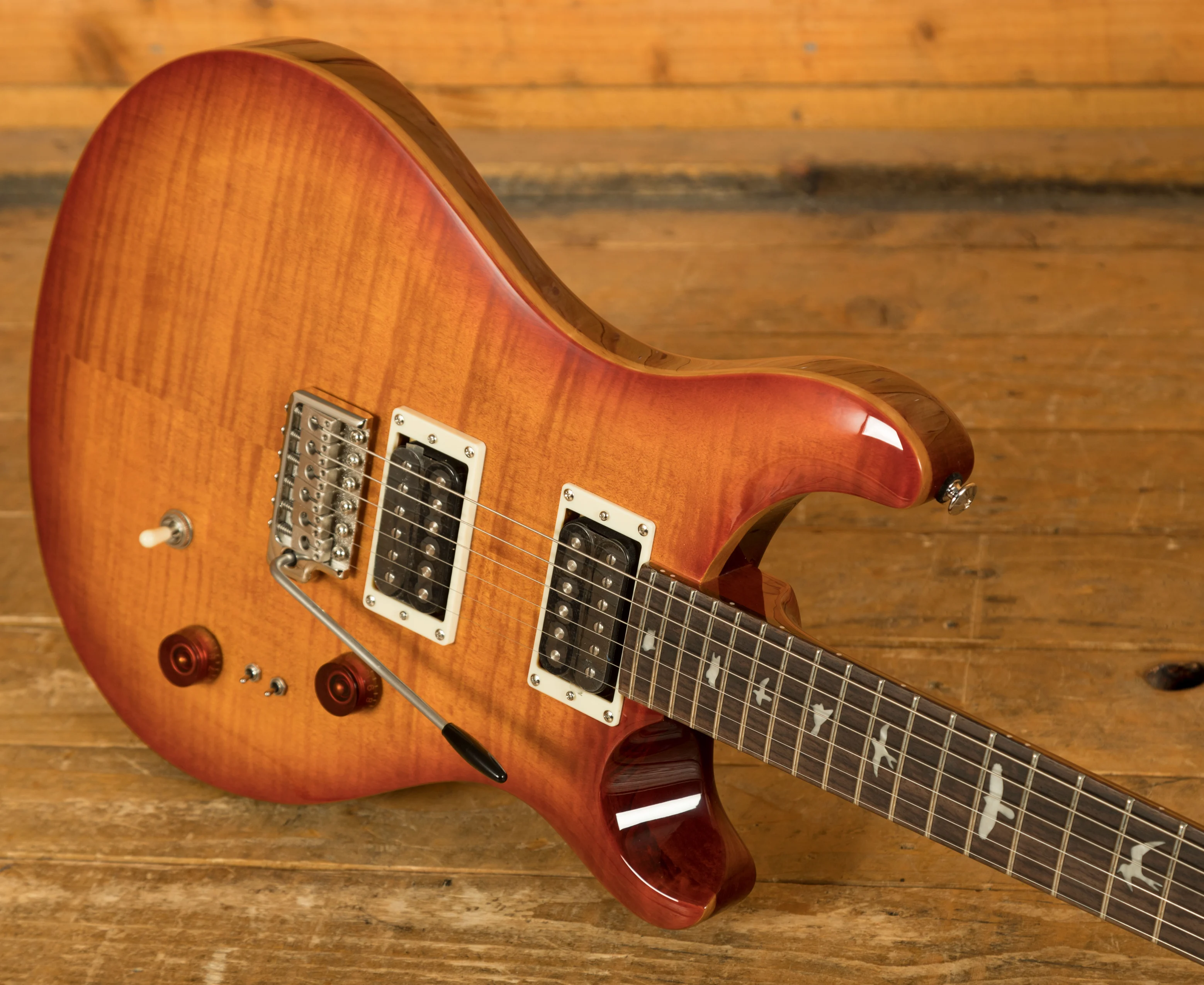 The SE Custom 24-08 retains classic design elements, including a maple top, mahogany back, rosewood fretboard, 24 frets, 25” scale length, bird inlays, signature headstock logo, and PRS patented moulded tremolo. The patented design of the tremolo system provides tonal fidelity, player comfort, and tuning stability that is second to none. You can play with confidence knowing that your tuning will remain stable no matter how much you use the tremolo arm.