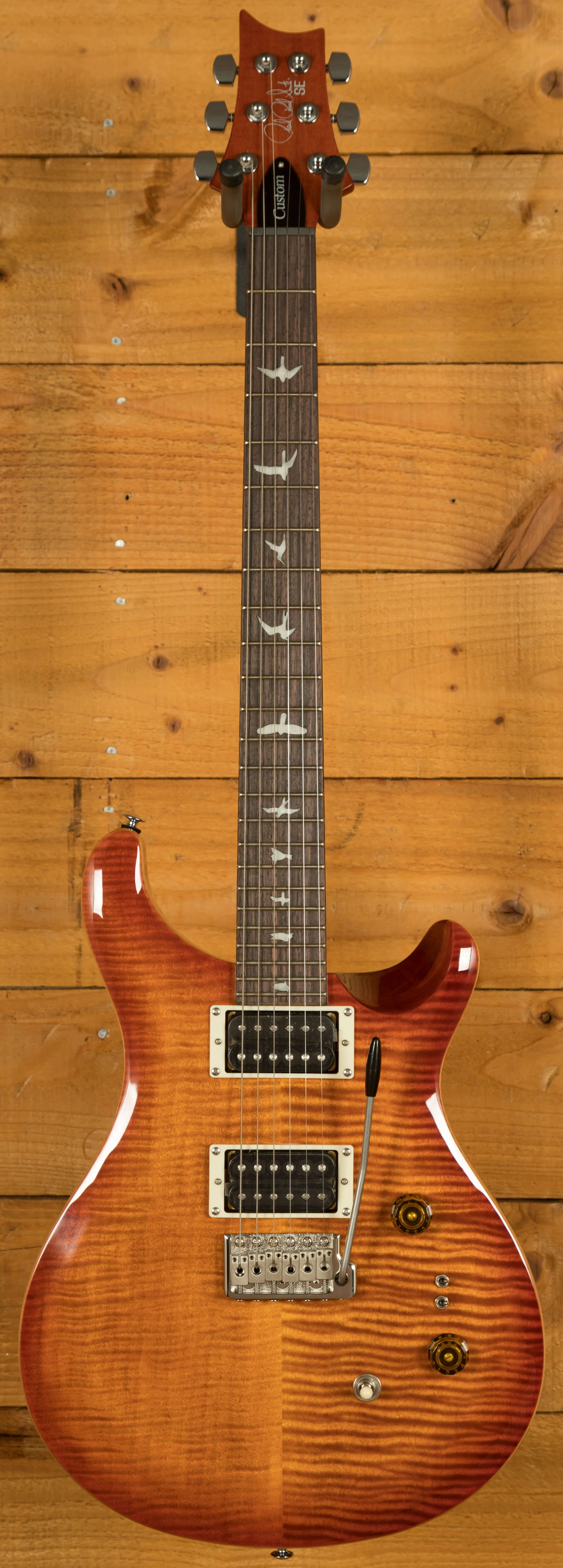 The SE Custom 24-08 is a set neck/body assembly type guitar that is built to PRS's exacting standards. With a shallow violin top carve, flame maple veneer, and iconic bird inlays, this guitar is a true work of art - whether you're a beginner or a seasoned pro, this guitar will take your playing to the next level.
