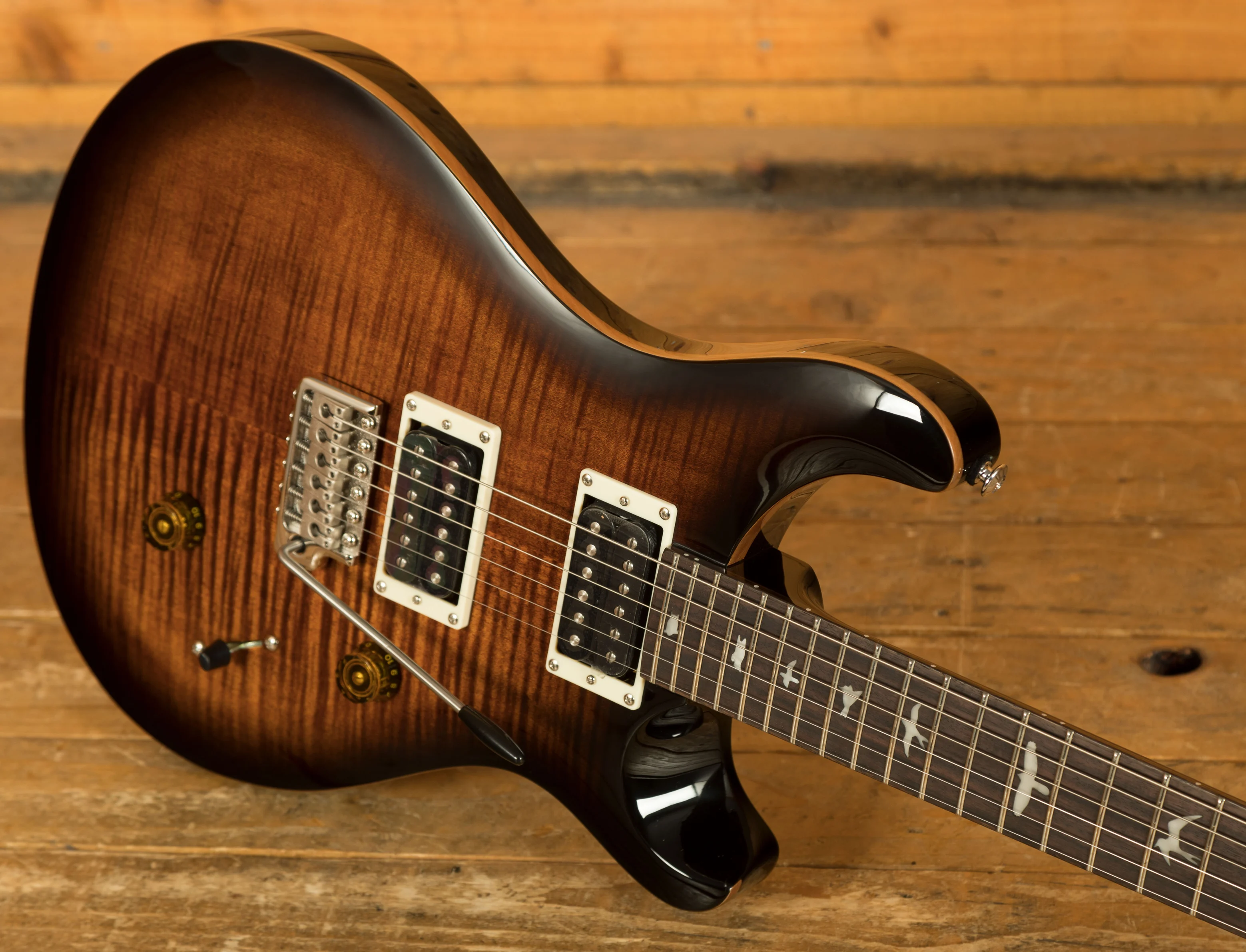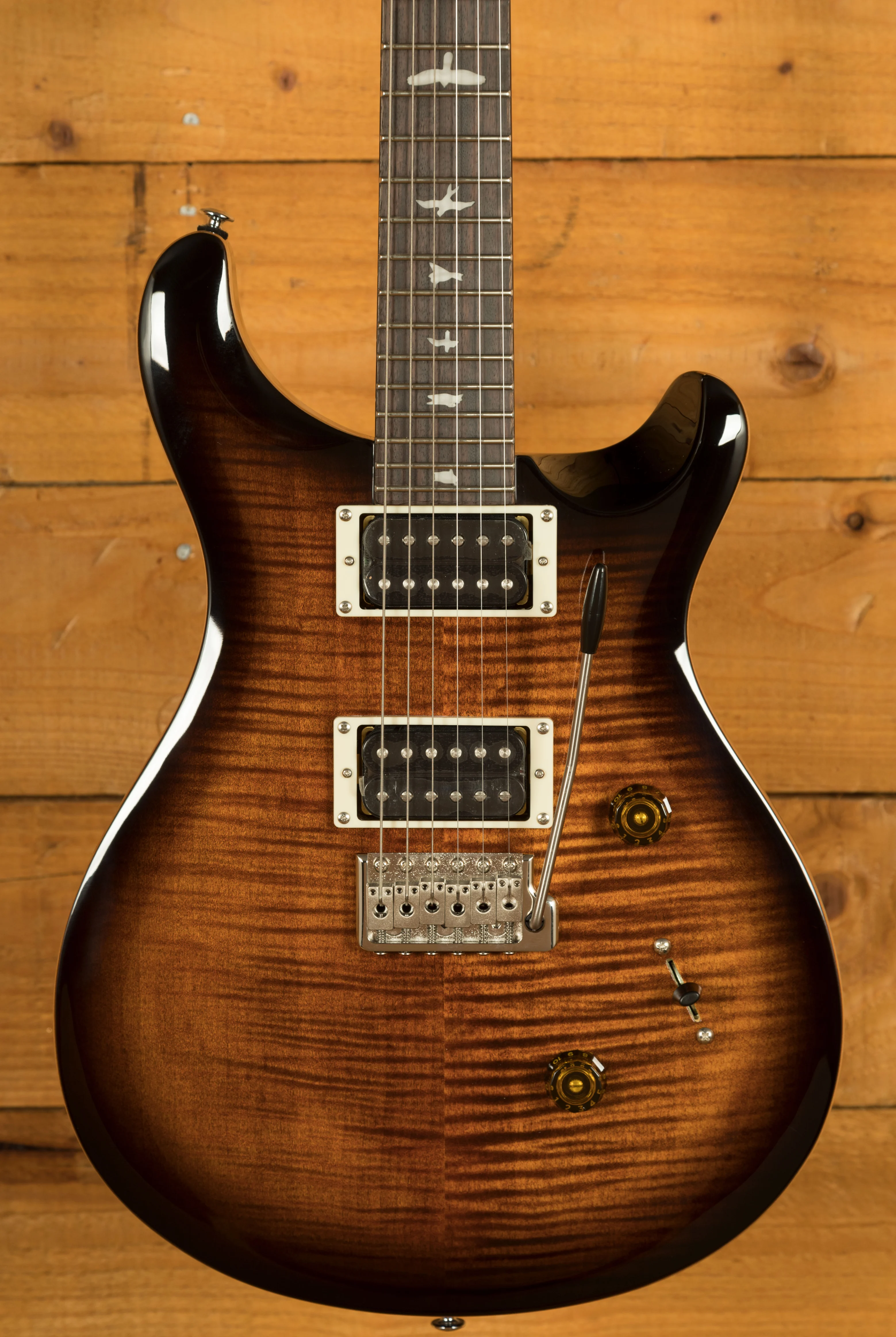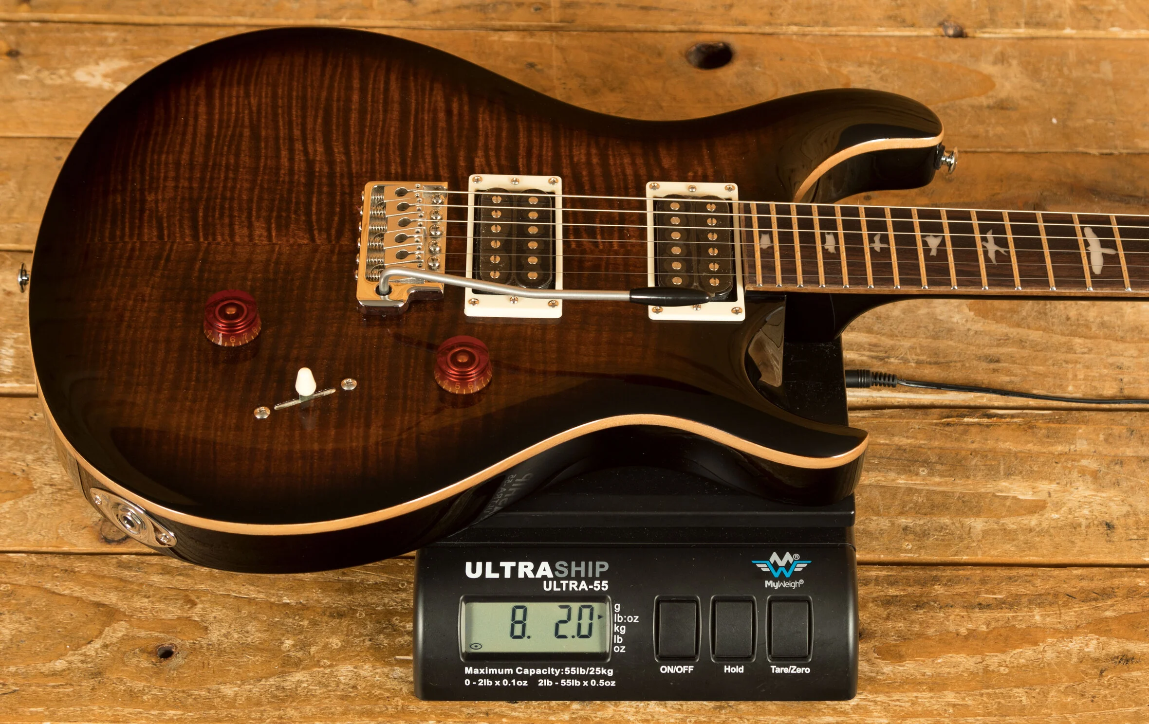 This guitar features a maple top and mahogany back, a wide thin maple neck, and a rosewood fretboard with bird inlays. Its versatile sounds come from the 85/15 "S" pickups paired with a volume, push/pull tone control, and 3-way blade pickup selector. The PRS patented moulded tremolo provides tonal fidelity, player comfort, and tuning stability, while the lightweight PRS-designed tuners ensure precise tuning without dampening your tone.