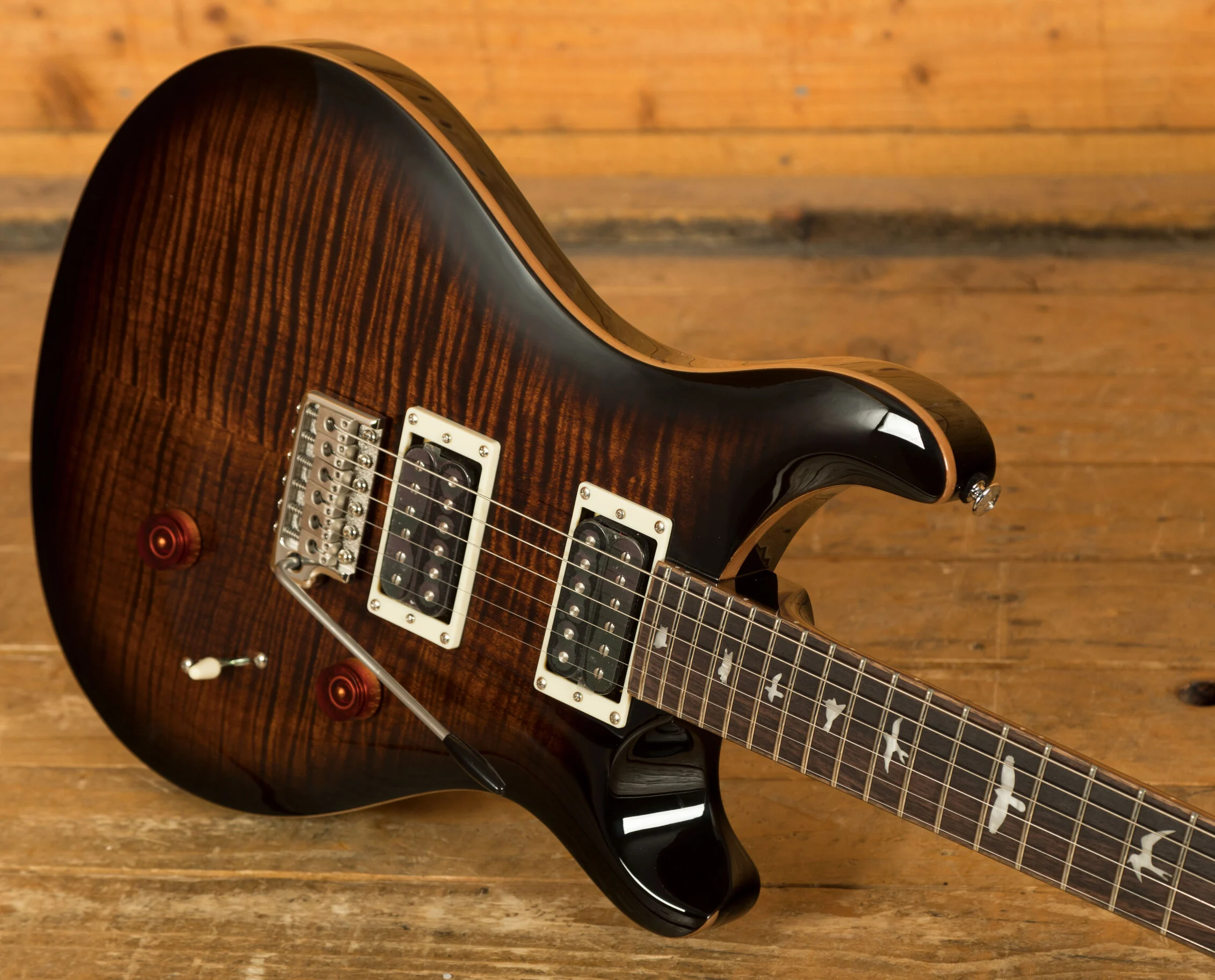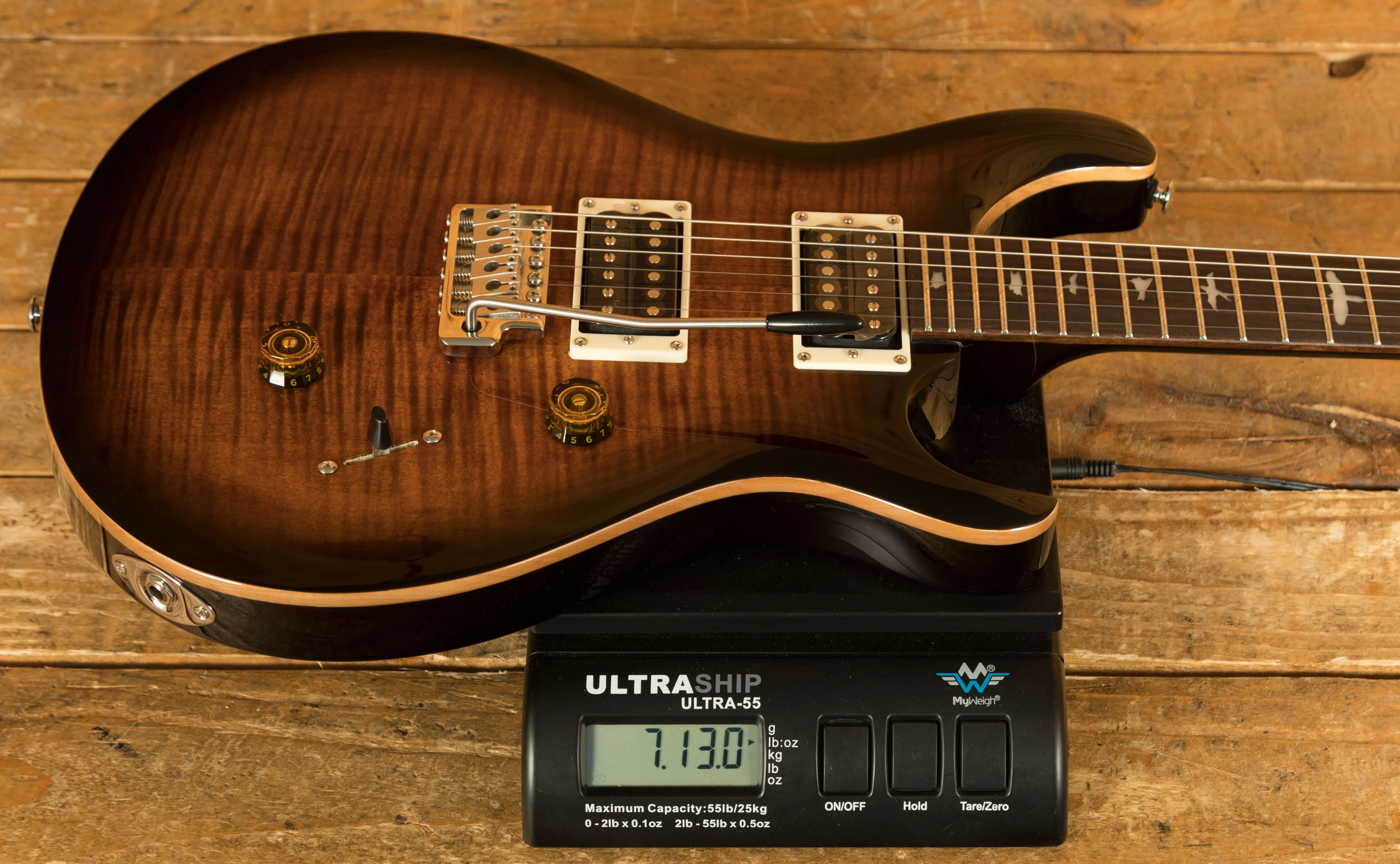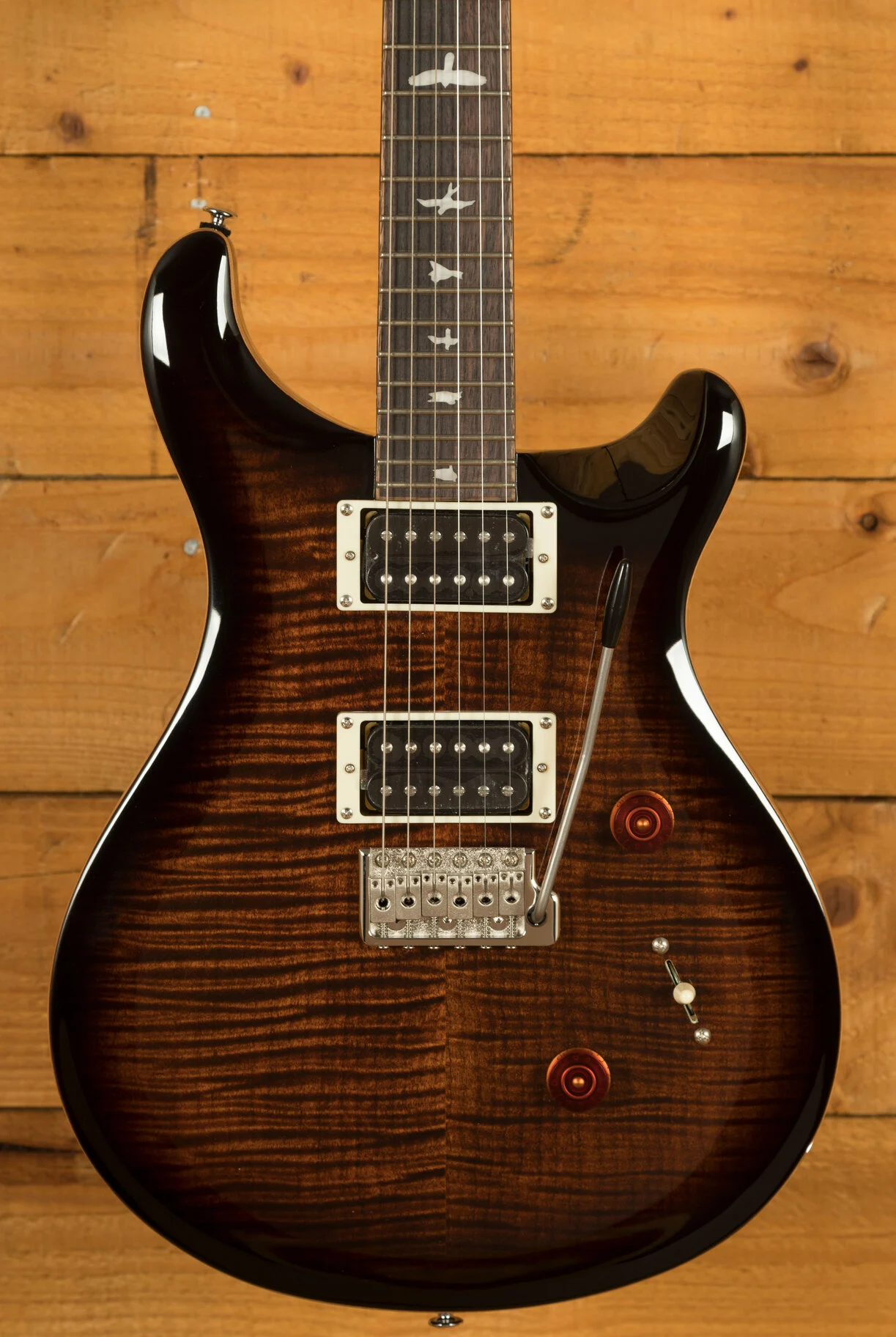 This guitar features a maple top and mahogany back, a wide thin maple neck, and a rosewood fretboard with bird inlays. Its versatile sounds come from the 85/15 "S" pickups paired with a volume, push/pull tone control, and 3-way blade pickup selector. The PRS patented moulded tremolo provides tonal fidelity, player comfort, and tuning stability, while the lightweight PRS-designed tuners ensure precise tuning without dampening your tone.
