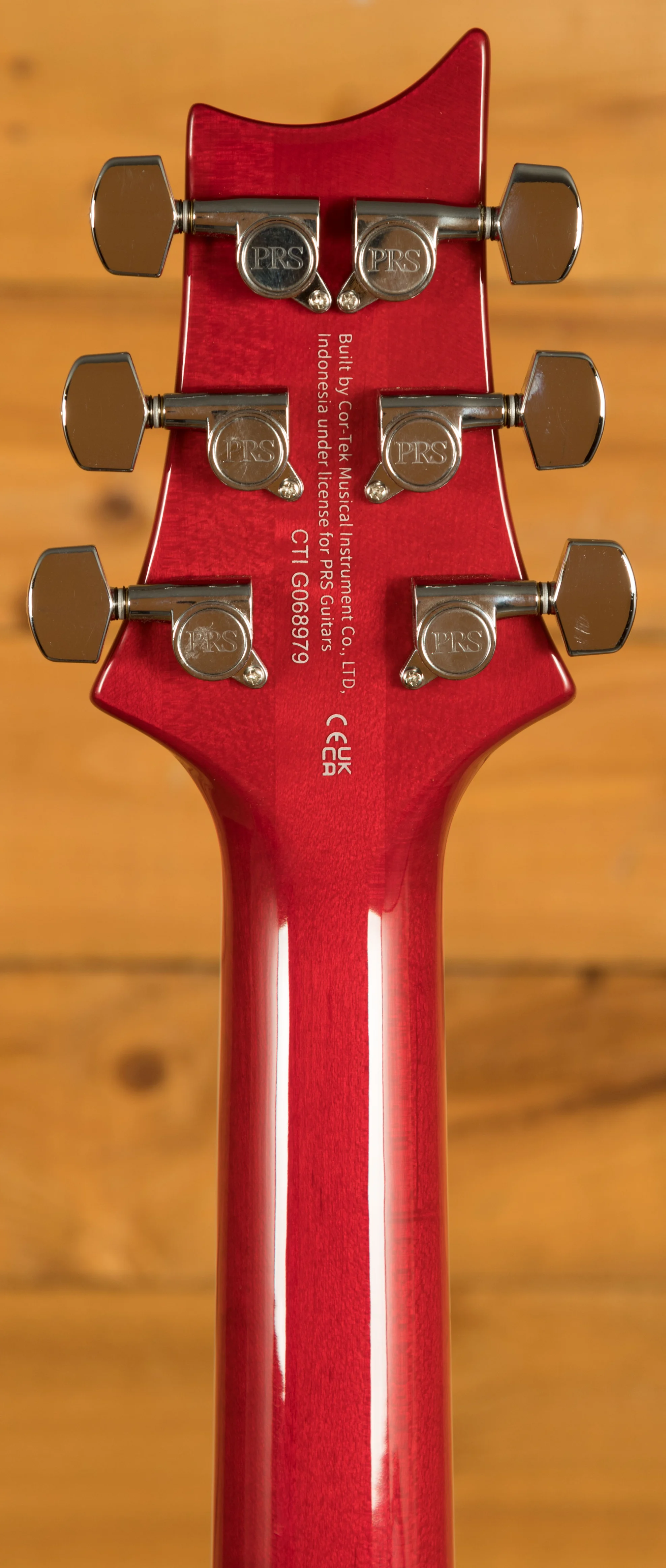 In addition to the patented tremolo system, the SE Custom 24-08 Quilt features PRS-designed tuners that are lightweight and provide precise tuning without dampening your tone. The neck is made from maple and has a wide thin shape that makes it easy to play fast and accurately. The neck construction is multi-ply, and the fretboard has a 10" radius with bird inlays.