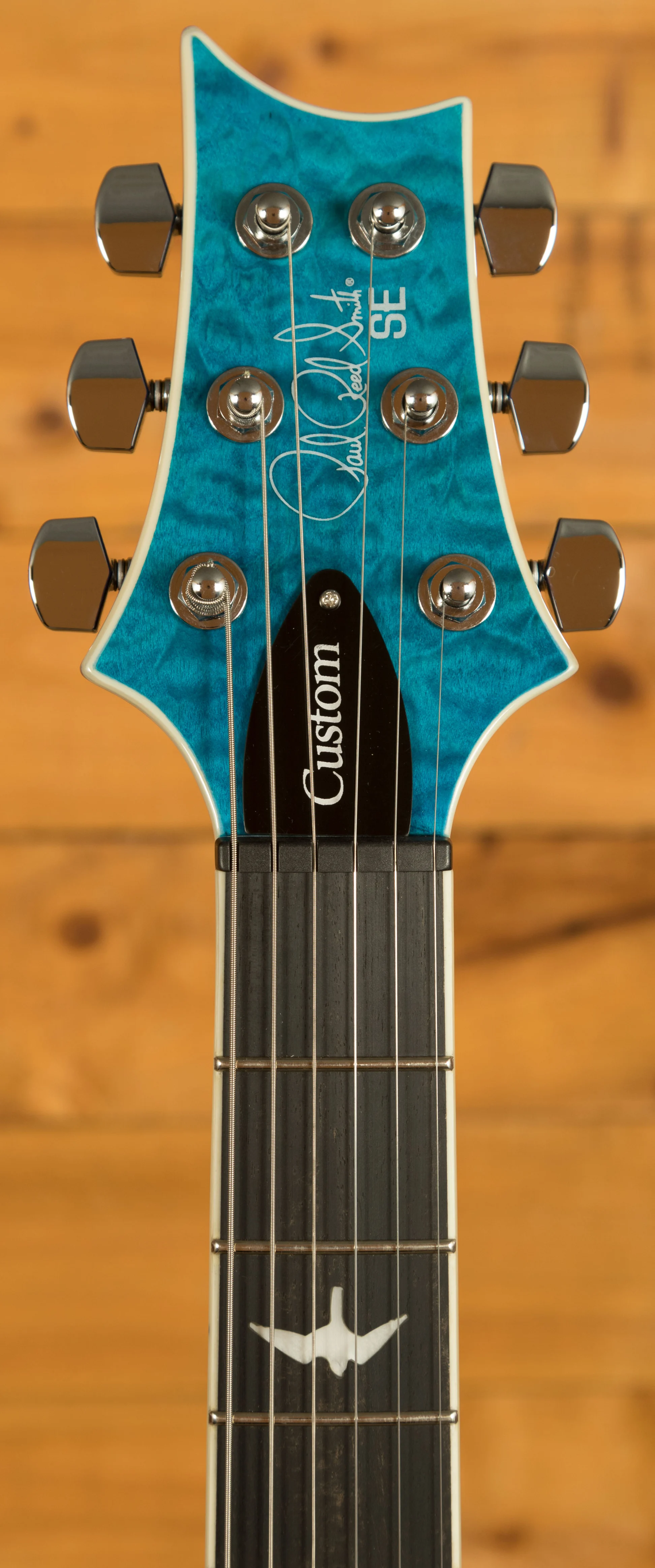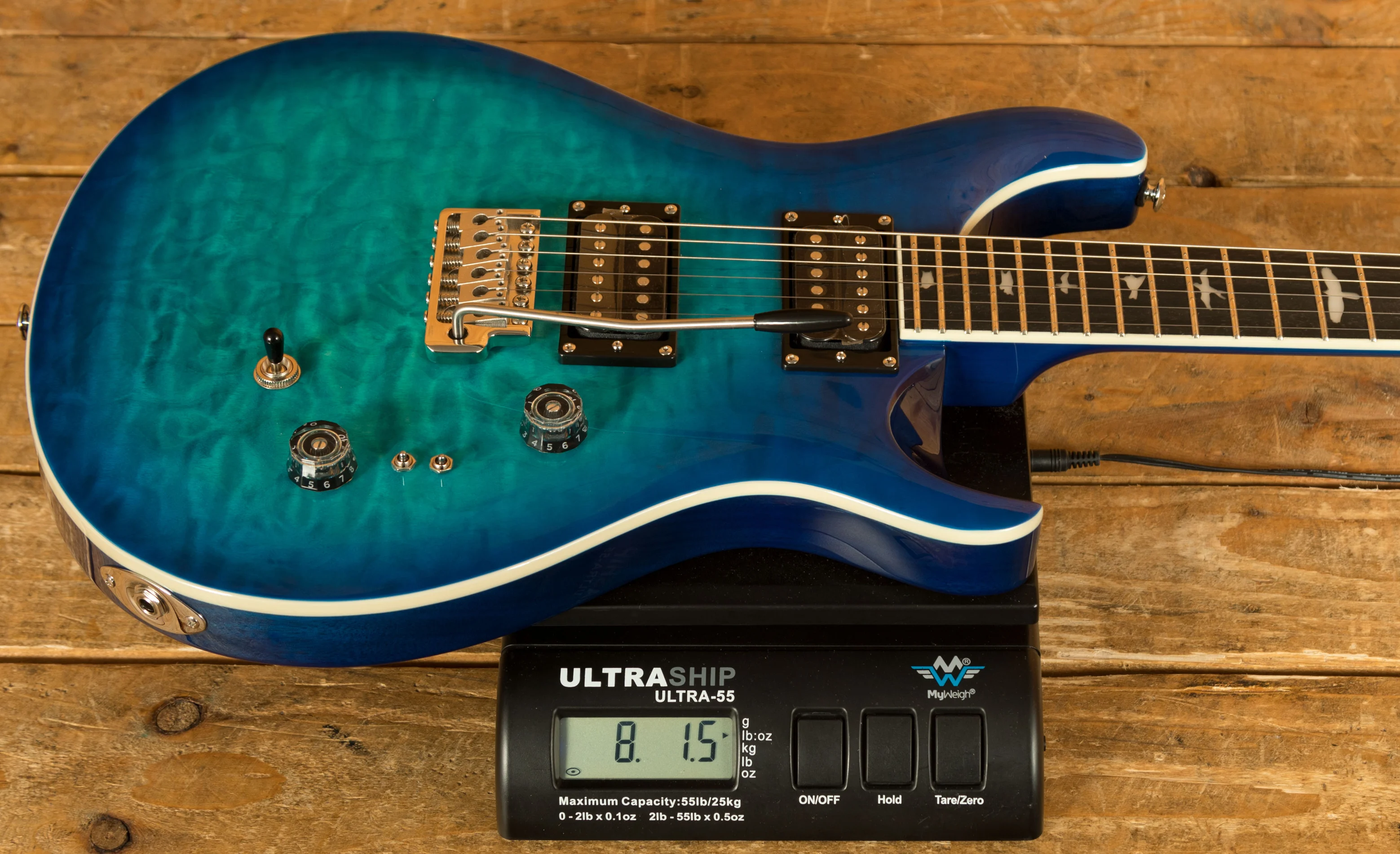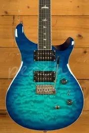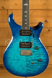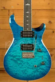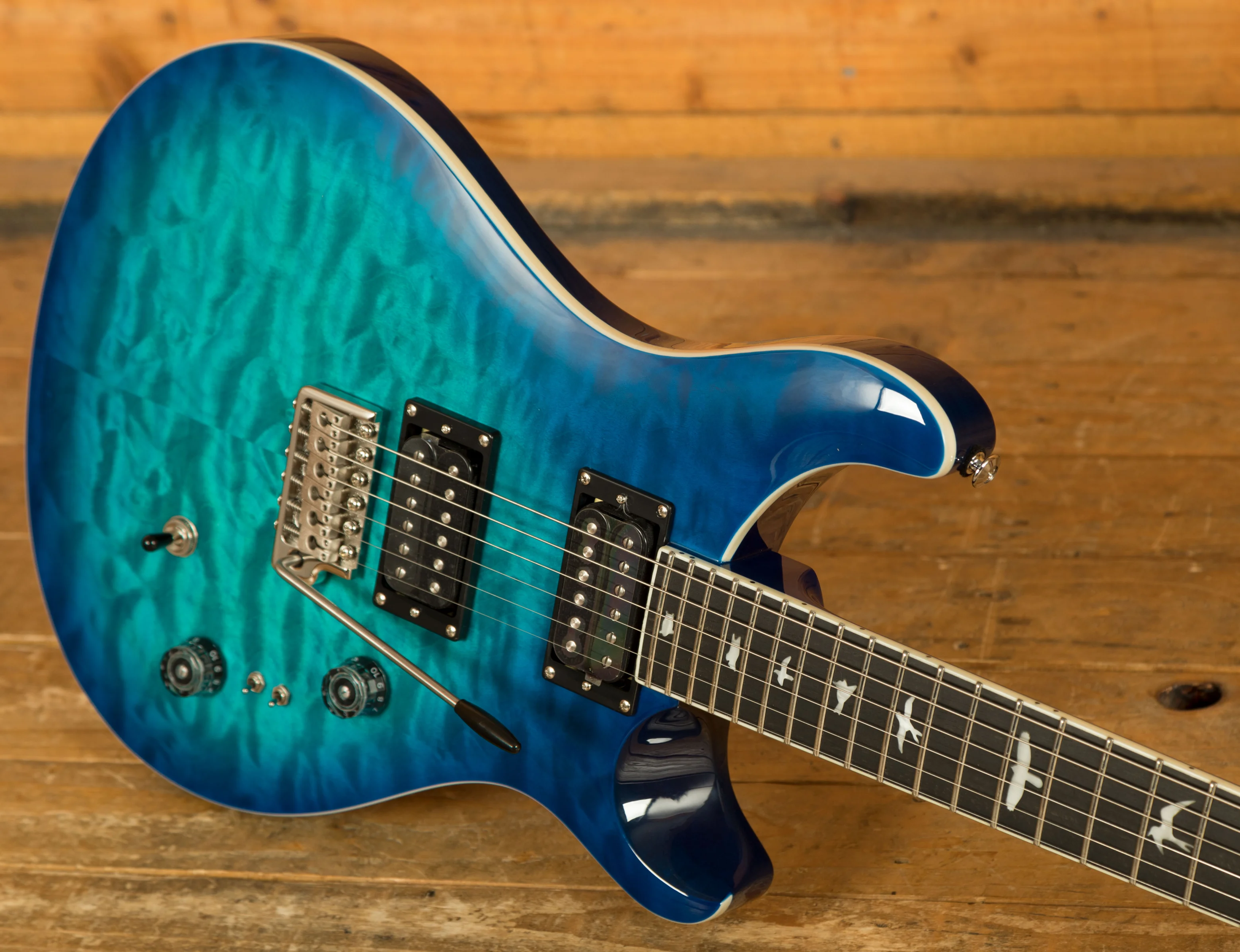 The SE Custom 24-08 certainly inspires as an instrument. Its beautiful Lake Blue finish, complemented by a figured maple quilt top, looks every bit as good as it sounds. But this guitar is more than just a pretty face, like many PRS, it's a guitar that is designed for versatility.