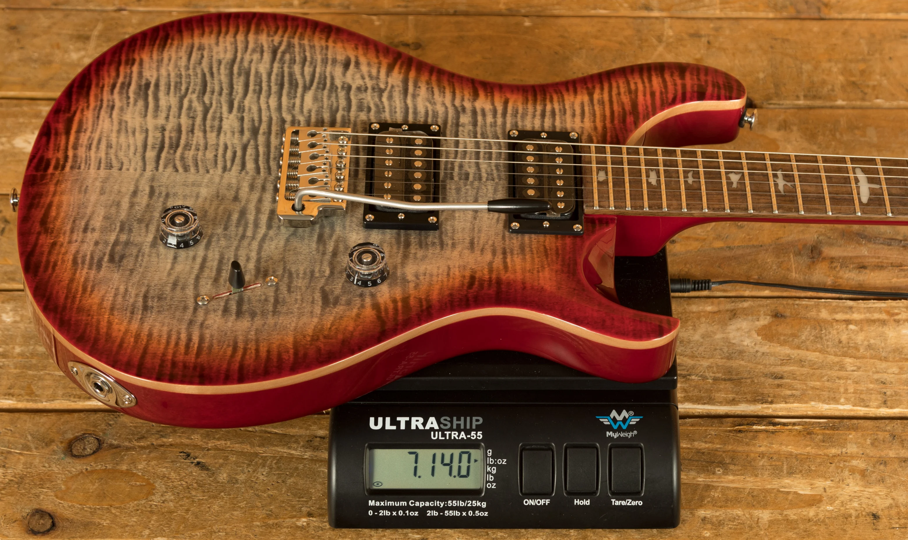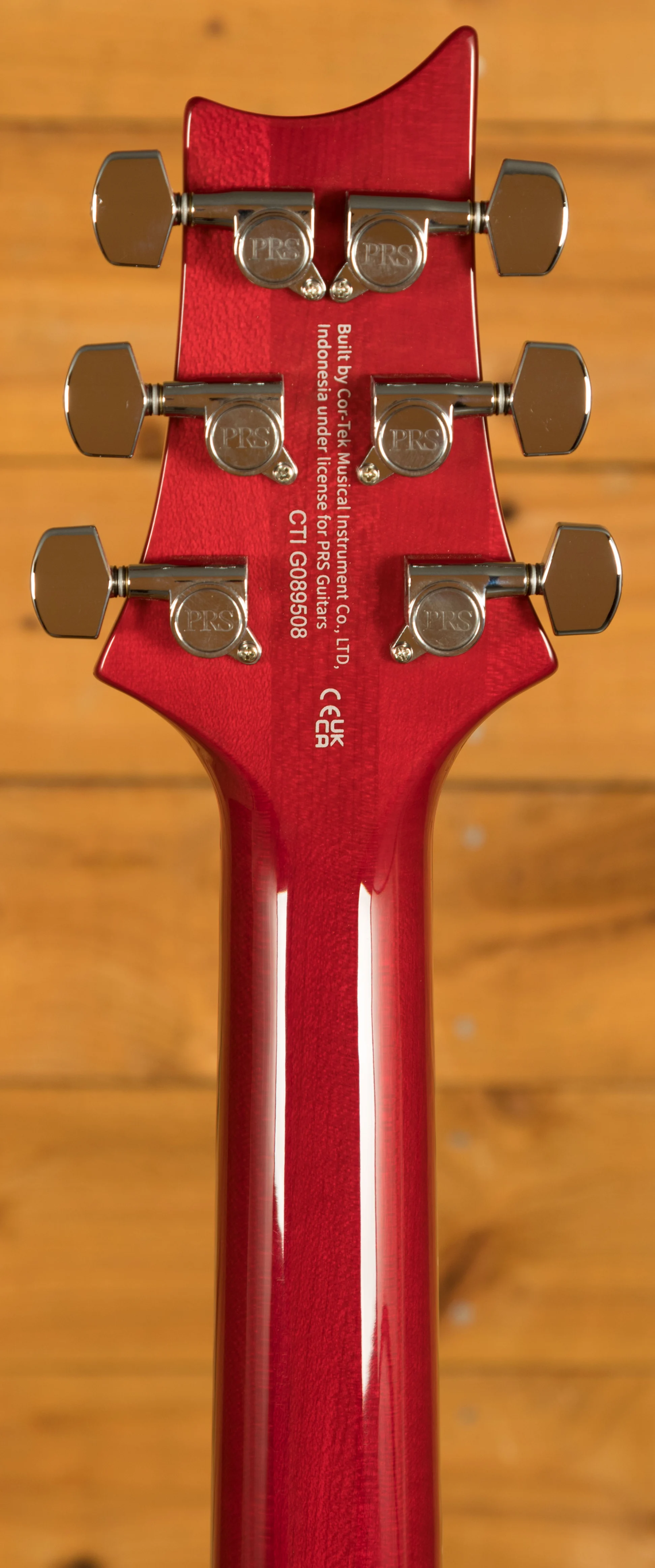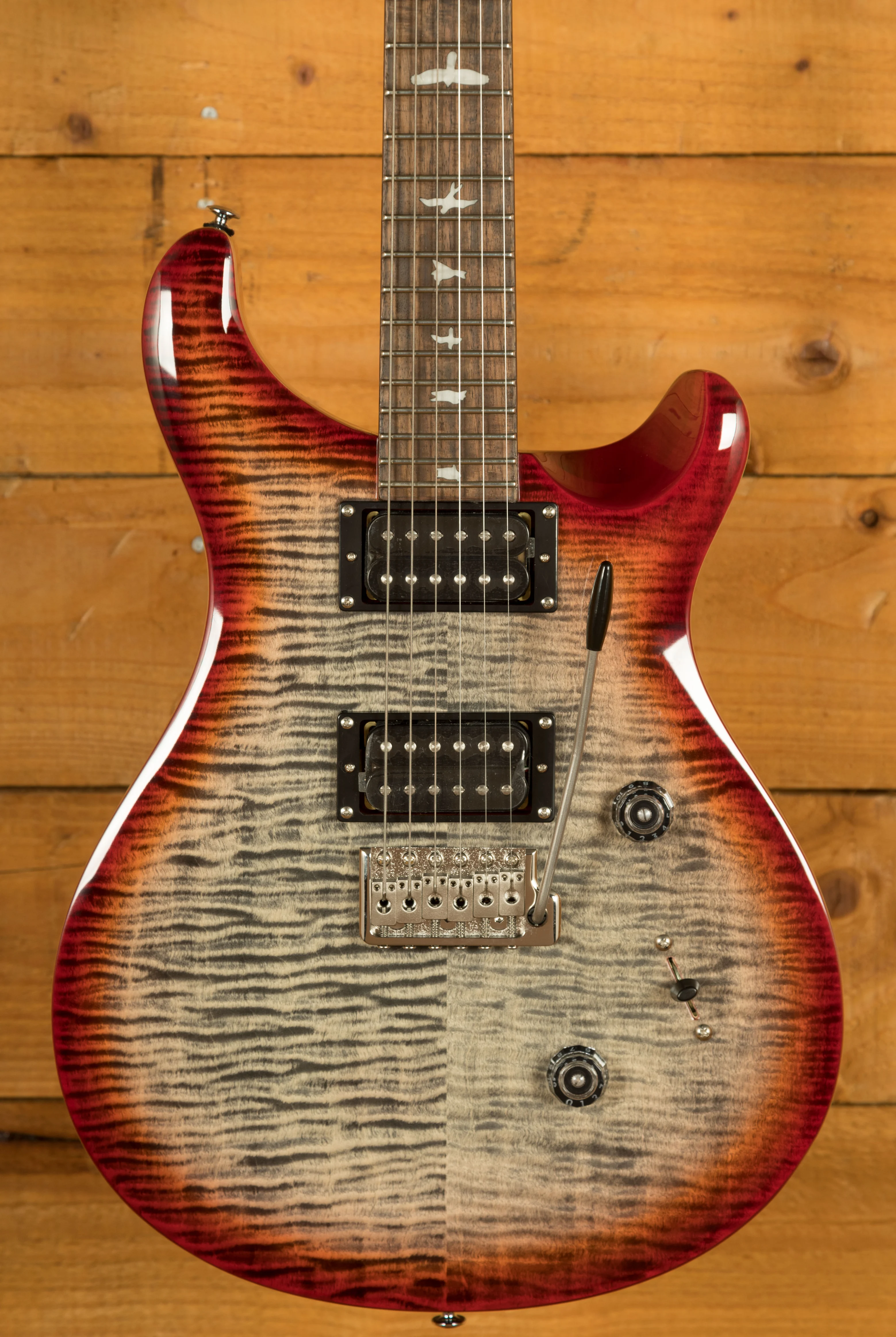 This guitar features a maple top and mahogany back, a wide thin maple neck, and a rosewood fretboard with bird inlays. Its versatile sounds come from the 85/15 "S" pickups paired with a volume, push/pull tone control, and 3-way blade pickup selector. The PRS patented moulded tremolo provides tonal fidelity, player comfort, and tuning stability, while the lightweight PRS-designed tuners ensure precise tuning without dampening your tone.