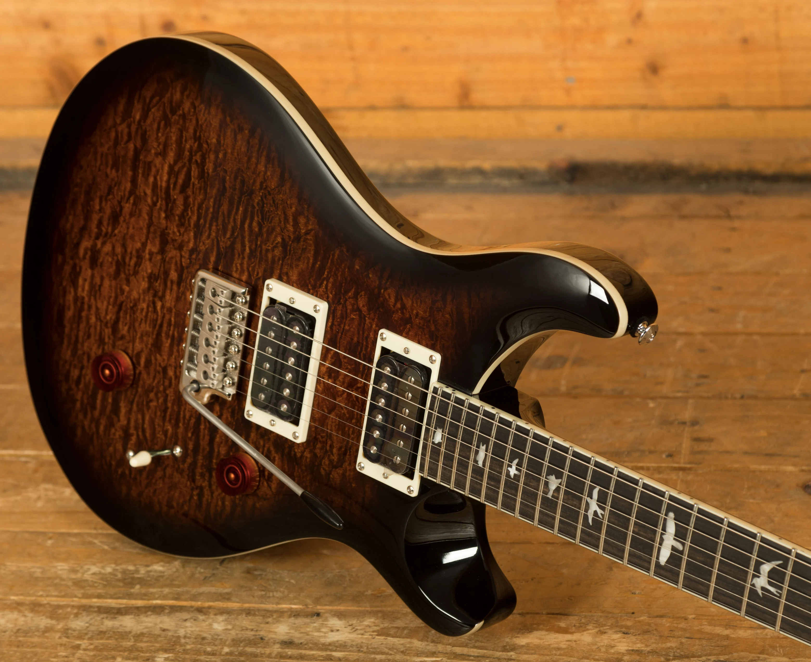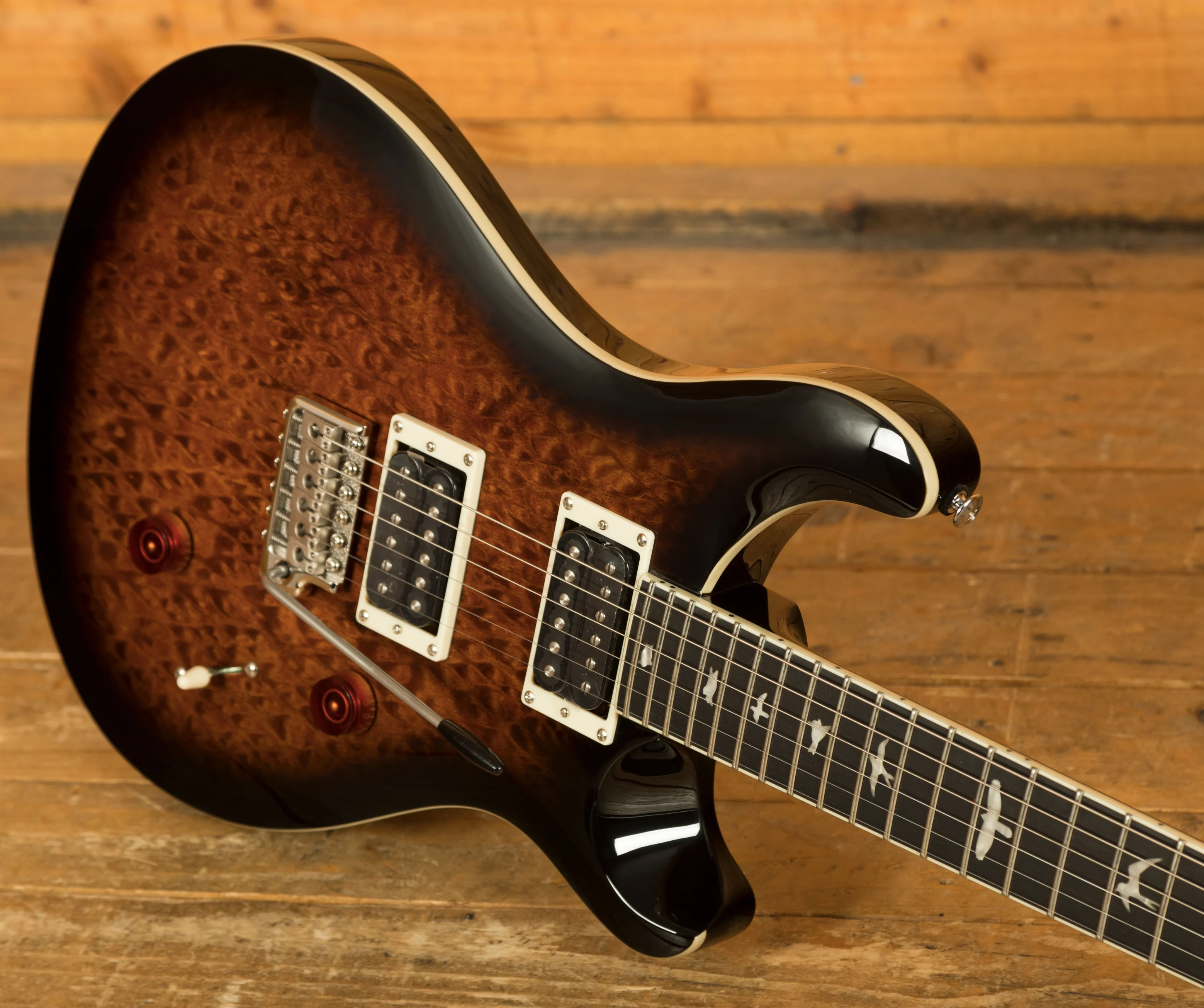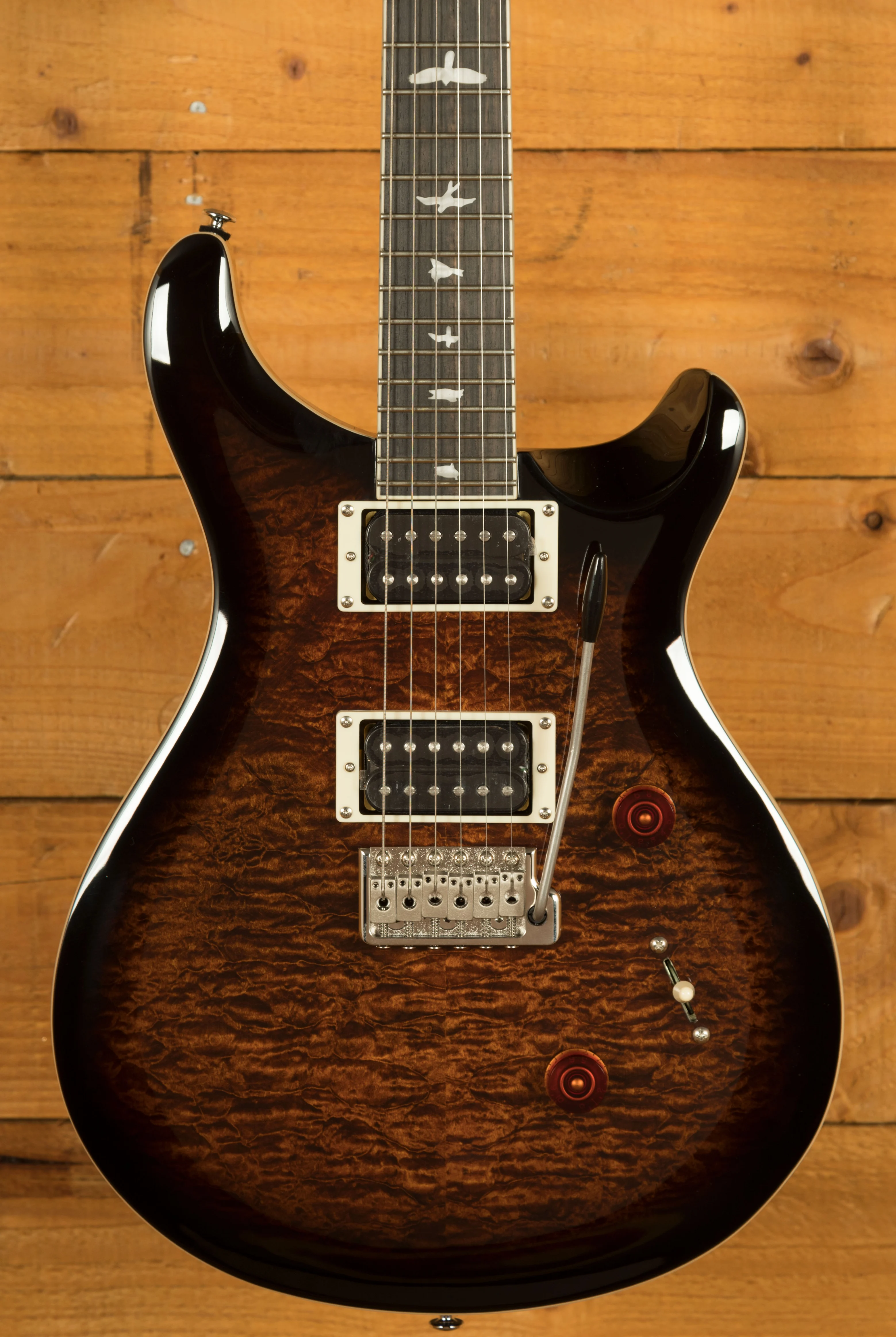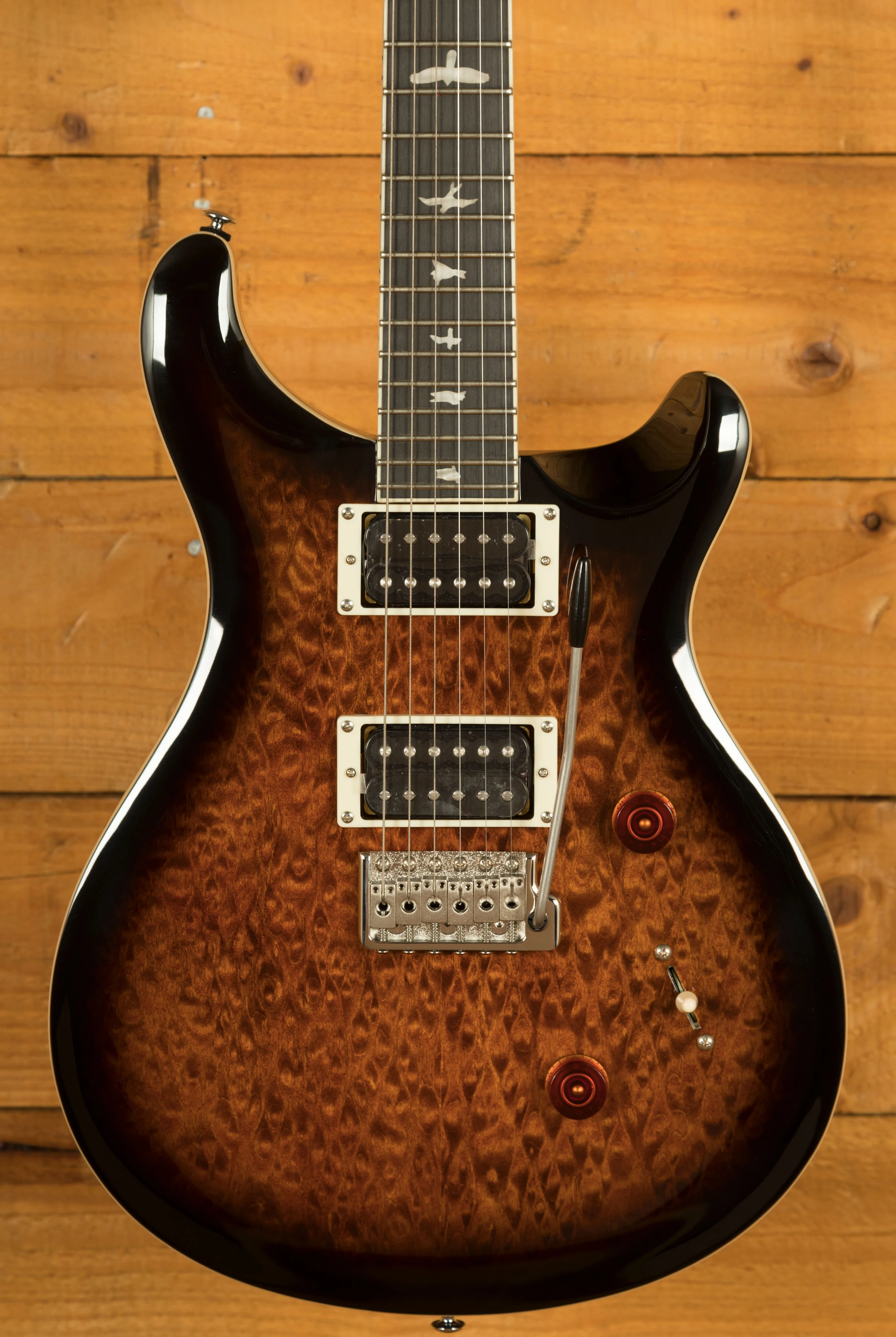 When it comes to hardware, the PRS Patented Tremolo, Moulded bridge keeps your tuning stable even during intense performances, and PRS Designed Tuners ensure precision tuning reliability.