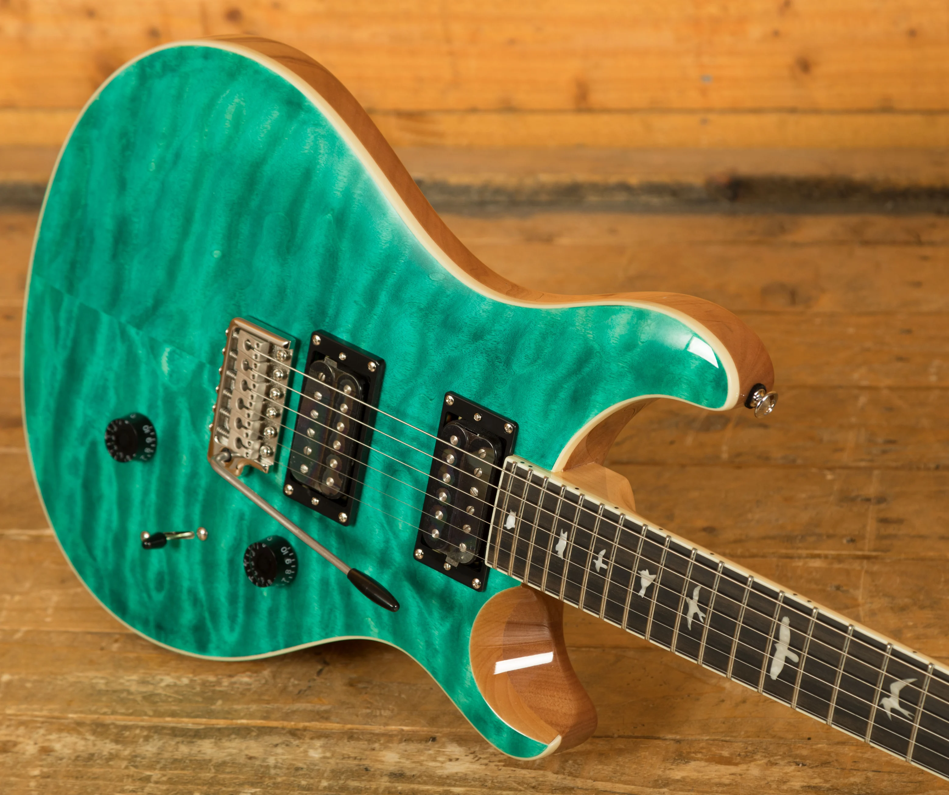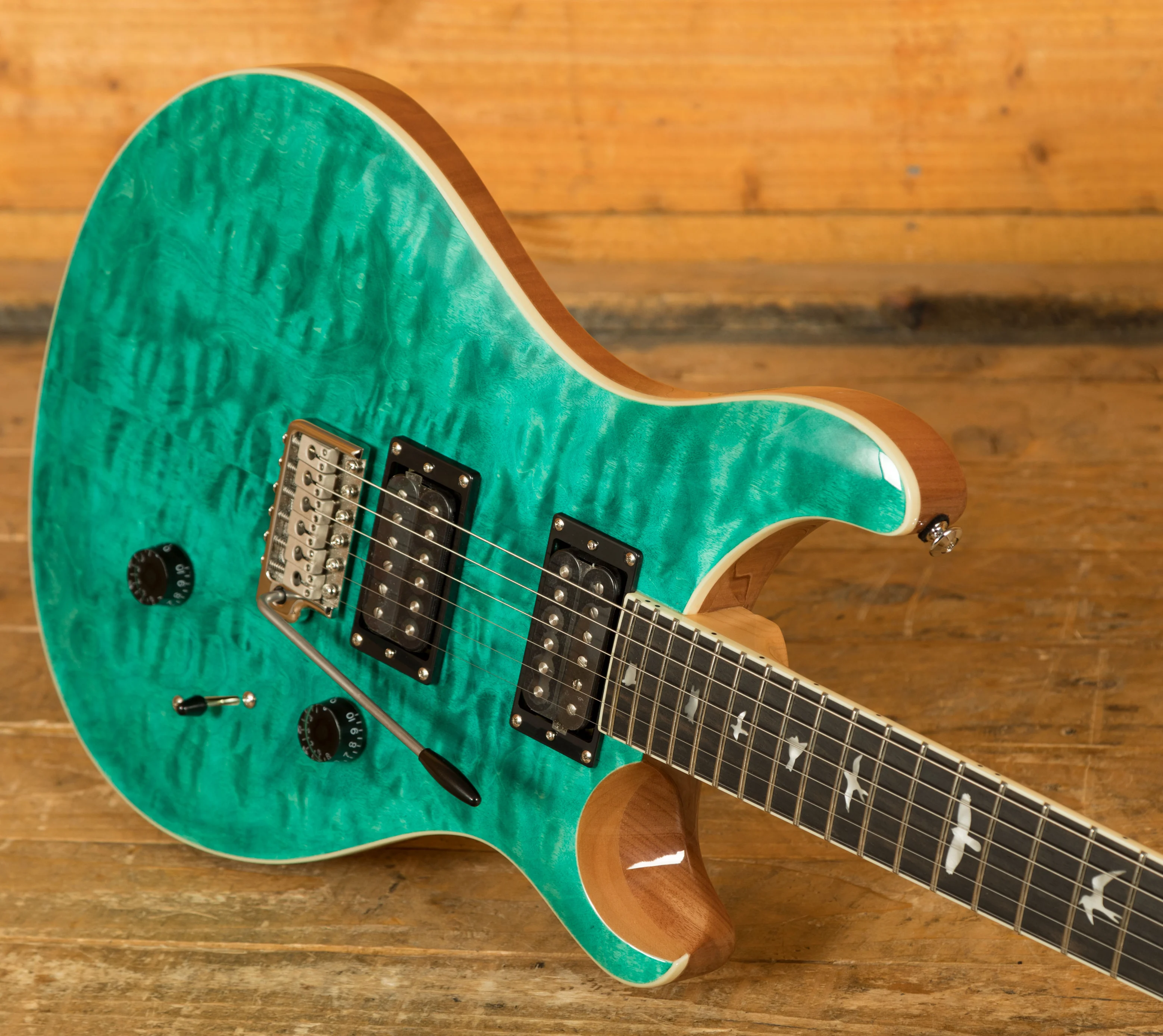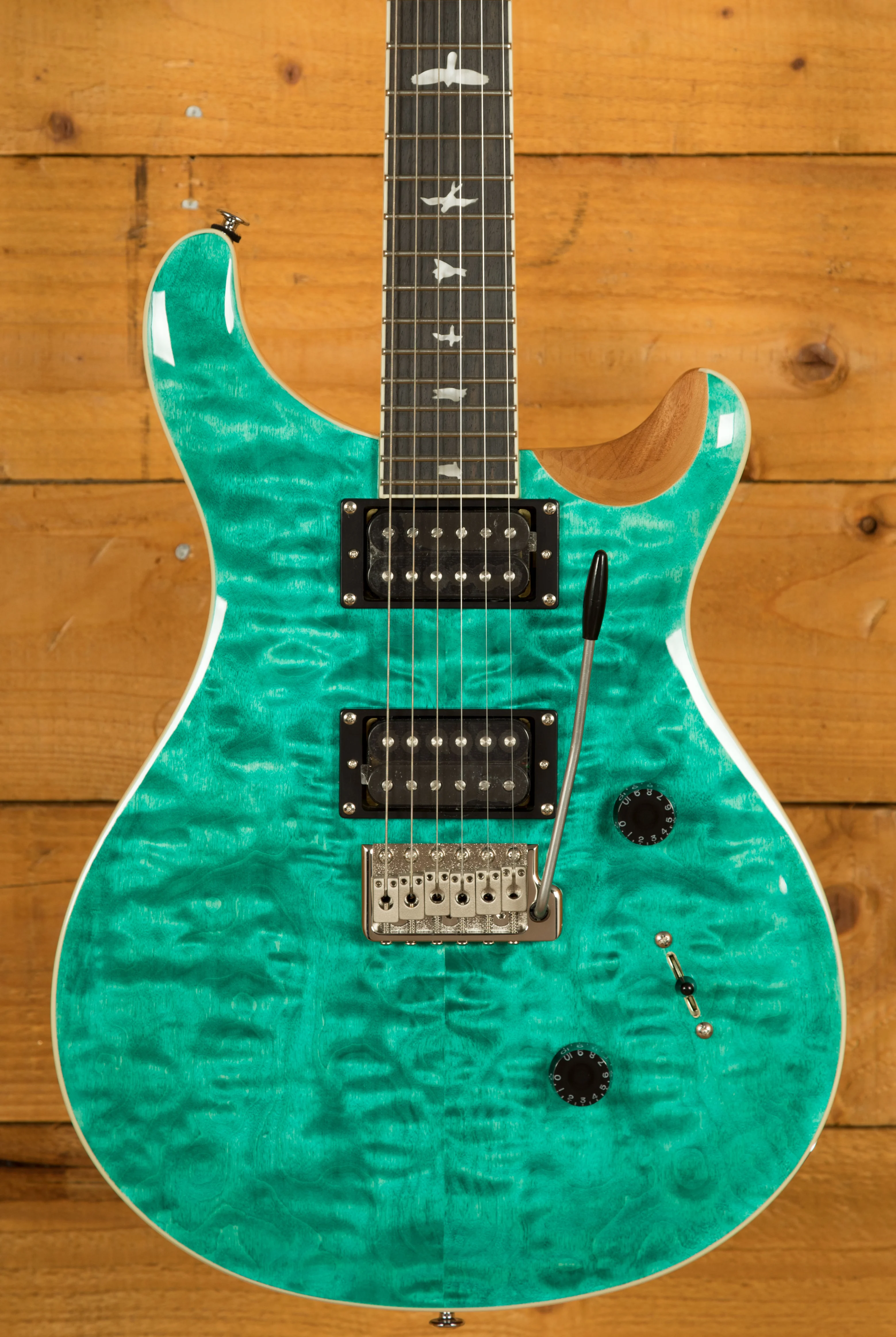 When it comes to hardware, the PRS Patented Tremolo, Moulded bridge keeps your tuning stable even during intense performances, and PRS Designed Tuners ensure precision tuning reliability.
