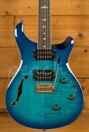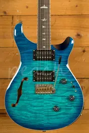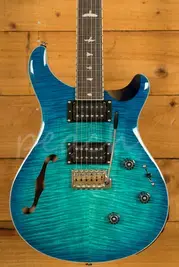 The PRS SE Custom 24 Semi-Hollow Piezo is a versatile and thoughtfully designed guitar that combines the best of electric and acoustic tones. Originally introduced in 1985, the Custom 24 is a cornerstone of PRS's lineup. This semi-hollow iteration takes the iconic design further, offering enhanced resonance and a more dynamic tonal range. Its semi-hollow body construction features a maple top with a flame maple veneer, a mahogany back, and a single F-hole, delivering a warm and articulate sound with a lightweight, comfortable feel.
