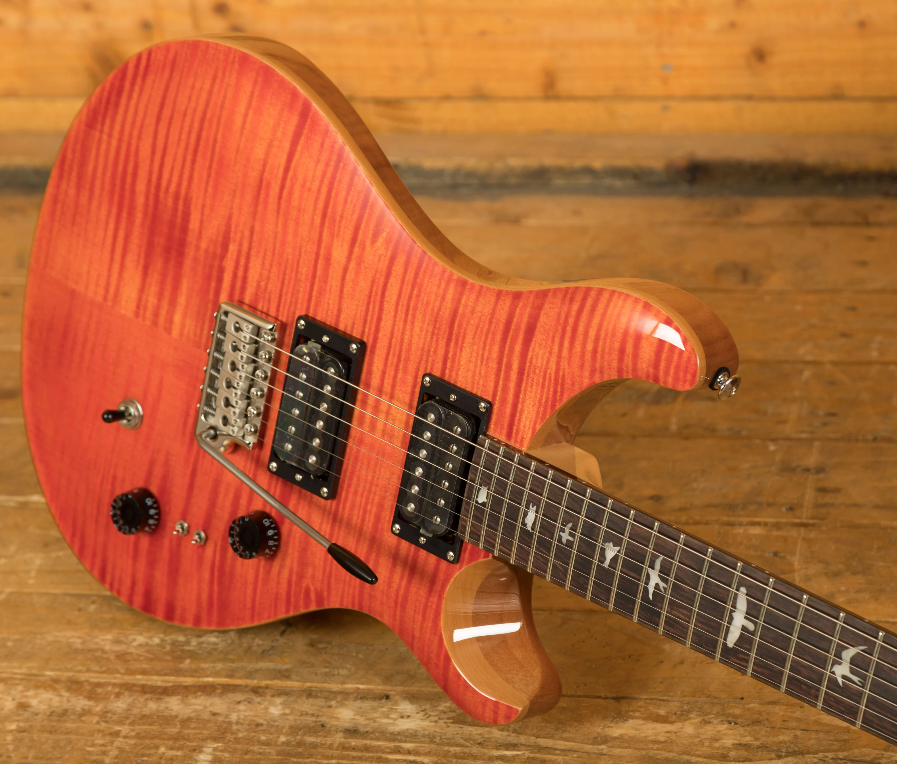 The SE Custom 24-08 is a set neck/body assembly type guitar that is built to PRS's exacting standards. With a shallow violin top carve, flame maple veneer, and iconic bird inlays, this guitar is a true work of art - whether you're a beginner or a seasoned pro, this guitar will take your playing to the next level.