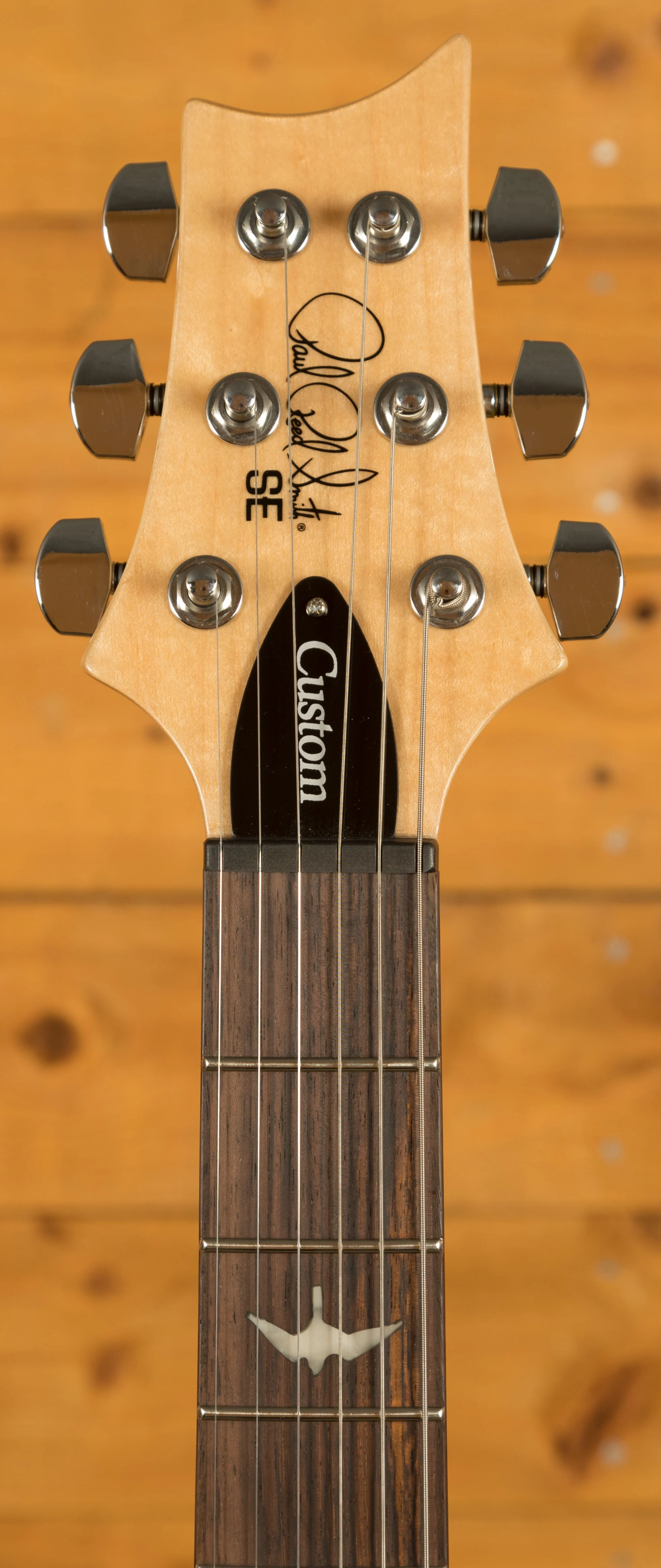 In addition to the patented tremolo system, the SE Custom 24-08 features PRS-designed tuners that are lightweight and provide precise tuning without dampening your tone. The neck is made from maple and has a wide thin shape that makes it easy to play fast and accurately. The neck construction is multi-ply, and the fretboard has a 10" radius with bird inlays.