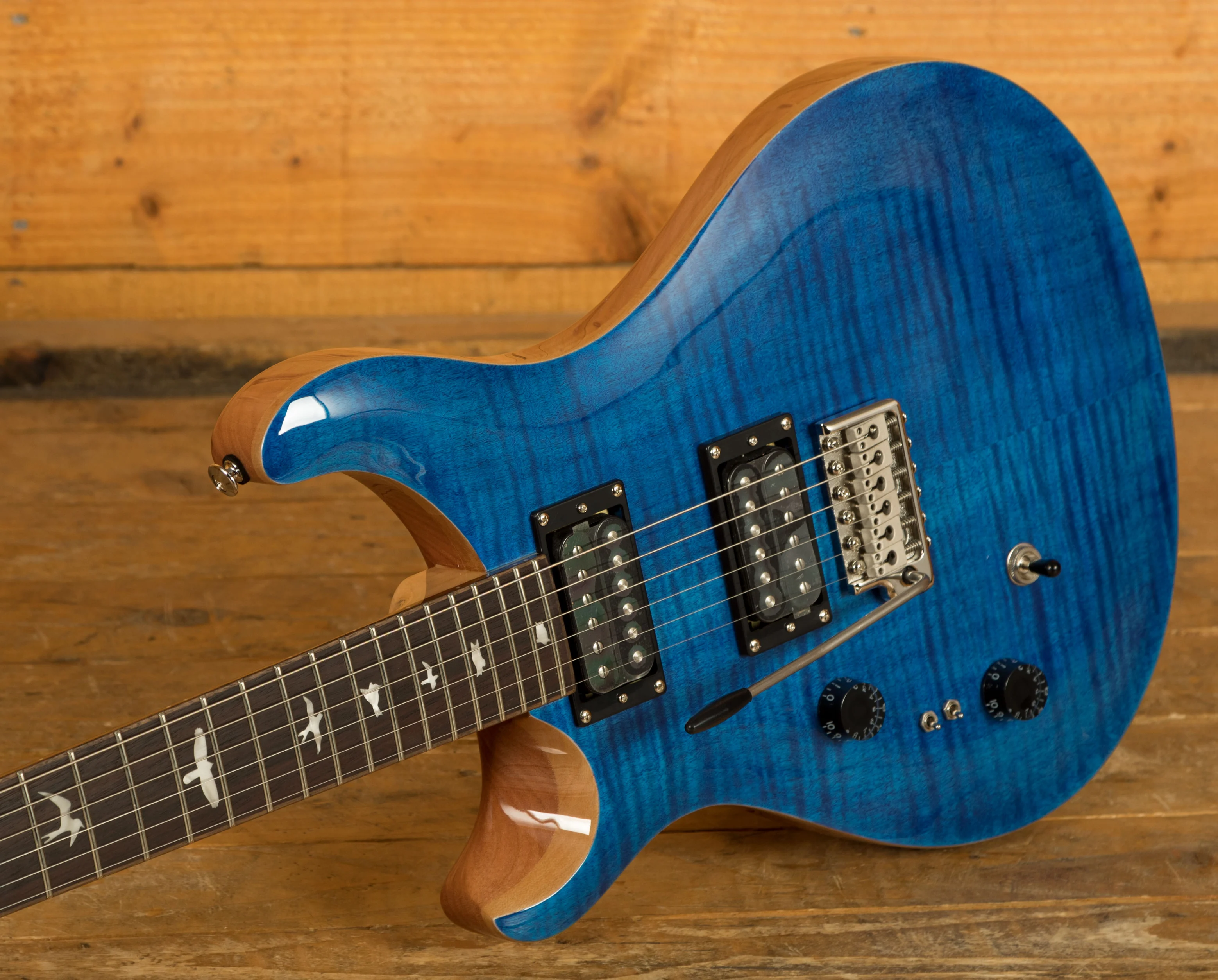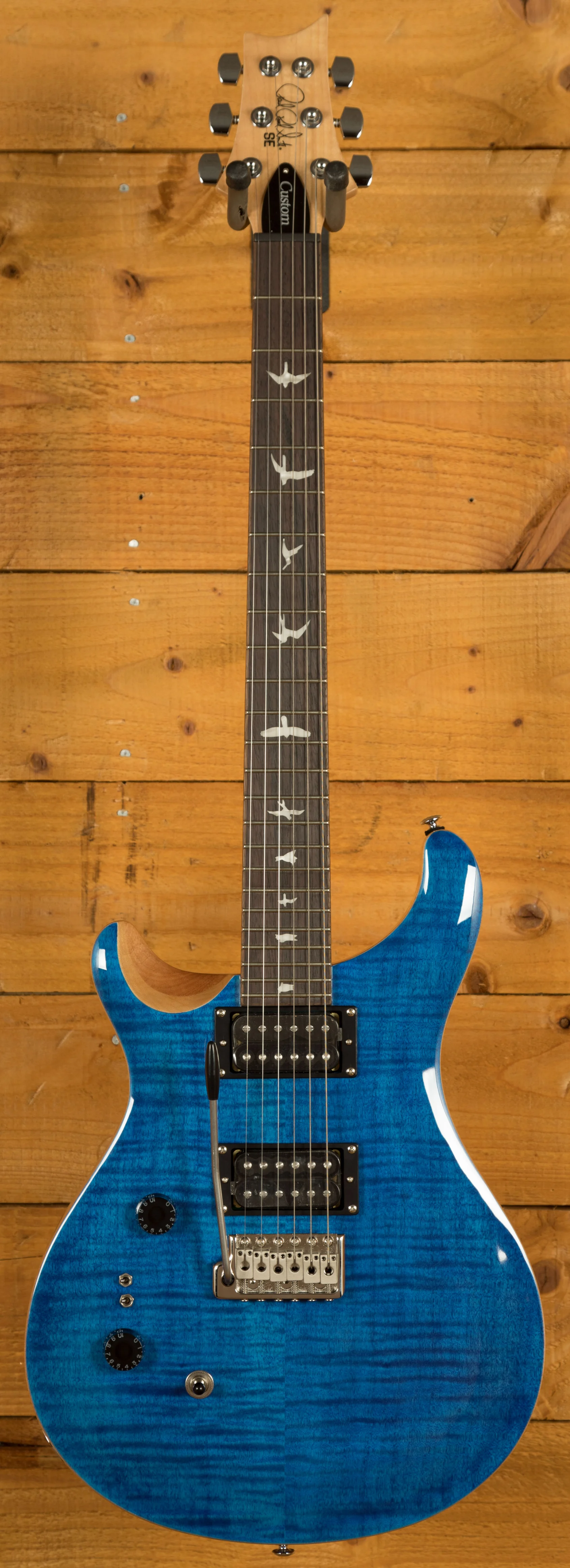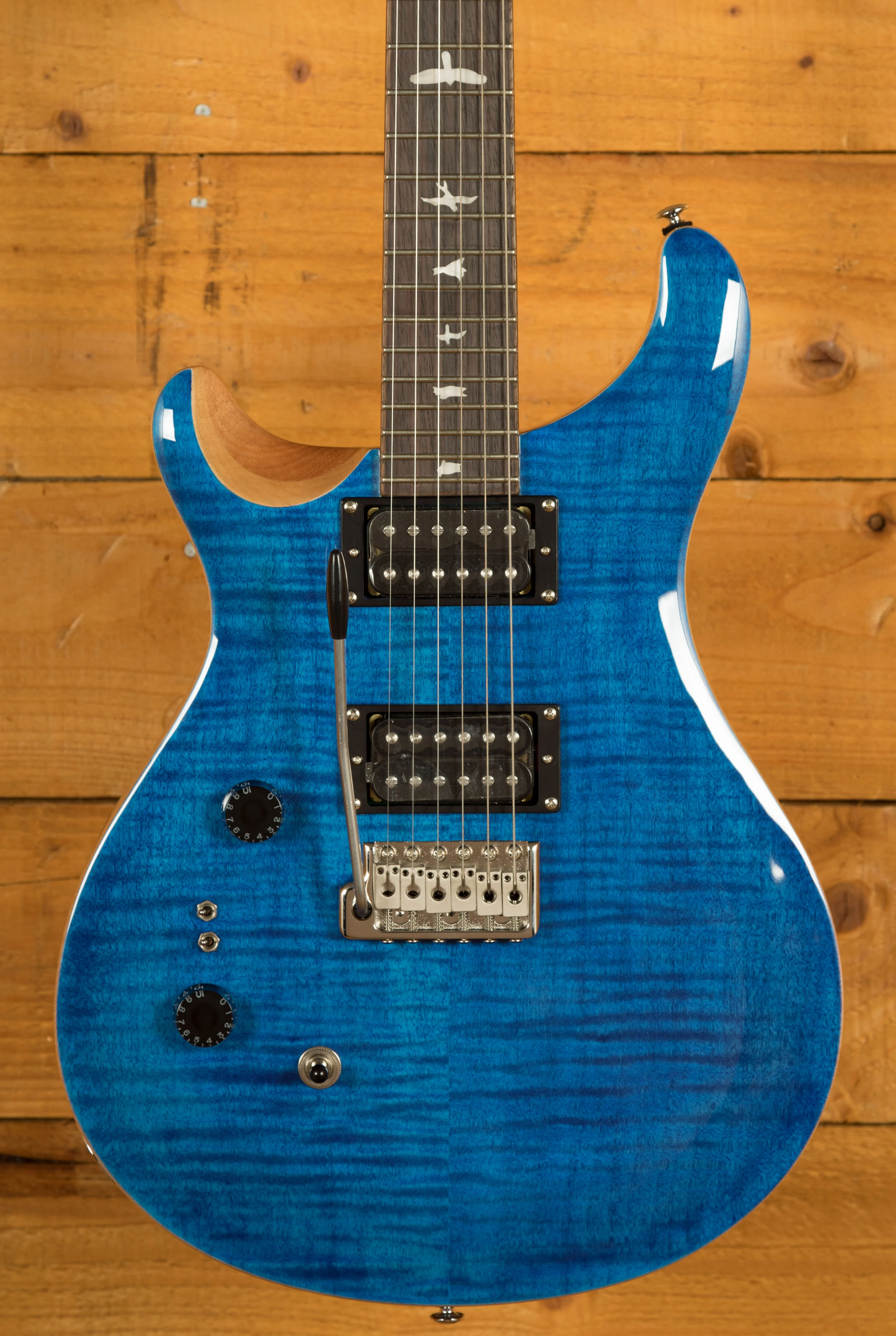 The SE Custom 24-08 retains classic design elements, including a maple top, mahogany back, rosewood fretboard, 24 frets, 25" scale length, bird inlays, signature headstock logo, and PRS patented moulded tremolo. The patented design of the tremolo system provides tonal fidelity, player comfort, and tuning stability that is second to none. You can play with confidence knowing that your tuning will remain stable no matter how much you use the tremolo arm.