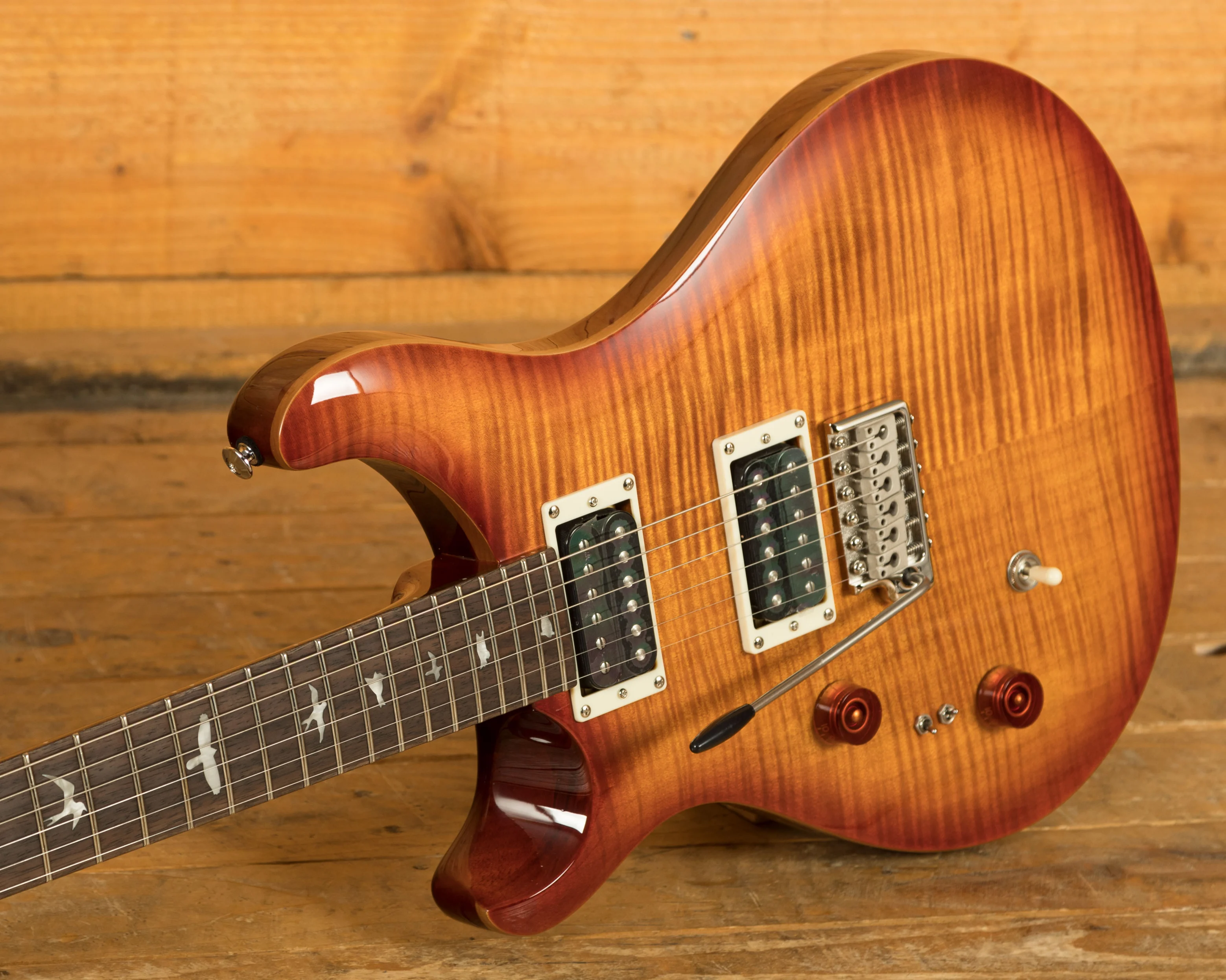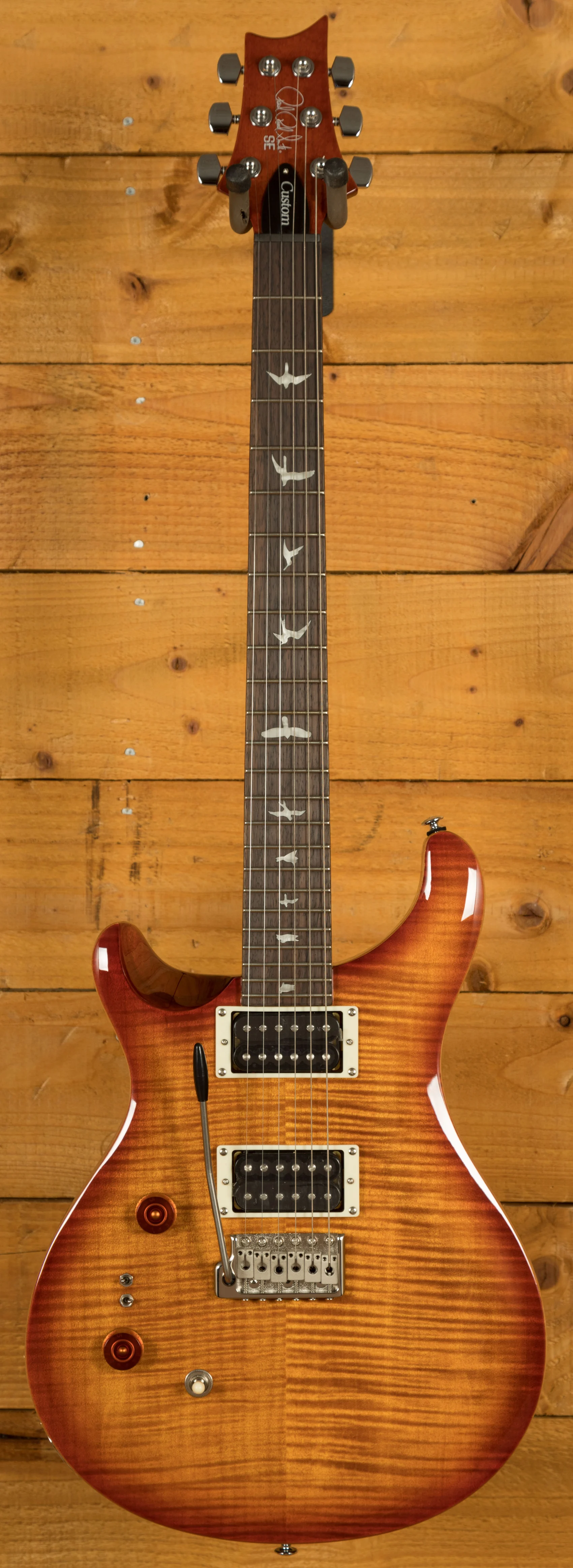 The SE Custom 24-08 is a set neck/body assembly type guitar that is built to PRS's exacting standards. With a shallow violin top carve, flame maple veneer, and iconic bird inlays, this guitar is a true work of art - whether you're a beginner or a seasoned pro, this guitar will take your playing to the next level.