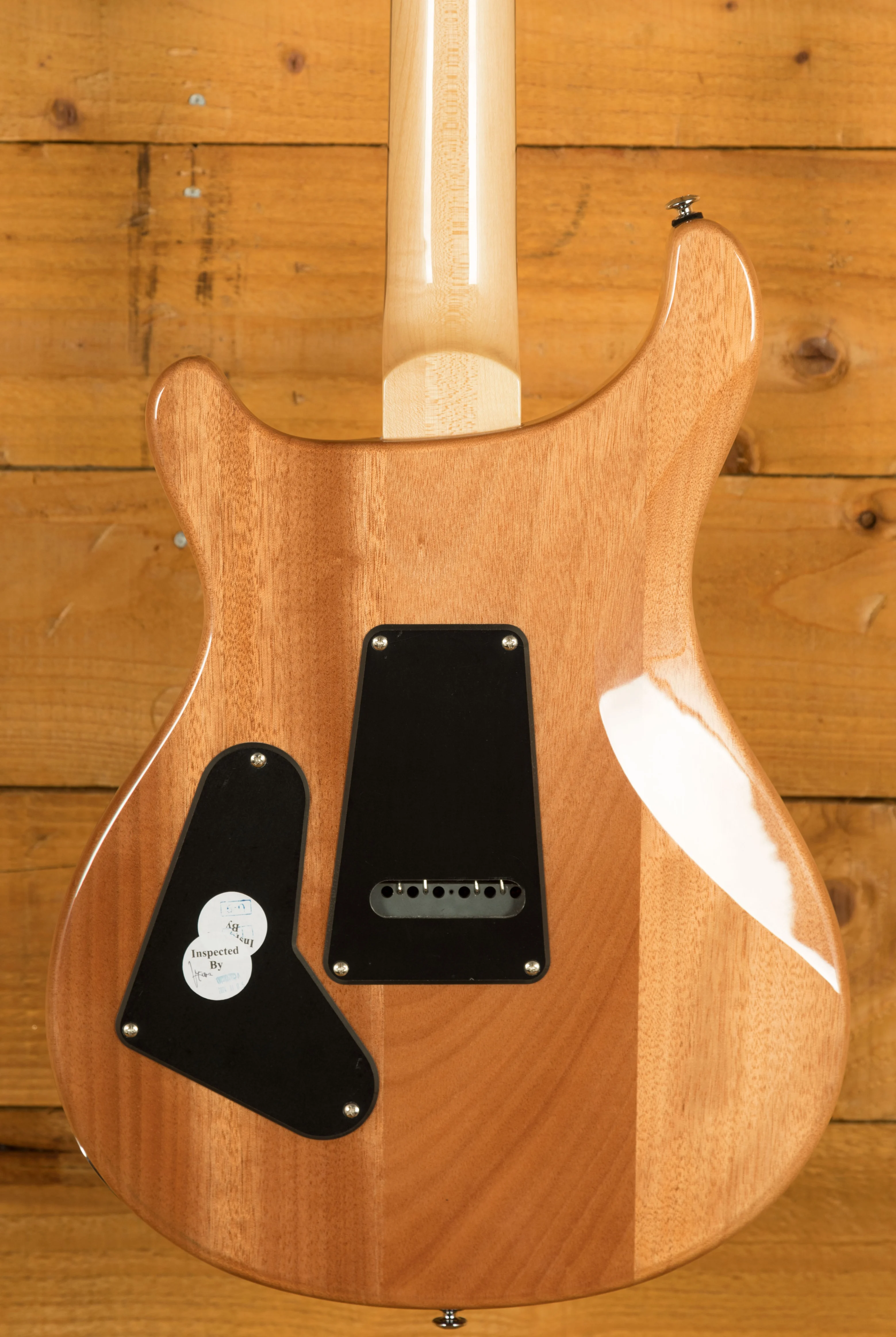 This guitar features a maple top and mahogany back, a wide thin maple neck, and a rosewood fretboard with bird inlays. Its versatile sounds come from the 85/15 "S" pickups paired with a volume, push/pull tone control, and 3-way blade pickup selector. The PRS patented moulded tremolo provides tonal fidelity, player comfort, and tuning stability, while the lightweight PRS-designed tuners ensure precise tuning without dampening your tone.