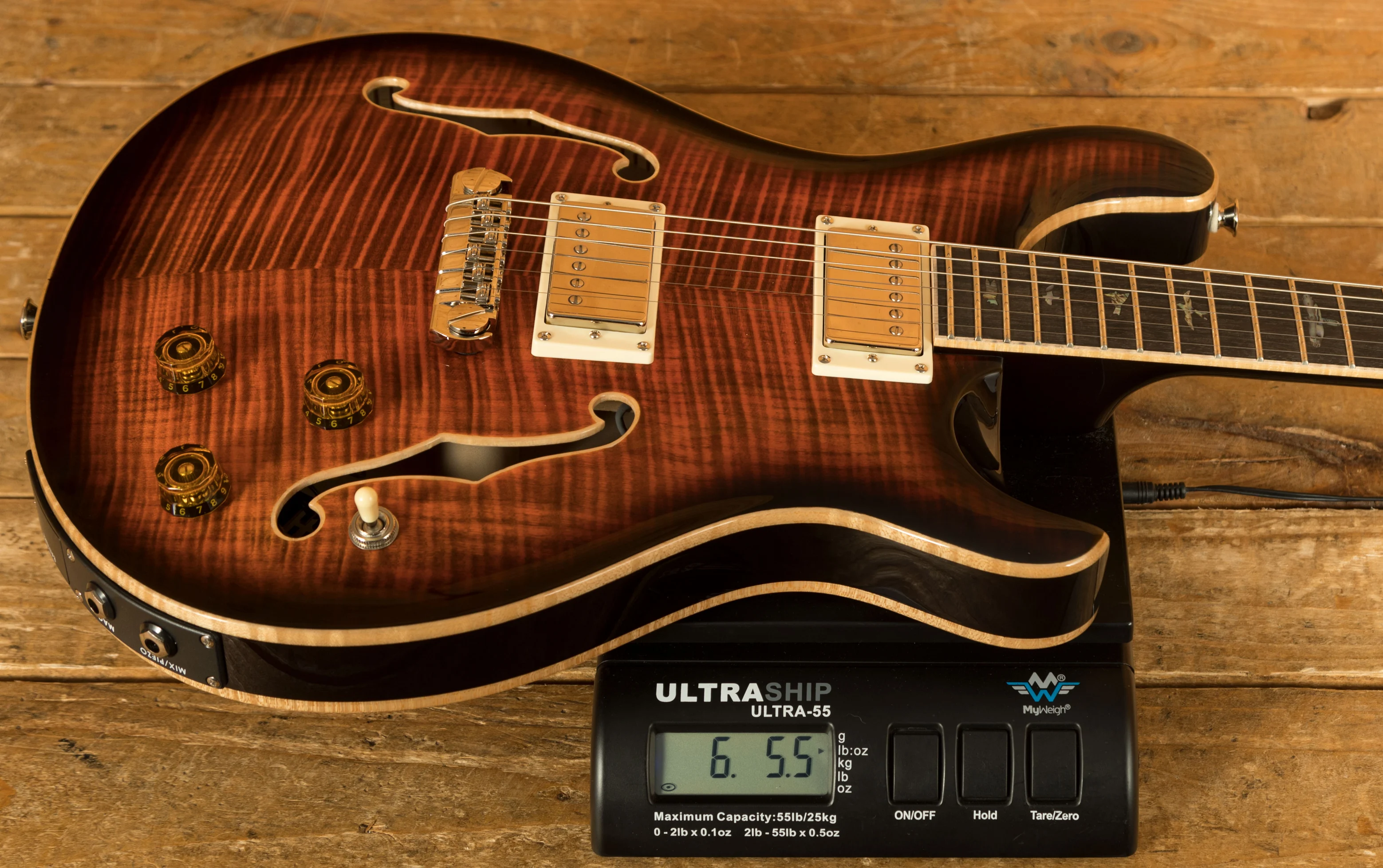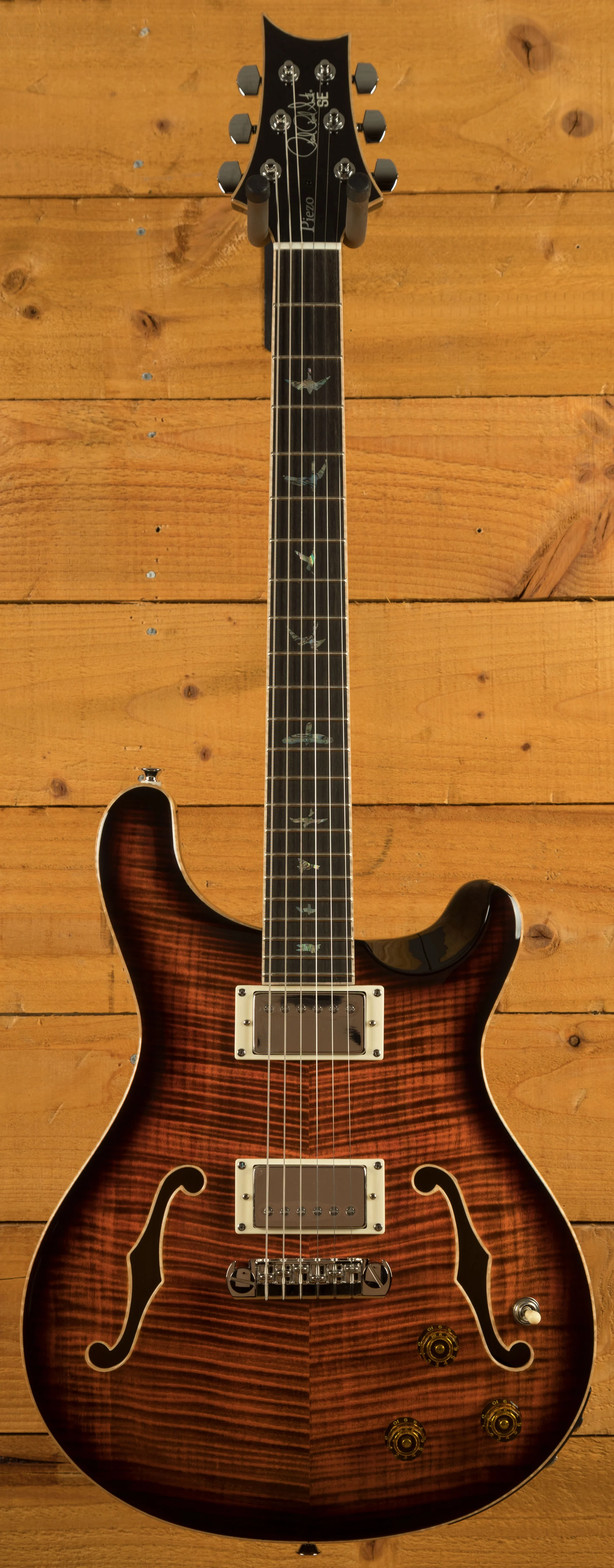 With 22 frets and a 25" scale length, the SE Hollowbody II Piezo is designed for effortless playability. The neck depth and width are tailored for a comfortable playing experience, whether you're performing intricate solos or powerful chords. The fretboard is ebony with a 10" radius, iconic PRS bird inlays and a bone nut for enhanced sustain.