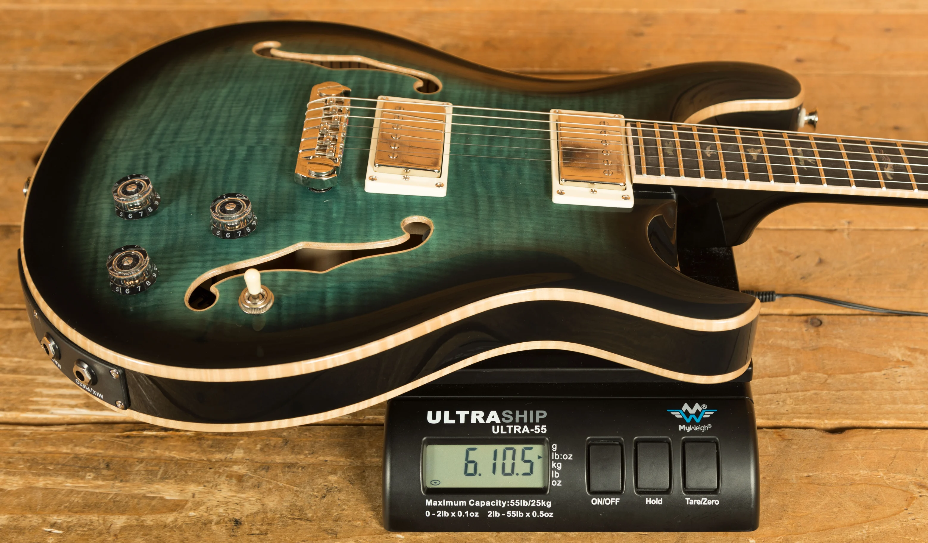 Join the legacy of Paul Reed Smith with the most versatile SE instrument in its twenty-year history. The Hollowbody II Piezo is the ultimate instrument for guitarists seeking the harmonious blend of a hollowbody's balanced, resonant tone and the robust stability of a solid-body electric guitar. It is meticulously crafted with a maple back and top paired with mahogany sides, delivering a light shimmer and snap that is as visually stunning as it is sonically captivating.