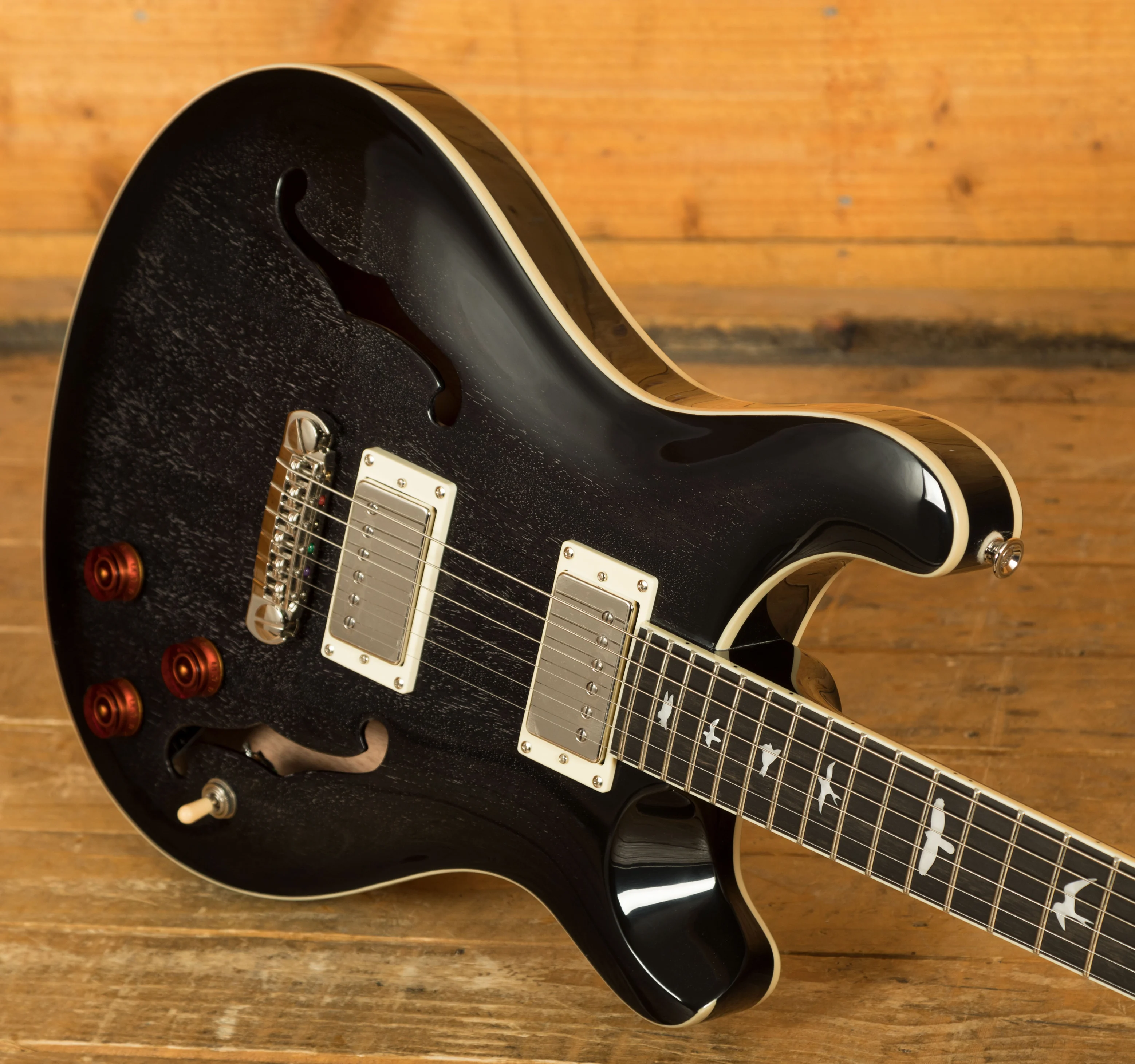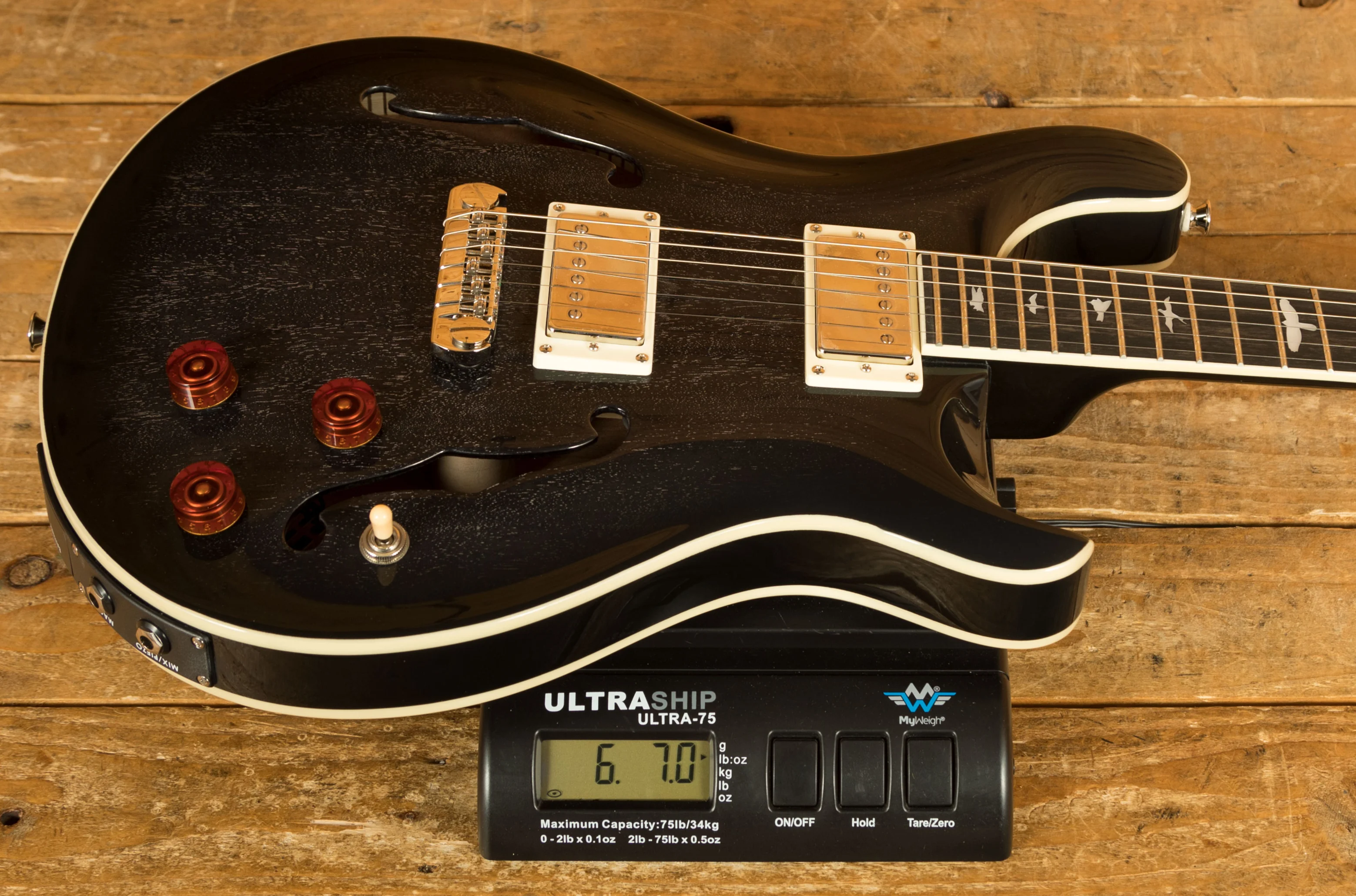The SE Hollowbody Standard Piezo is designed with a 22-fret wide fat neck and PRS adjustable Piezo stoptail bridge that ensures easy playability and an unbeatable sound quality. The bridge, which includes six individual piezo-equipped saddles, works with the LR Baggs/PRS proprietary piezo electronics to effortlessly achieve electric and acoustic sounds in one instrument.