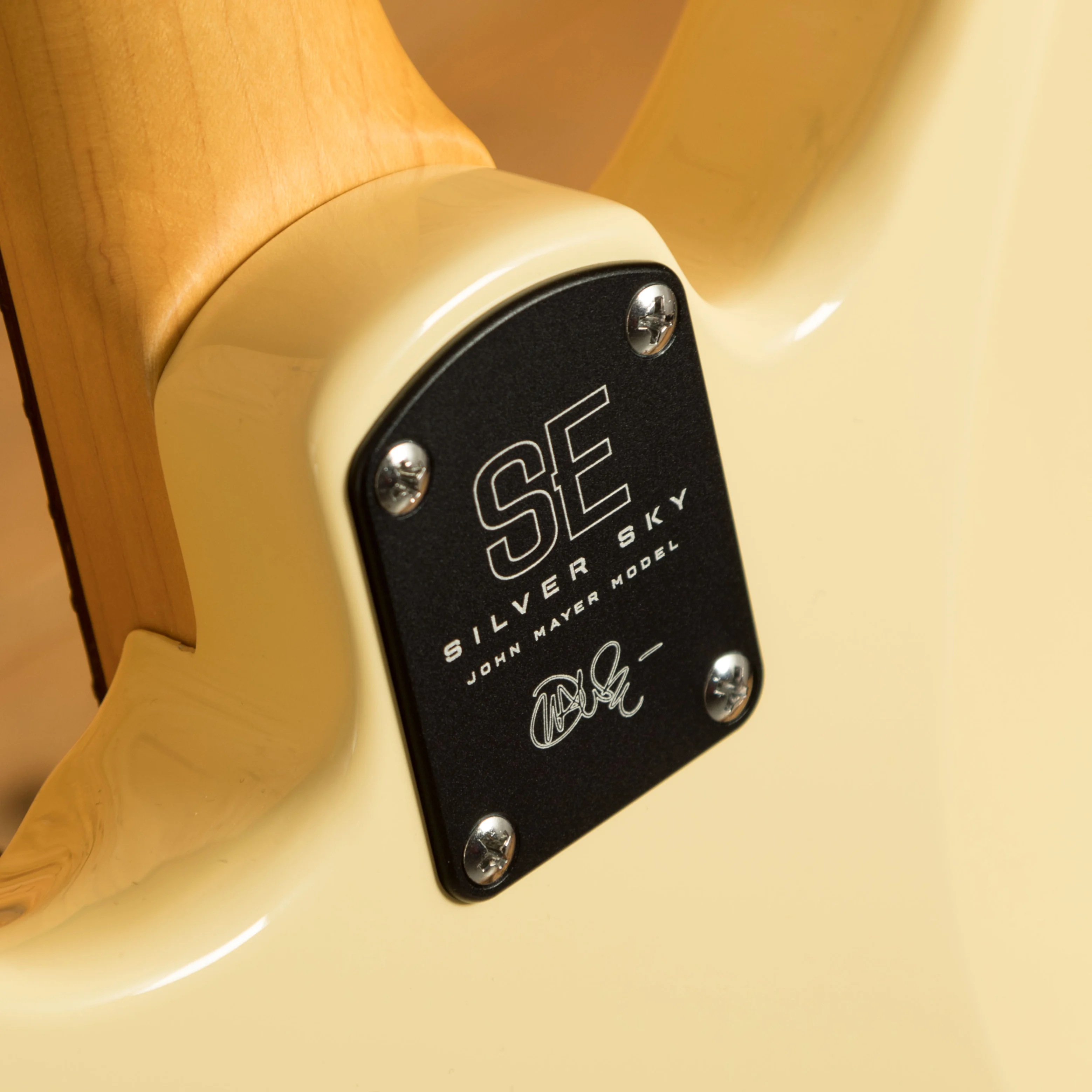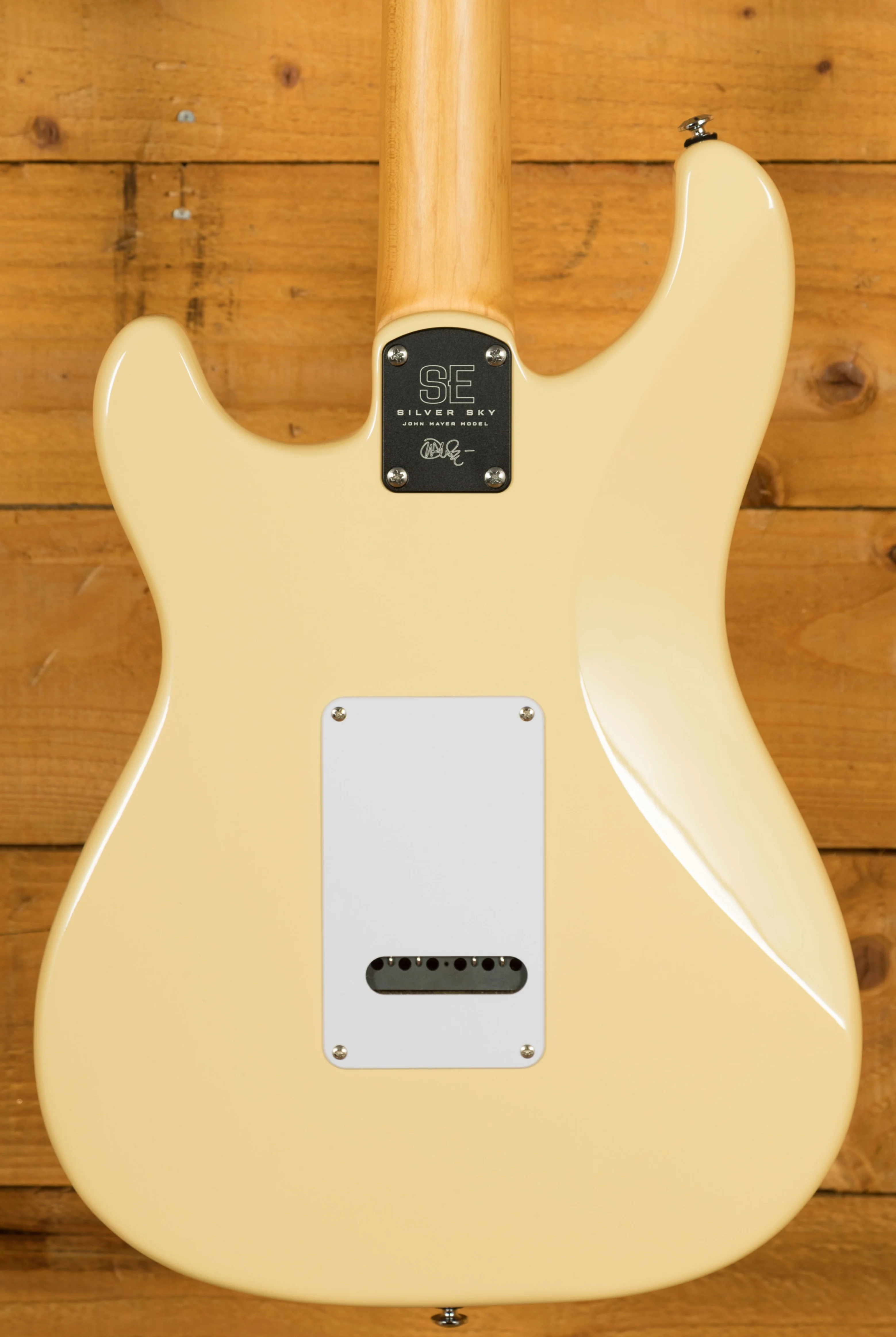 The 22 fret bolt on Maple neck has a 25.5" scale length, slightly flatter 8.5" radius, and a slimmer 41mm nut width. With a Rosewood fingerboard, which has small bird inlays, it offers a classic feel. The iconic PRS headstock has been reversed on the Silver Sky to give some extra clearance on the underside of the nut, it offers great tuning stability and an exclusive look to this signature model.