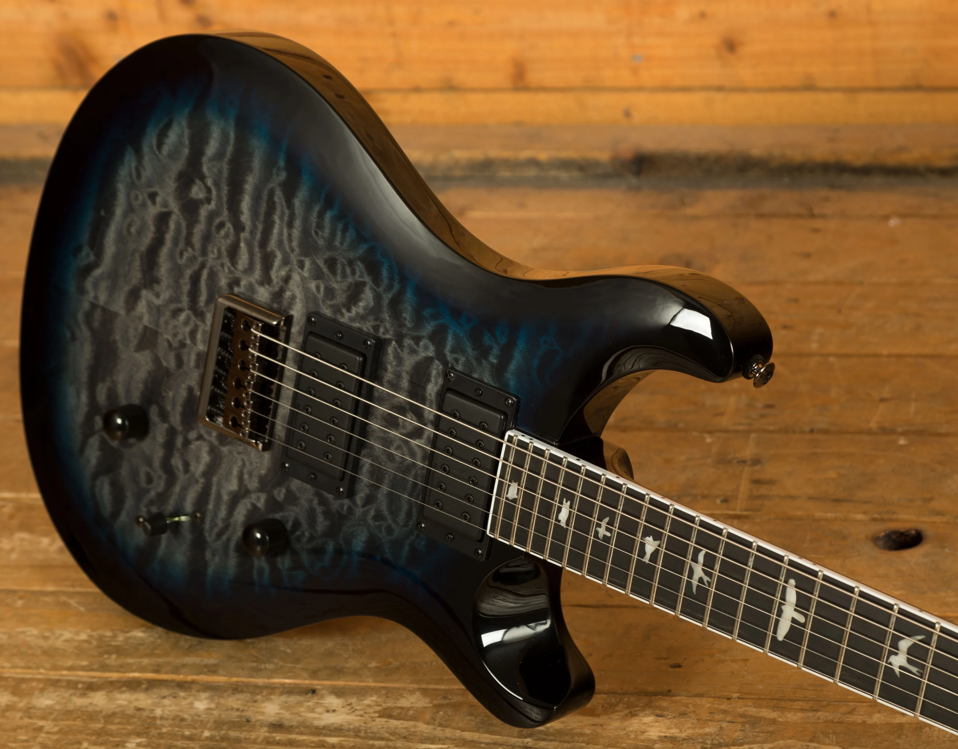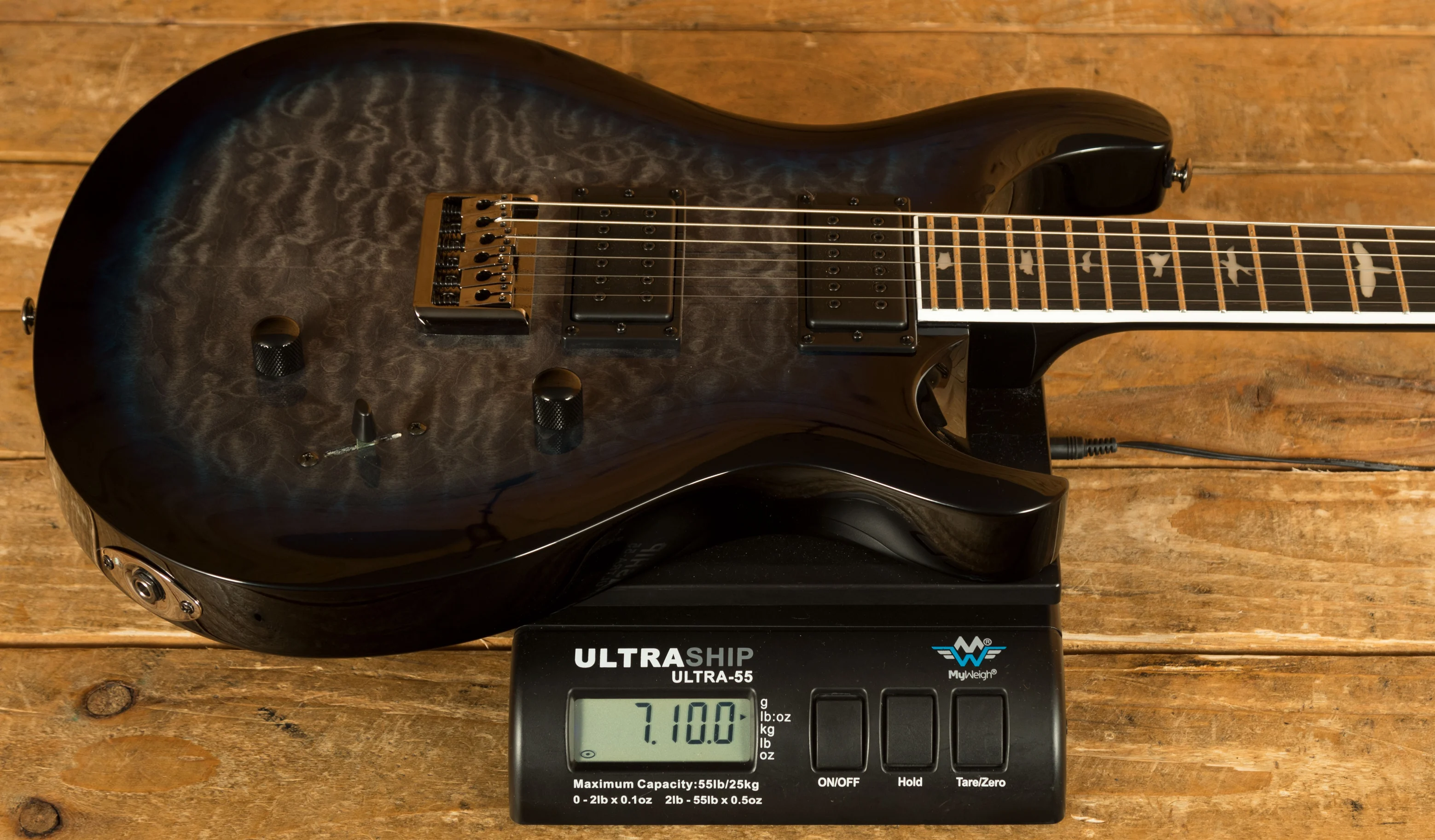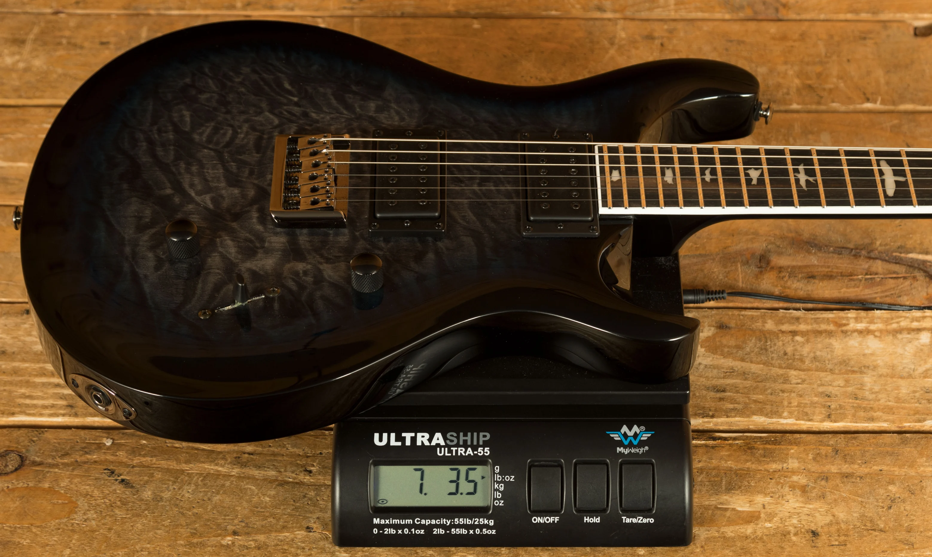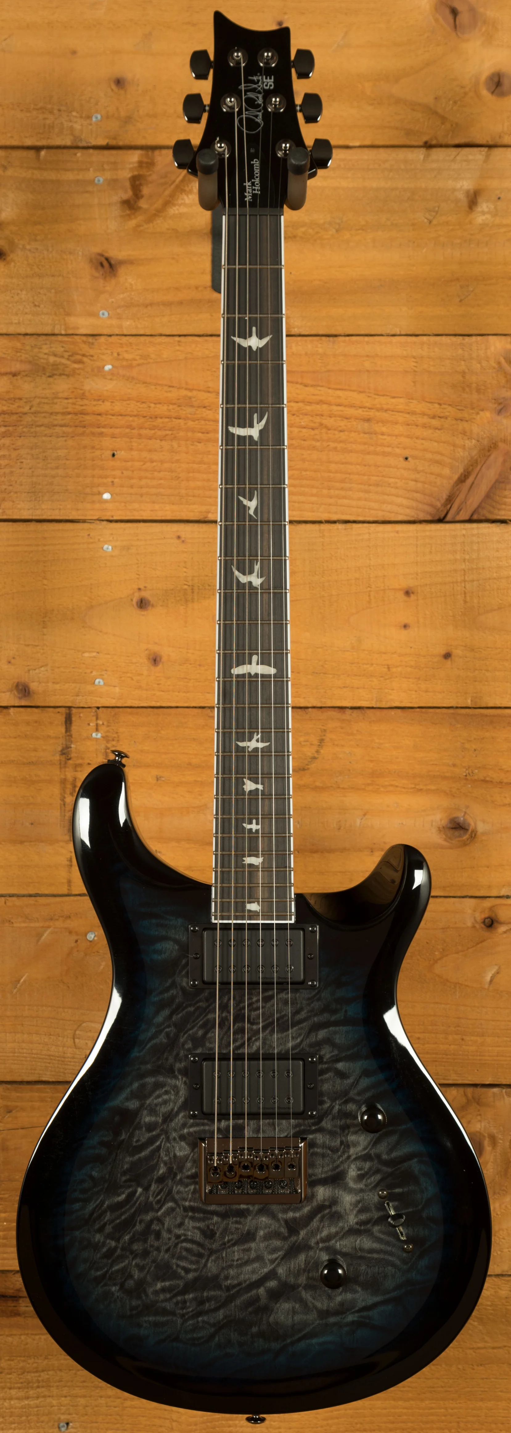 The SE Mark Holcomb guitar features a quilted maple veneer and black chrome hardware, giving it a sleek and modern look. The guitar also features a 3-way blade pickup switch with push/pull tone knob for coil splitting, which allows you to achieve a wide range of tones. The PRS-designed tuners are lightweight and provide precise tuning without dampening your tone.