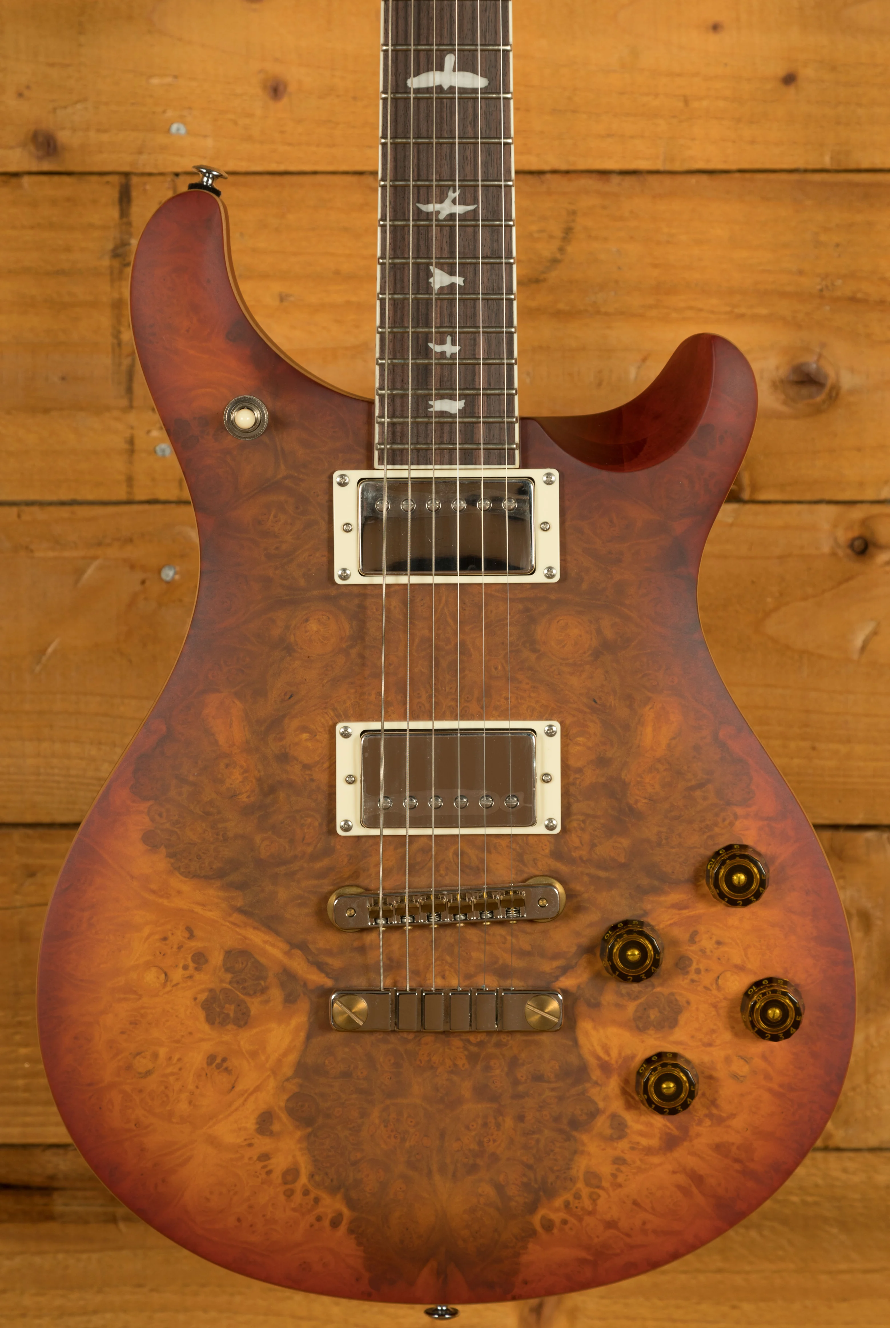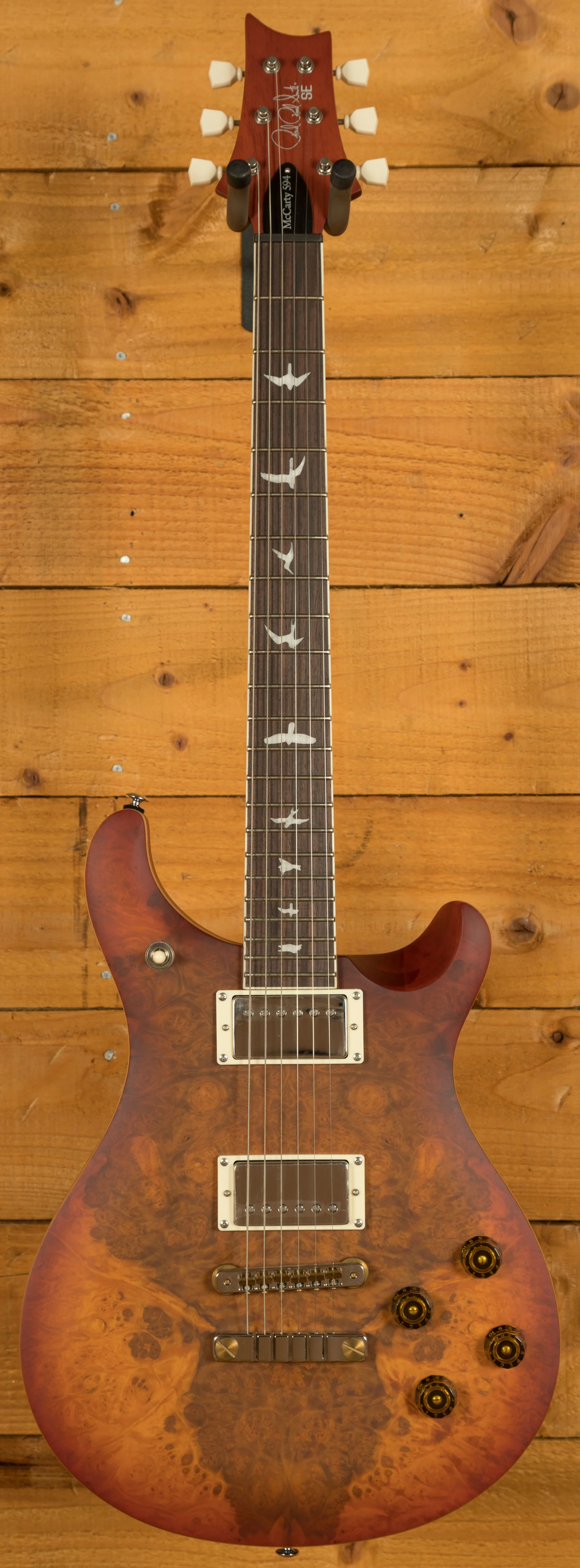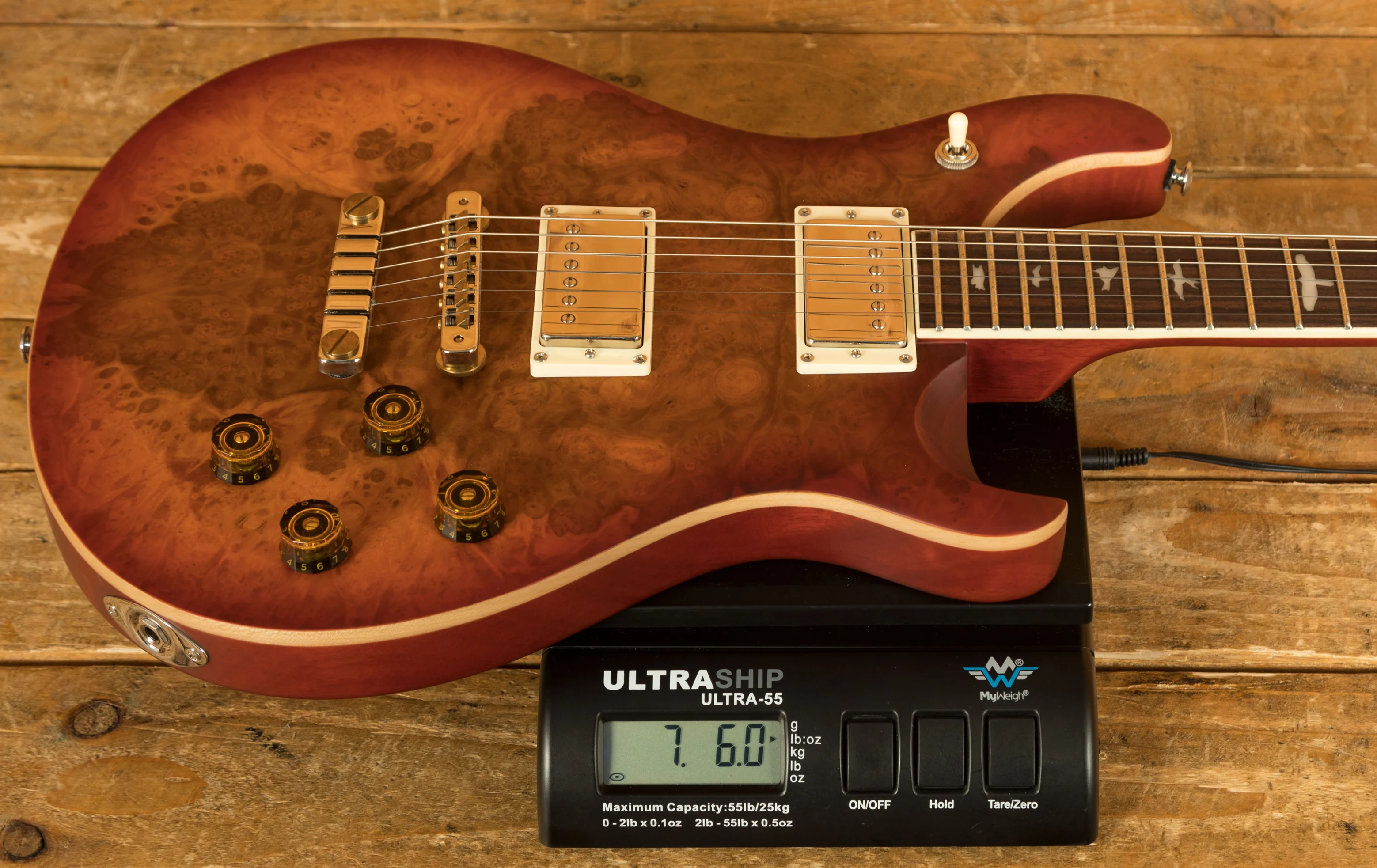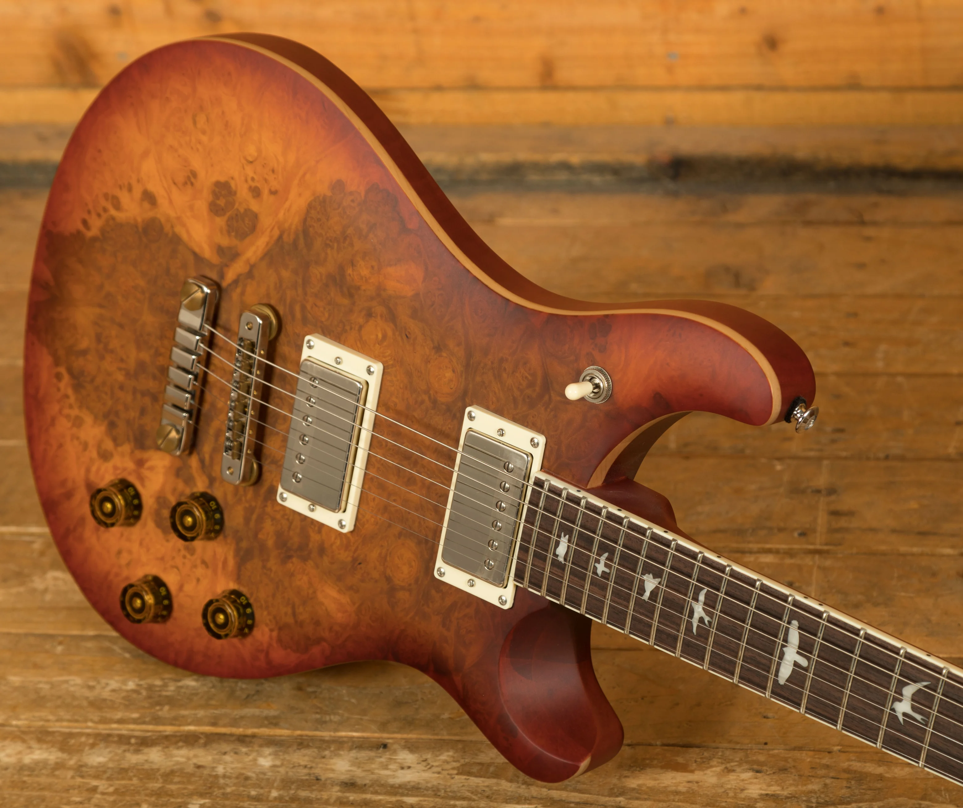 The PRS SE McCarty 594 Laurel Burl Limited Edition is a carefully crafted instrument that blends premium specifications with reliable modern performance. Limited to only 500 pieces for 2025, this guitar features a distinctive laurel burl veneer top for a unique aesthetic, making each model visually one-of-a-kind. Its mahogany body paired with a maple top delivers a balanced tonal foundation, combining warmth and sustain with articulate brightness. The Pattern Vintage mahogany neck with a rosewood fingerboard ensures comfortable playability, while the 24.594" scale length, slightly shorter than standard PRS models, contributes to a familiar, vintage-inspired feel that enhances both tone and playability. Combined with a 22-fret layout, a 10" fretboard radius, and a nut width of 1 11/16", the SE McCarty 594 is designed to accommodate a wide range of playing styles with ease.
