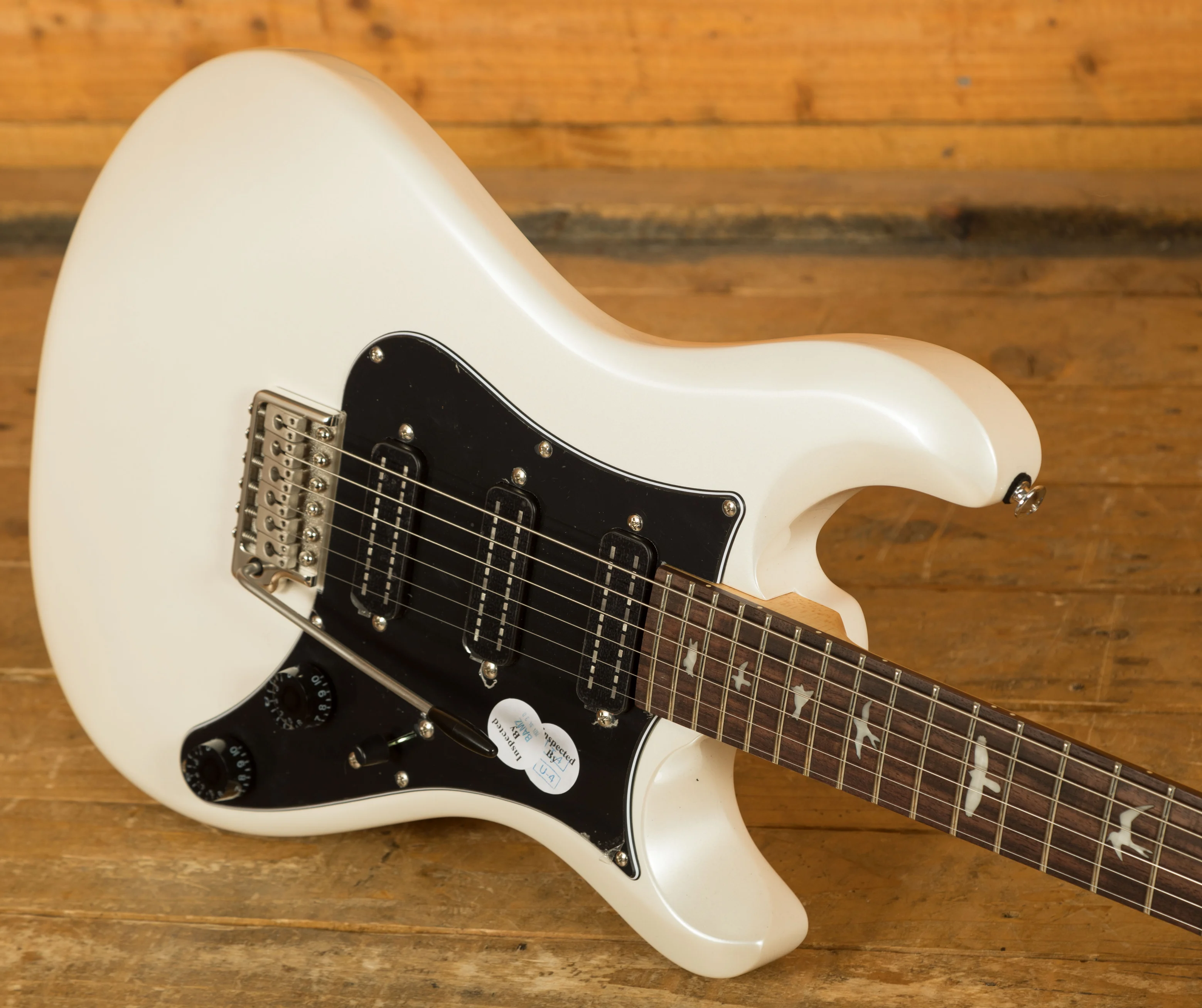 With a Poplar body, it offers a traditional and supremely comfortable playing experience, finished in Pearl White, it looks super slick, you're sure to stand out when playing this! Its well balanced and features the signature PRS lower horn scoop, allowing for great access up the neck.