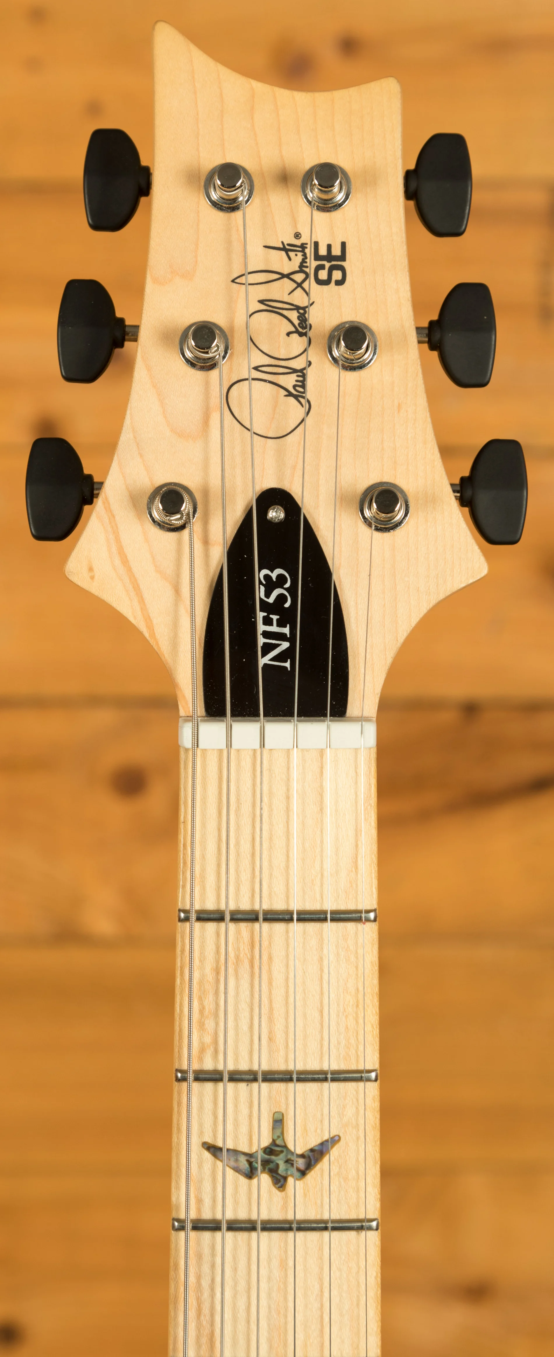 Additional hardware has been carefully designed to enhance both tone and reliability. The steel plate-style bridge with brass barrel saddles provides strong resonance, excellent sustain, and stable intonation. PRS-designed tuners with lightweight wing buttons ensure precise tuning adjustments while maintaining the guitar's natural resonance. For 2026, the tuning buttons have been changed to black for an extra aesthetic touch. Every component of the PRS SE NF53 is built to maximise performance, giving players a professional-grade instrument that combines tonal versatility, playability, and reliability.