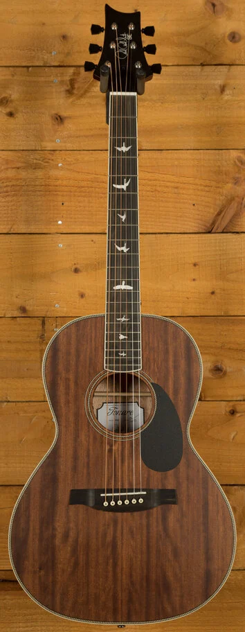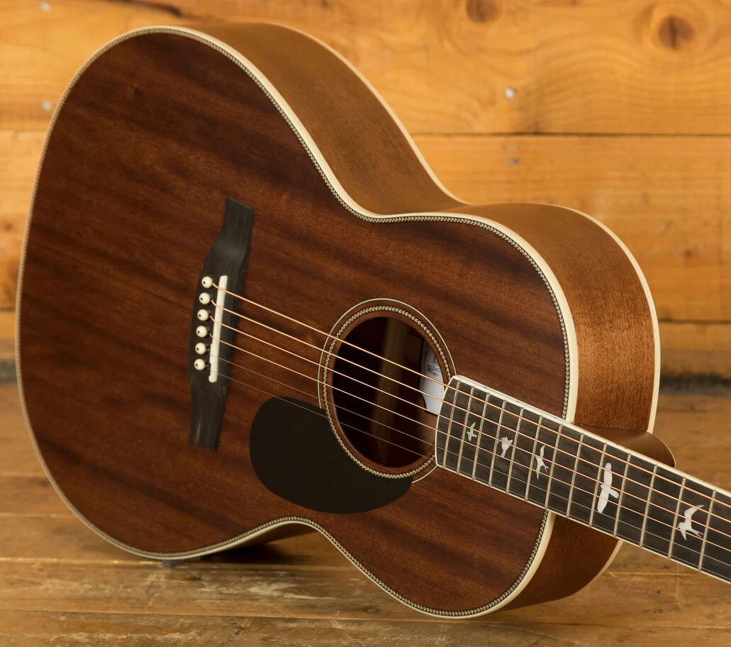 Introducing the PRS SE P20, a parlor-sized acoustic guitar that packs a powerful and warm voice, perfect for professional-grade playing. With all-mahogany construction, this acoustic offers an organic, rich sound that will make your performances stand out. The PRS hybrid "X"/Classical bracing allows the top to freely vibrate, creating even, bold tones that fill any room.