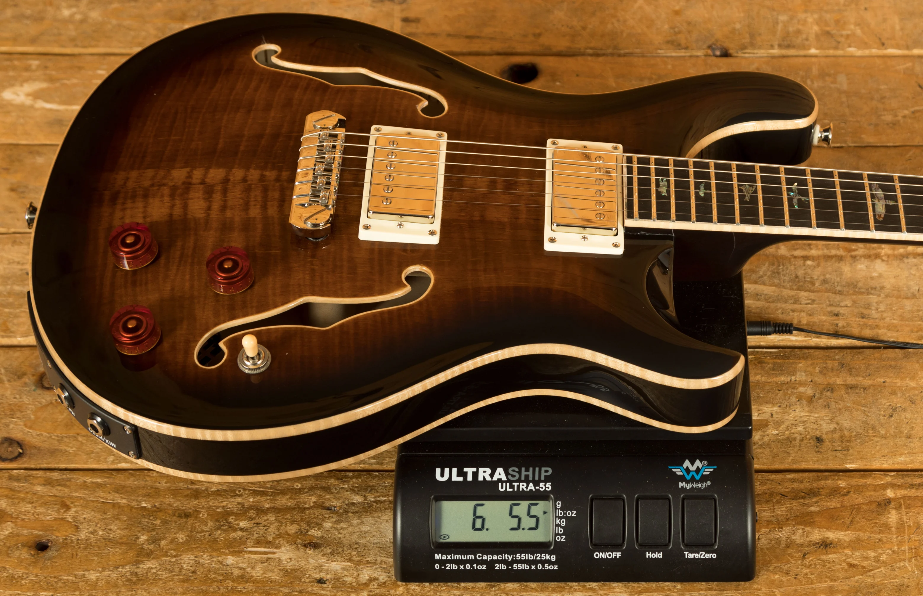With 22 frets and a 25" scale length, the SE Hollowbody II Piezo is designed for effortless playability. The neck depth and width are tailored for a comfortable playing experience, whether you're performing intricate solos or powerful chords. The fretboard is ebony with a 10" radius, iconic PRS bird inlays and a bone nut for enhanced sustain.