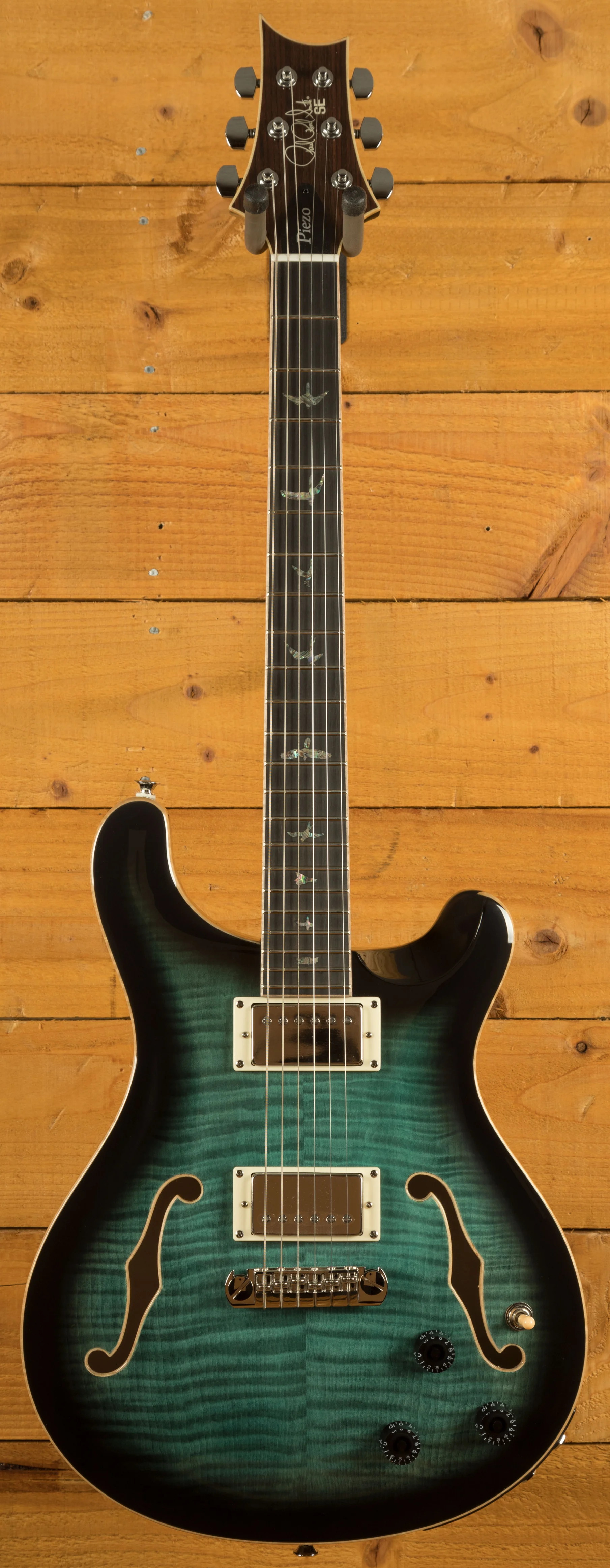 Join the legacy of Paul Reed Smith with the most versatile SE instrument in its twenty-year history. The Hollowbody II Piezo is the ultimate instrument for guitarists seeking the harmonious blend of a hollowbody's balanced, resonant tone and the robust stability of a solid-body electric guitar. It is meticulously crafted with a maple back and top paired with mahogany sides, delivering a light shimmer and snap that is as visually stunning as it is sonically captivating.