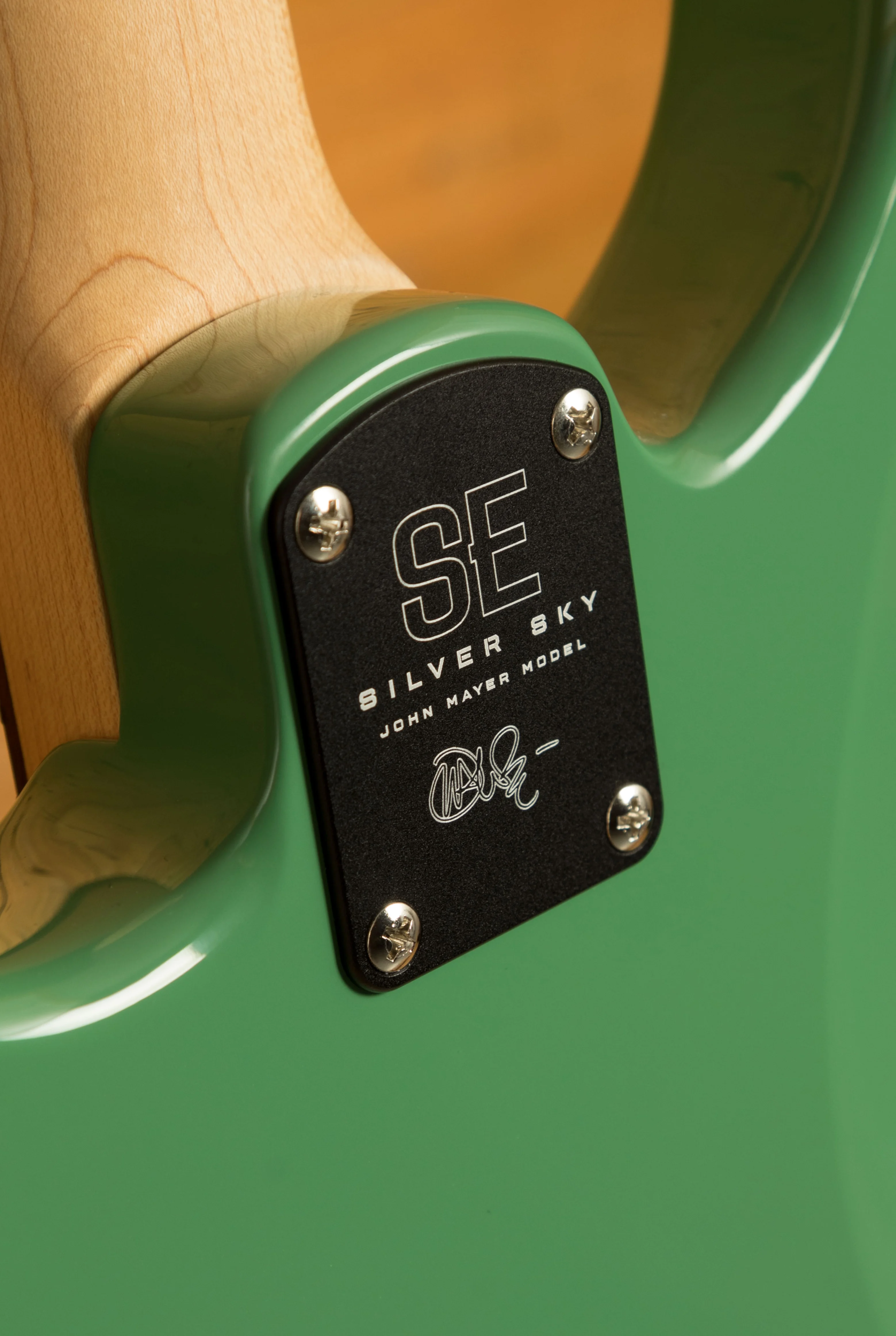 The 22 fret bolt on Maple neck has a 25.5" scale length, slightly flatter 8.5" radius, and a slimmer 41mm nut width. With a Rosewood fingerboard, which has small bird inlays, it offers a classic feel. The iconic PRS headstock has been reversed on the Silver Sky to give some extra clearance on the underside of the nut, it offers great tuning stability and an exclusive look to this signature model.