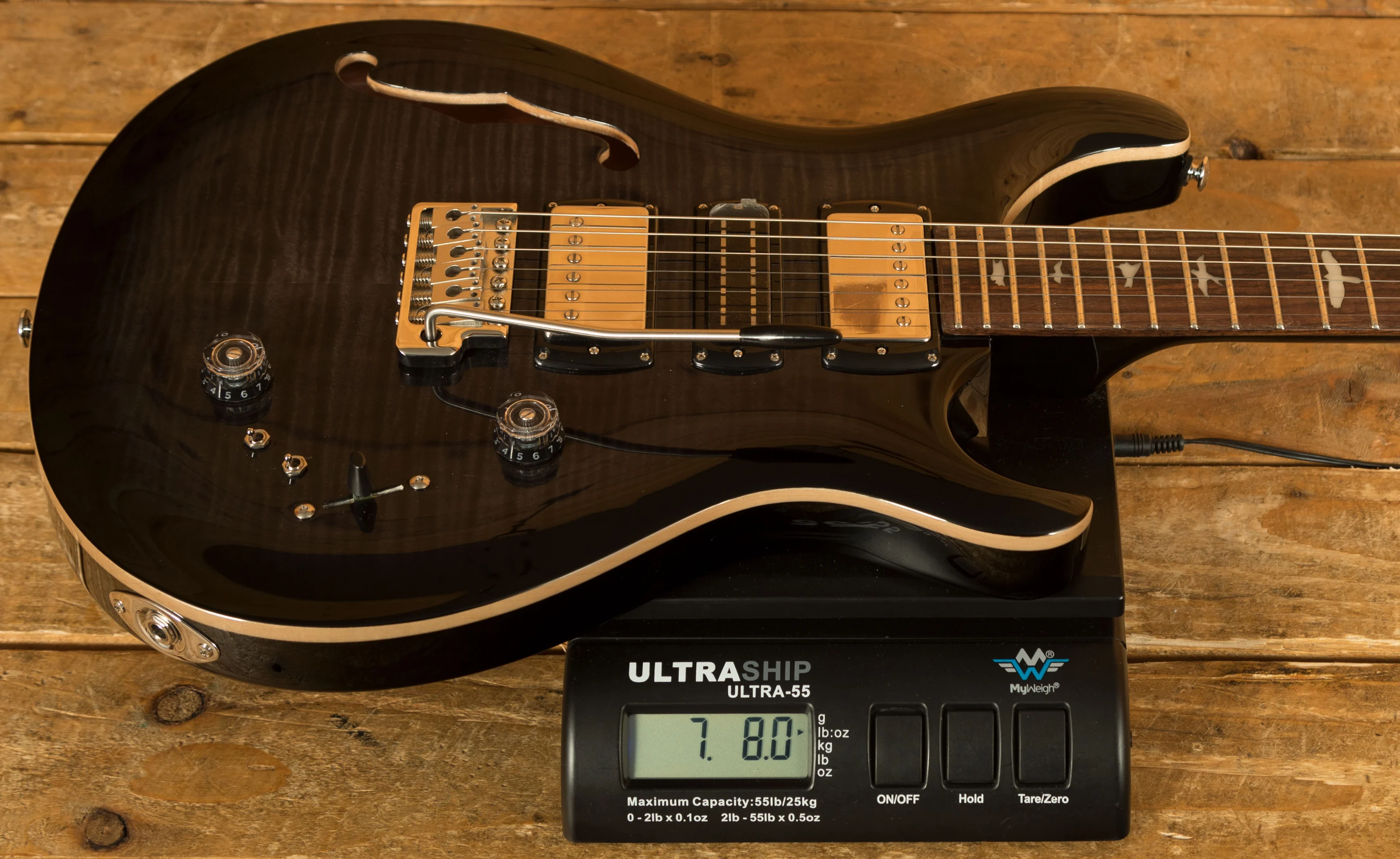 The PRS SE Special Semi-Hollow is designed for players who need versatility, comfort, and reliability in one instrument. Its semi-hollow body enhances sustain and resonance while reducing weight, making it comfortable for longer sessions. The f-hole adds a traditional touch to the design, and the 22-fret, 25" scale, Wide Thin maple neck with rosewood fretboard offers smooth playability across all registers. With PRS's trademark bird inlays and high-quality construction, this model delivers both professional performance and recognisable style.