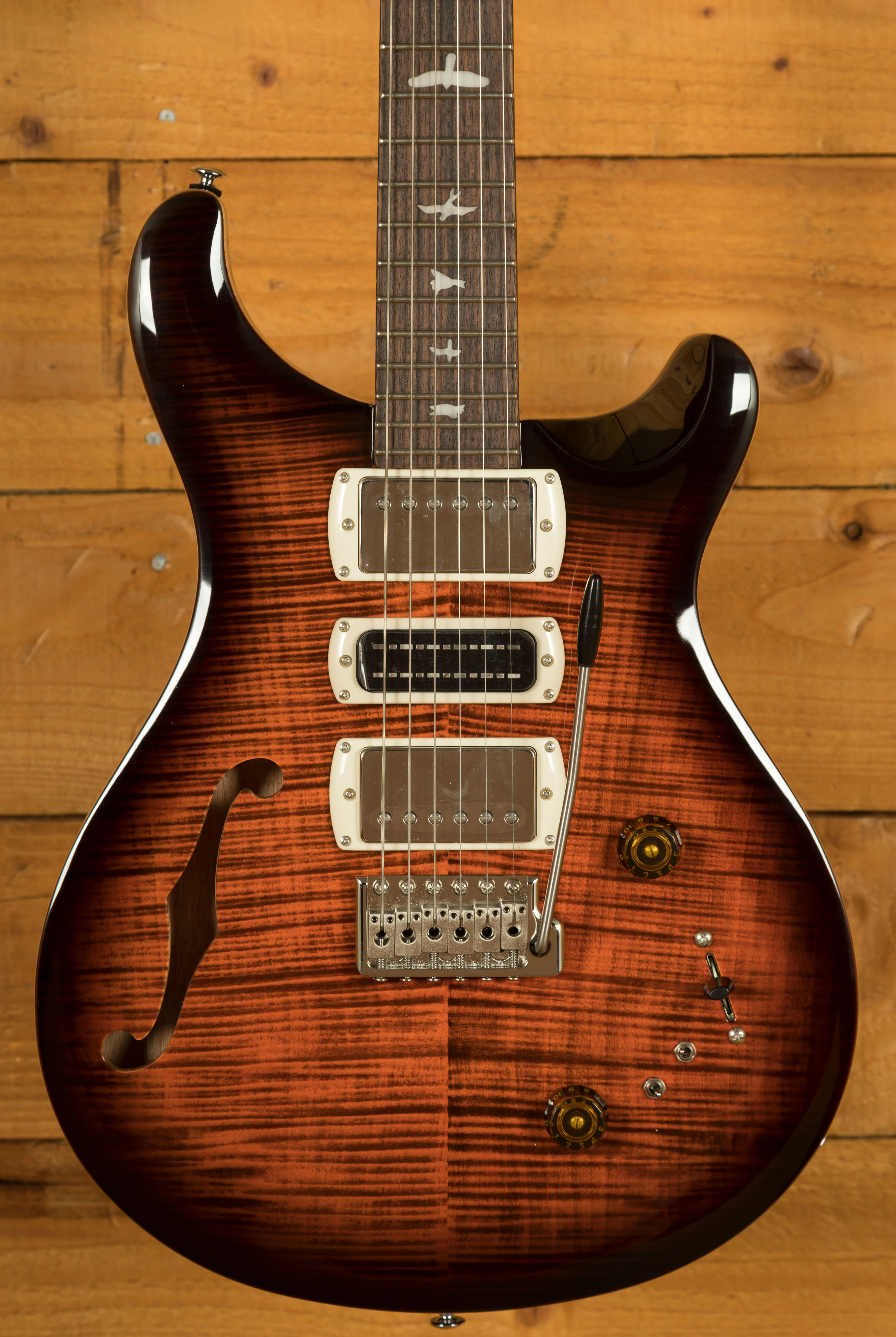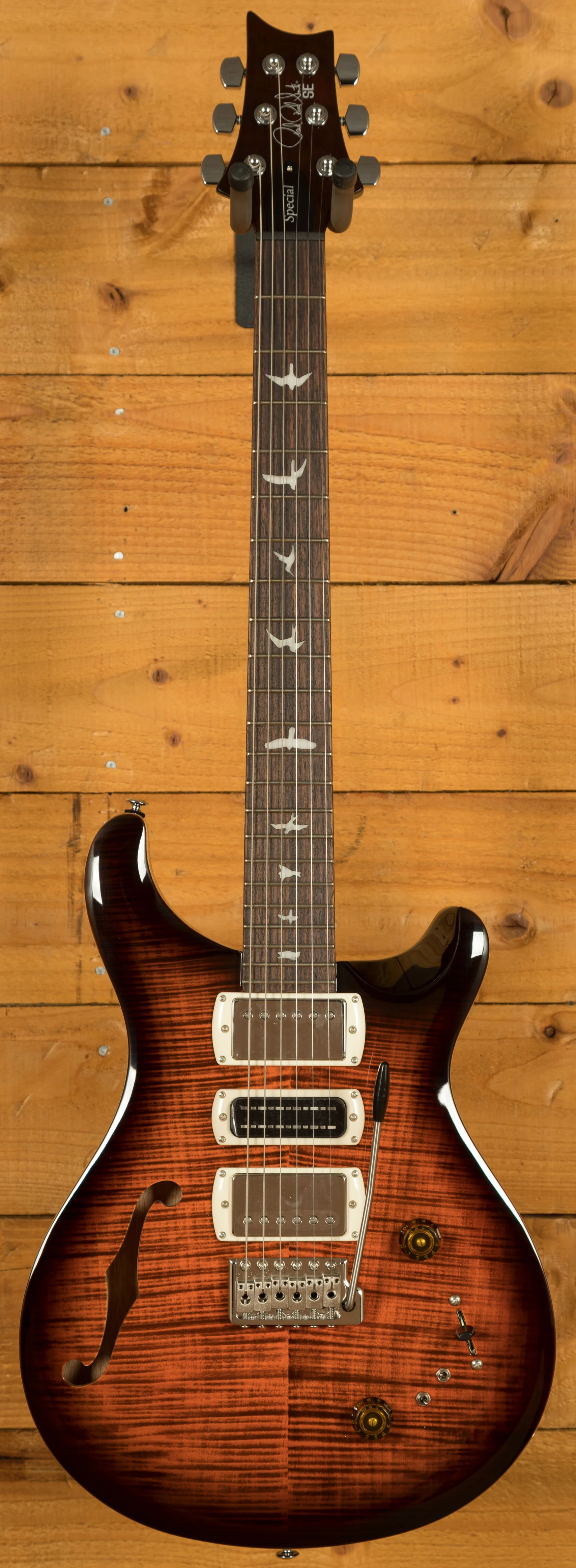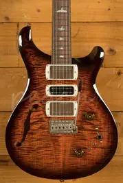 Equipped with a pair of 58/15 LT "S" pickups and a PRS Narrowfield DD "S" in the middle position, the SE Special Semi-Hollow provides a wide range of tonal options. The coil-tap system allows players to switch between full humbucker tones and articulate single-coil sounds, making the guitar suitable for genres including jazz, blues, rock, and pop. With twelve possible pickup configurations, it delivers consistent flexibility whether in the studio or on stage, ensuring players can easily adapt their sound to different musical settings.