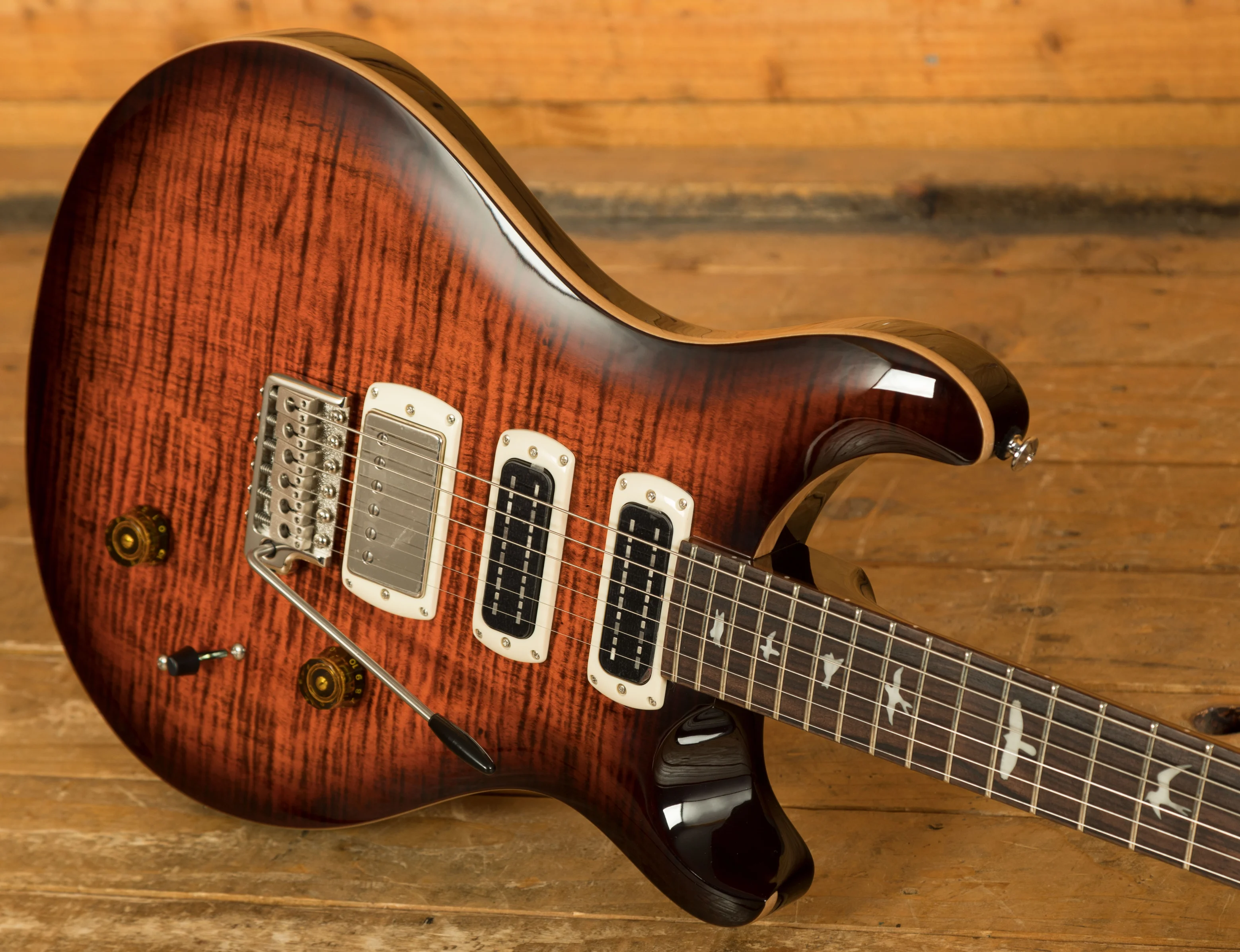 Hardware is engineered for reliability and performance. The PRS-patented moulded tremolo bridge provides tuning stability, precise intonation, and comfortable playability, while the PRS-designed tuners are lightweight and accurate, ensuring dependable tuning without sacrificing resonance. Combined, these components make the SE Studio a dependable choice for practice, studio work, and live performance, offering professional features at an accessible price point.