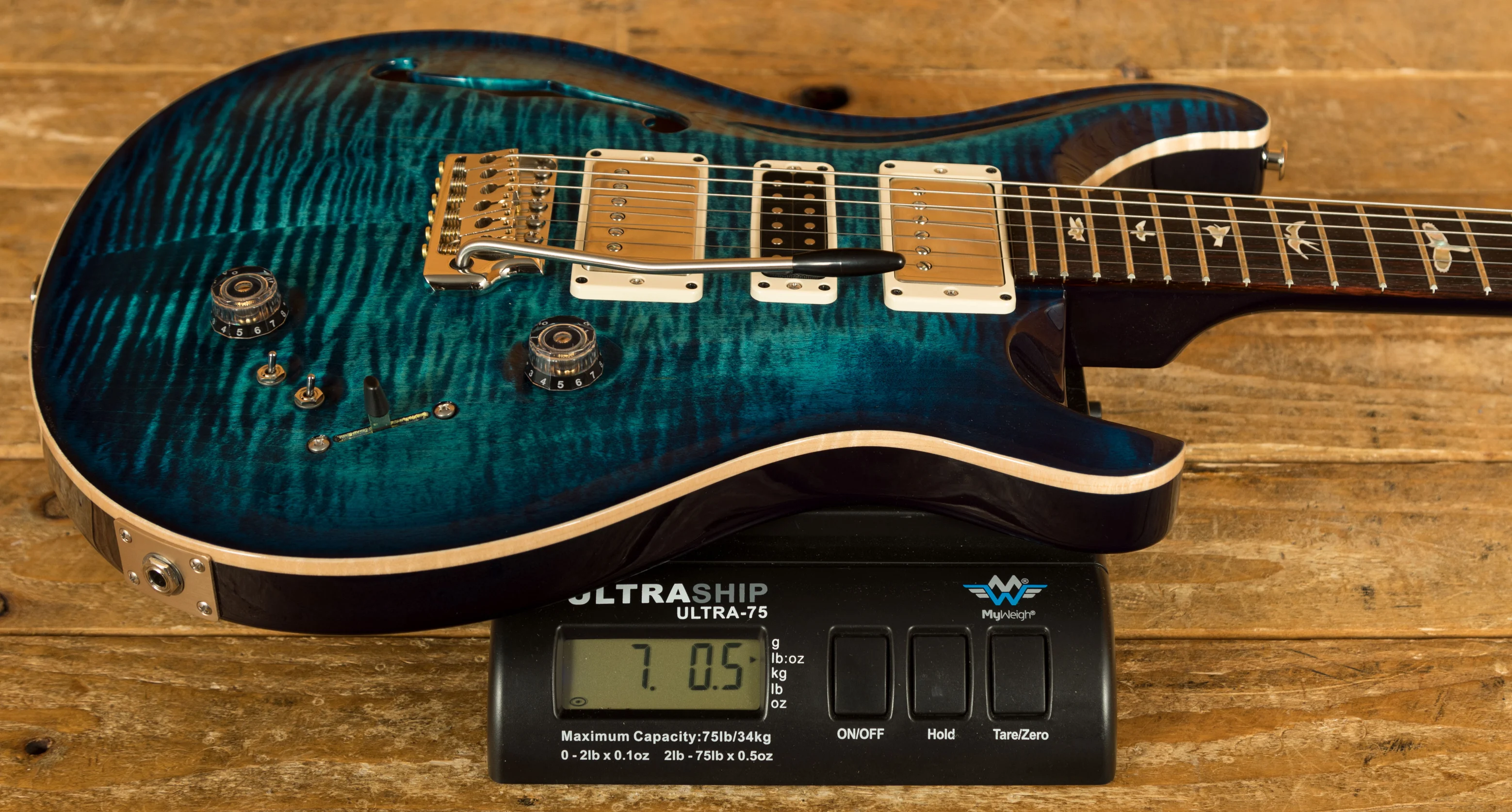 With a stunning carved Maple Top and a Mahogany back, finished in Cobalt Blue, the Special looks every bit as good as it sounds. Similar in appearance to the John Mayer Super Eagle, it is perfectly weighted and balanced while the semi hollow design offers incredible resonance and sustain.