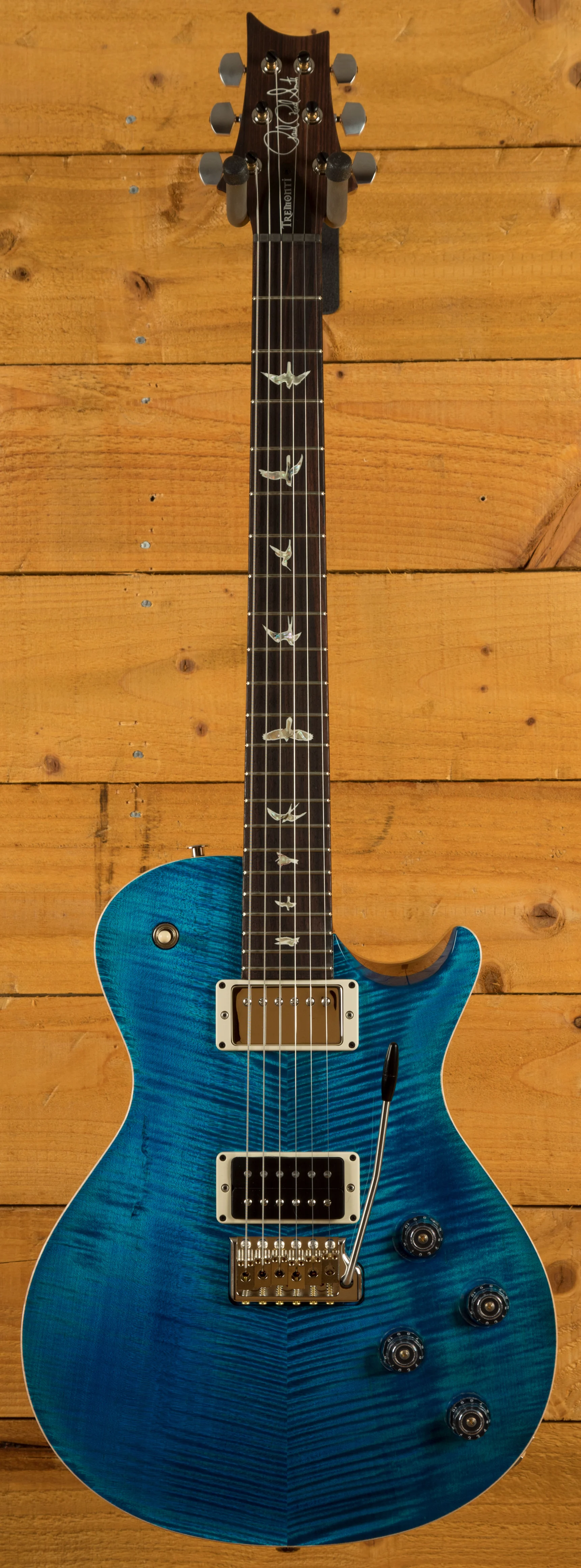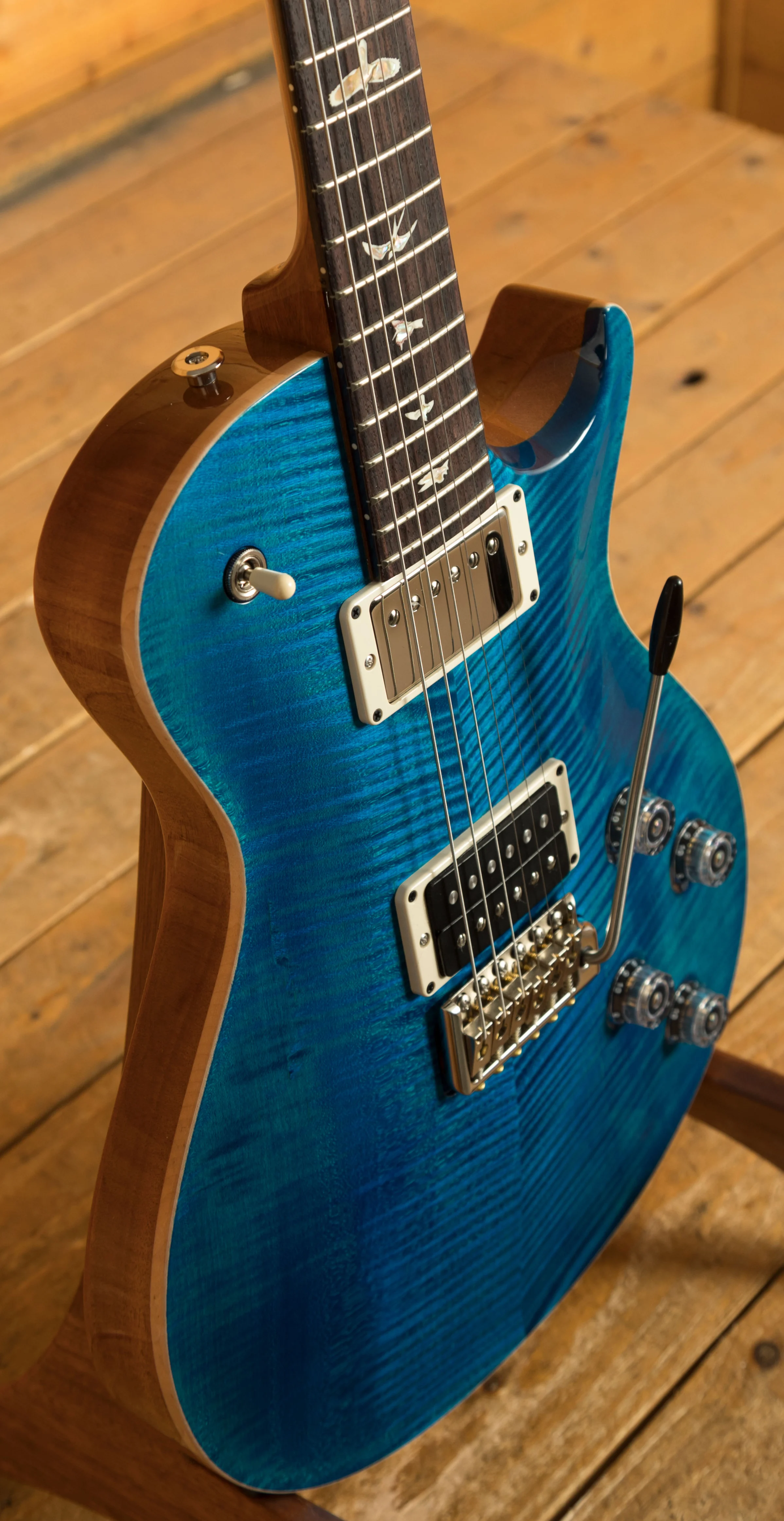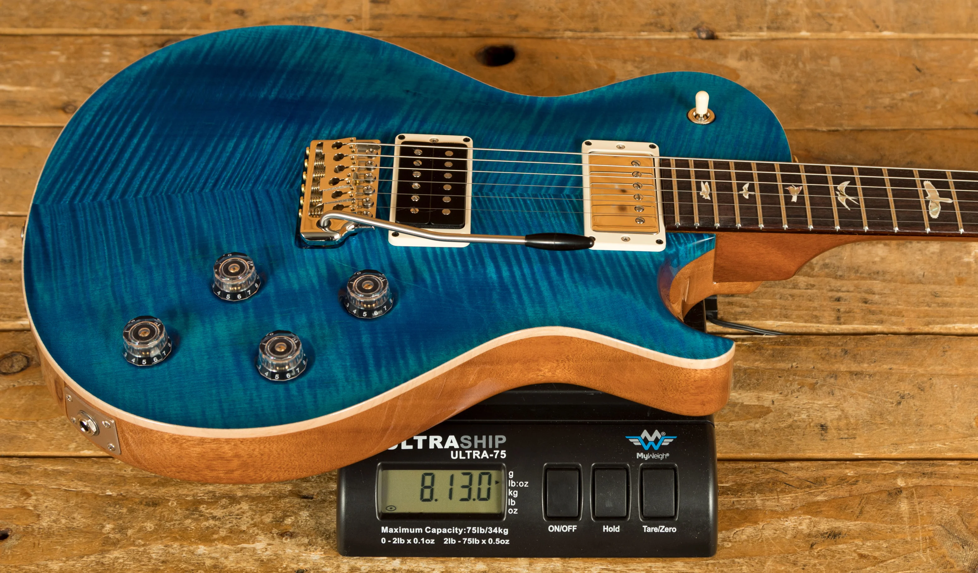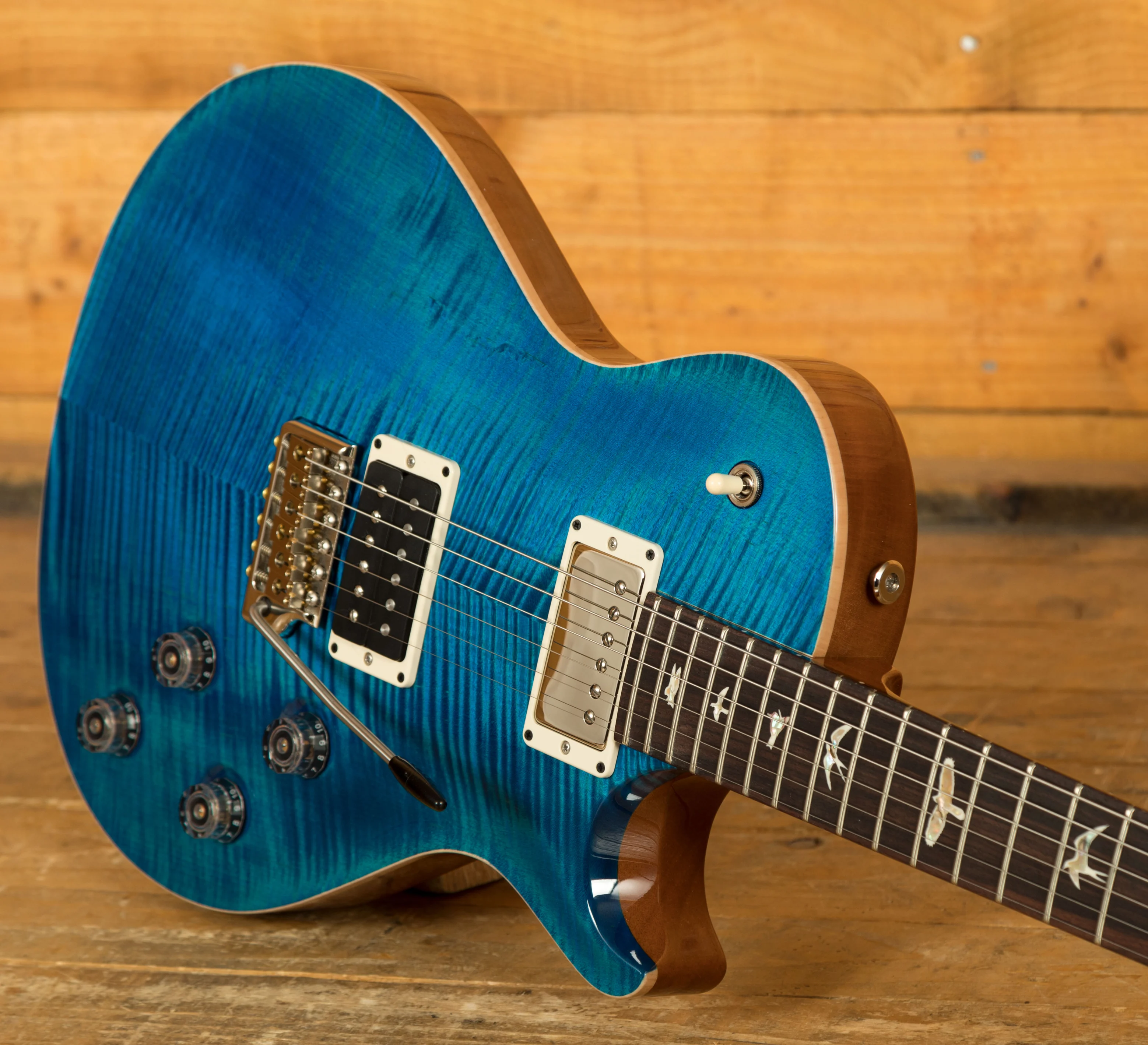 With a stunning carved figured maple top and mahogany back, it looks every bit as good as it sounds. Beautifully balanced and offering great access right up the neck, it is comfortable and at home whether you are laying down some huge riffs or melting faces at the treble end. The PRS Aquamarine finish is really understated and gives this guitar real premium feel.