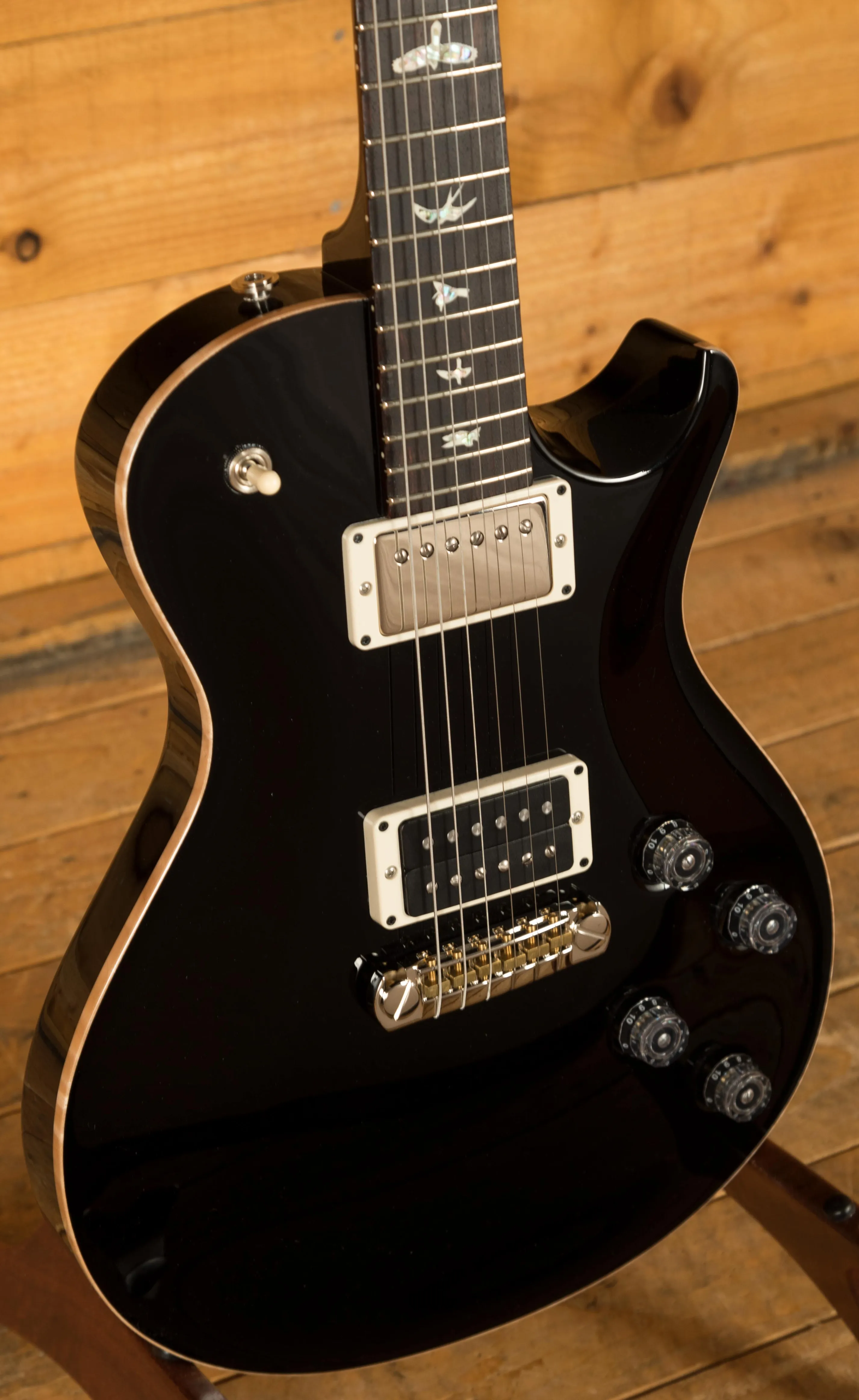 With a Mahogany body and Maple top finished in black, it looks every bit as good as it sounds. Beautifully balanced and offering great access right up the neck, it is comfortable and at home whether you are laying down some huge riffs or melting faces at the treble end. The PRS Black finish is really understated and gives this guitar real premium feel.