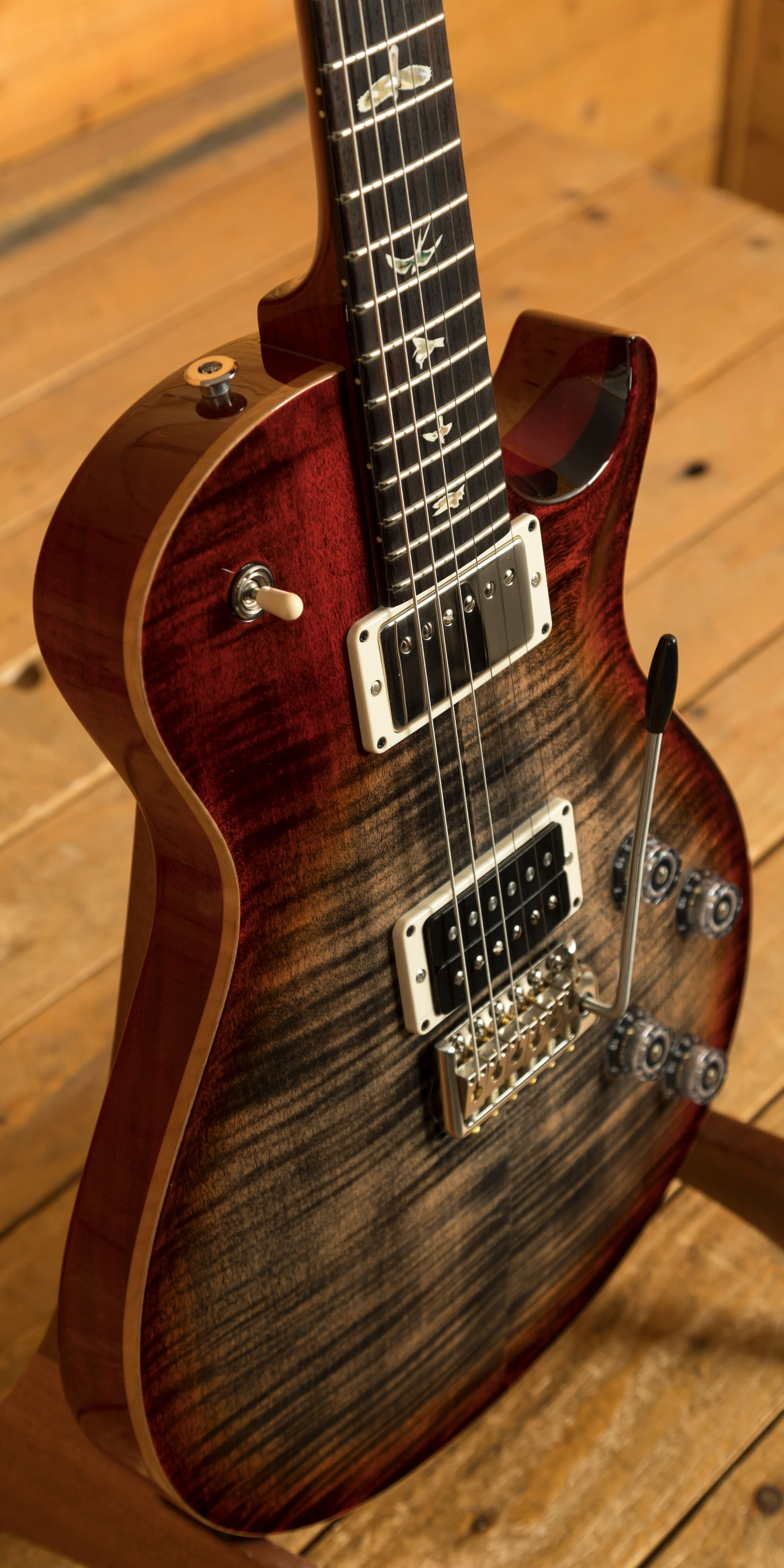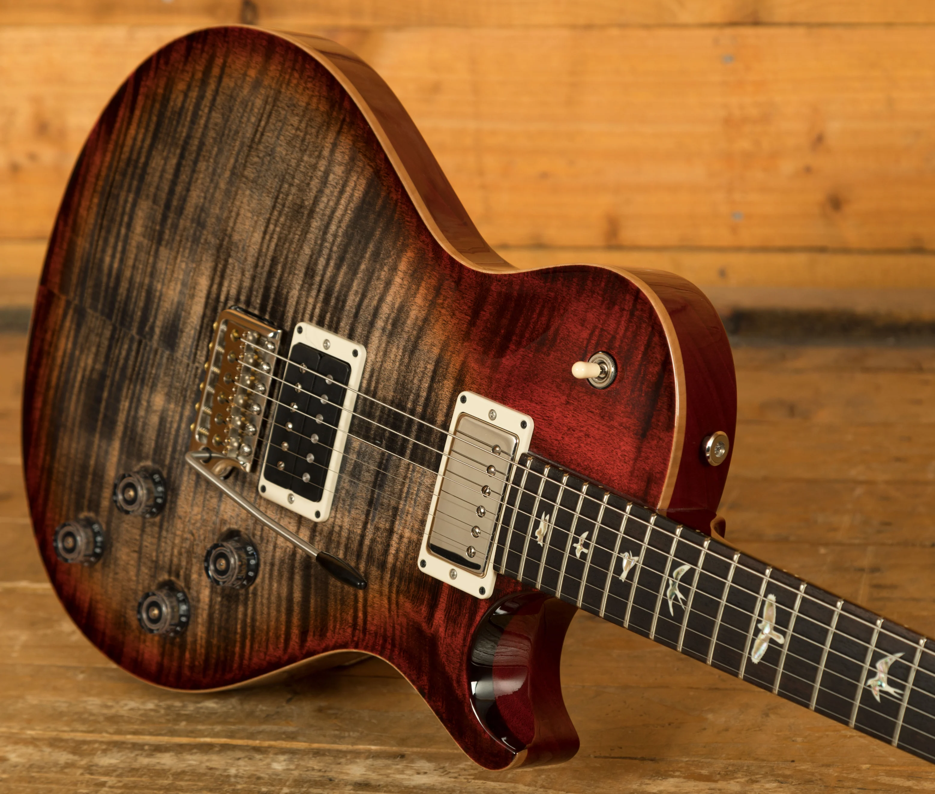 With a stunning carved figured maple top and mahogany back, it looks every bit as good as it sounds. Beautifully balanced and offering great access right up the neck, it is comfortable and at home whether you are laying down some huge riffs or melting faces at the treble end. The PRS Charcoal Cherryburst finish is really understated and gives this guitar real premium feel.