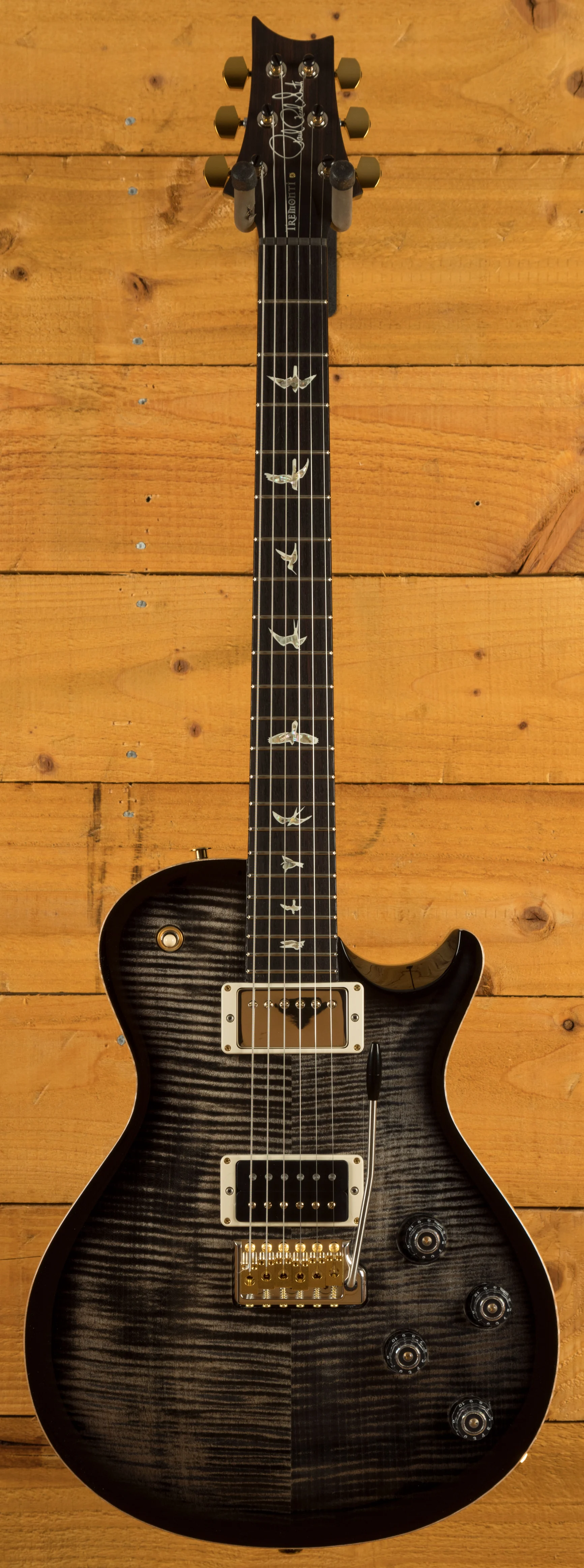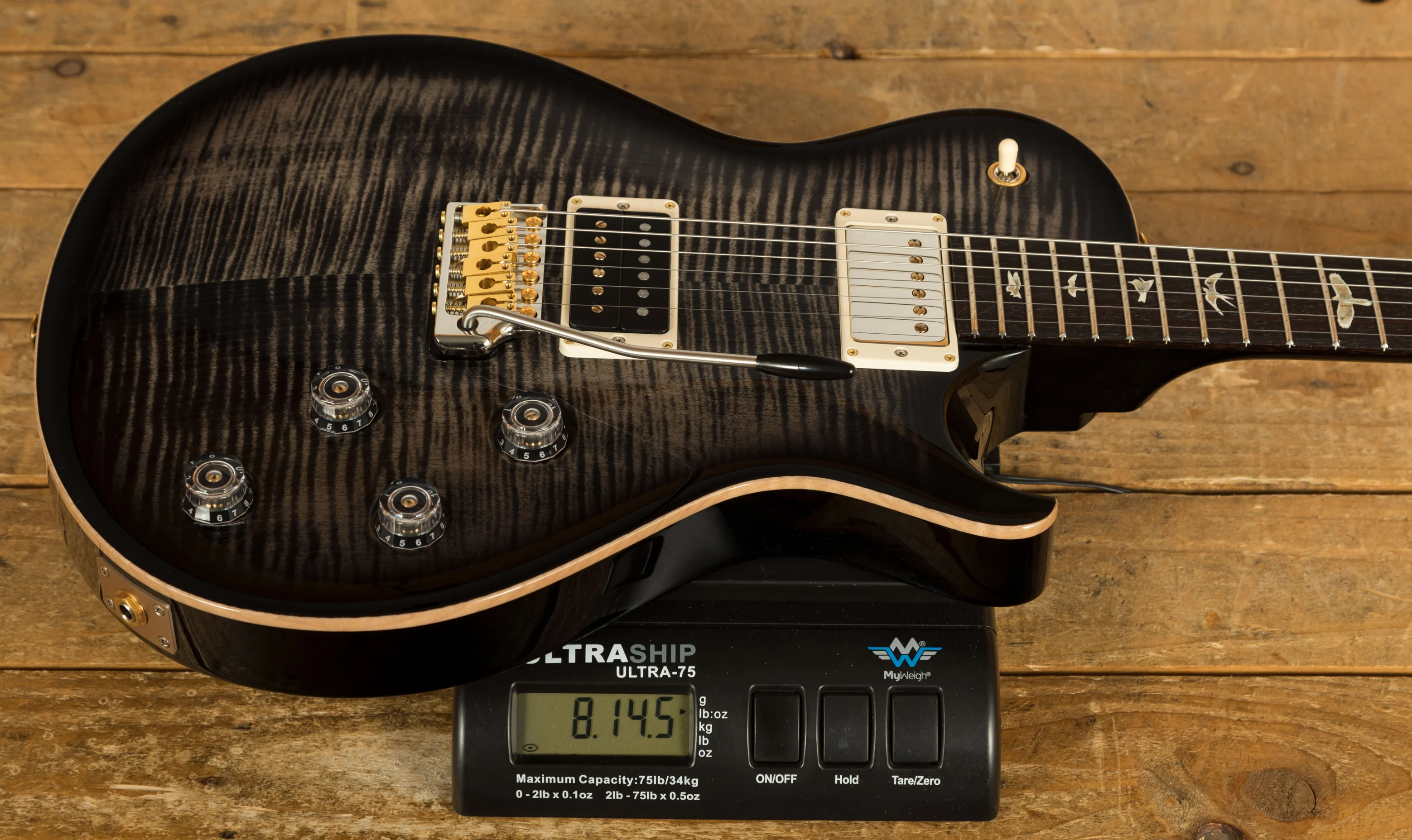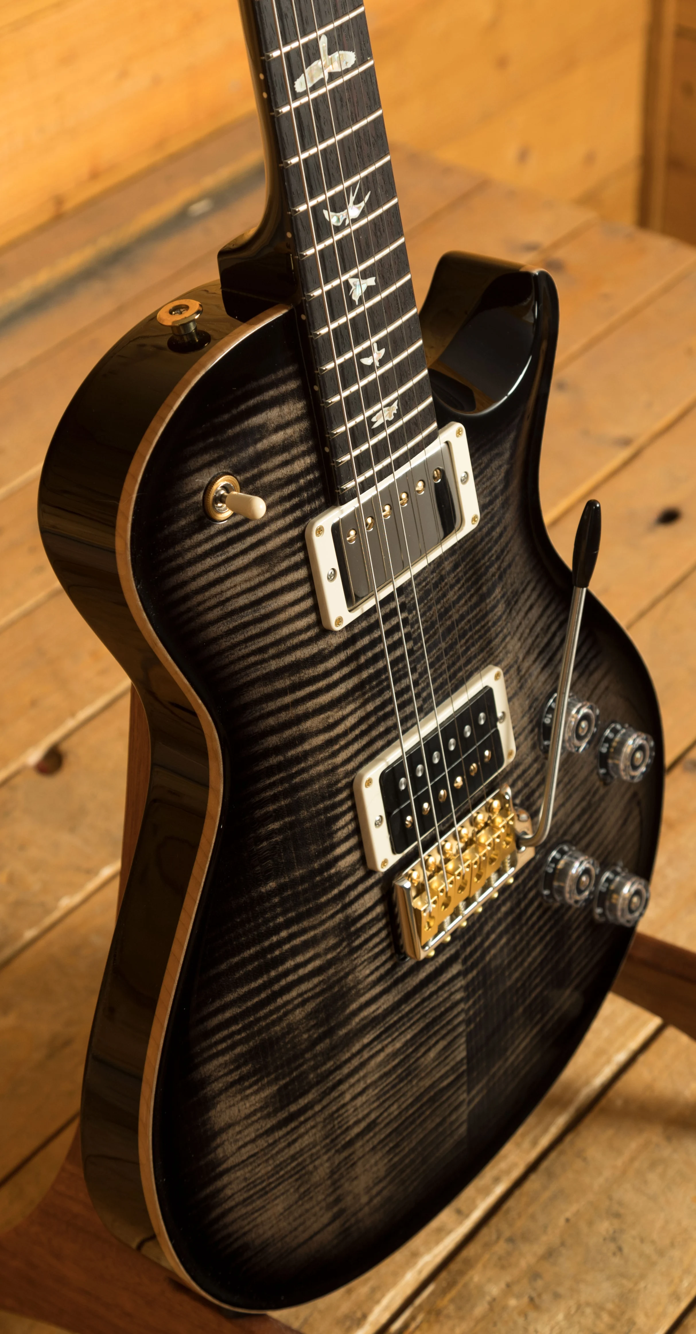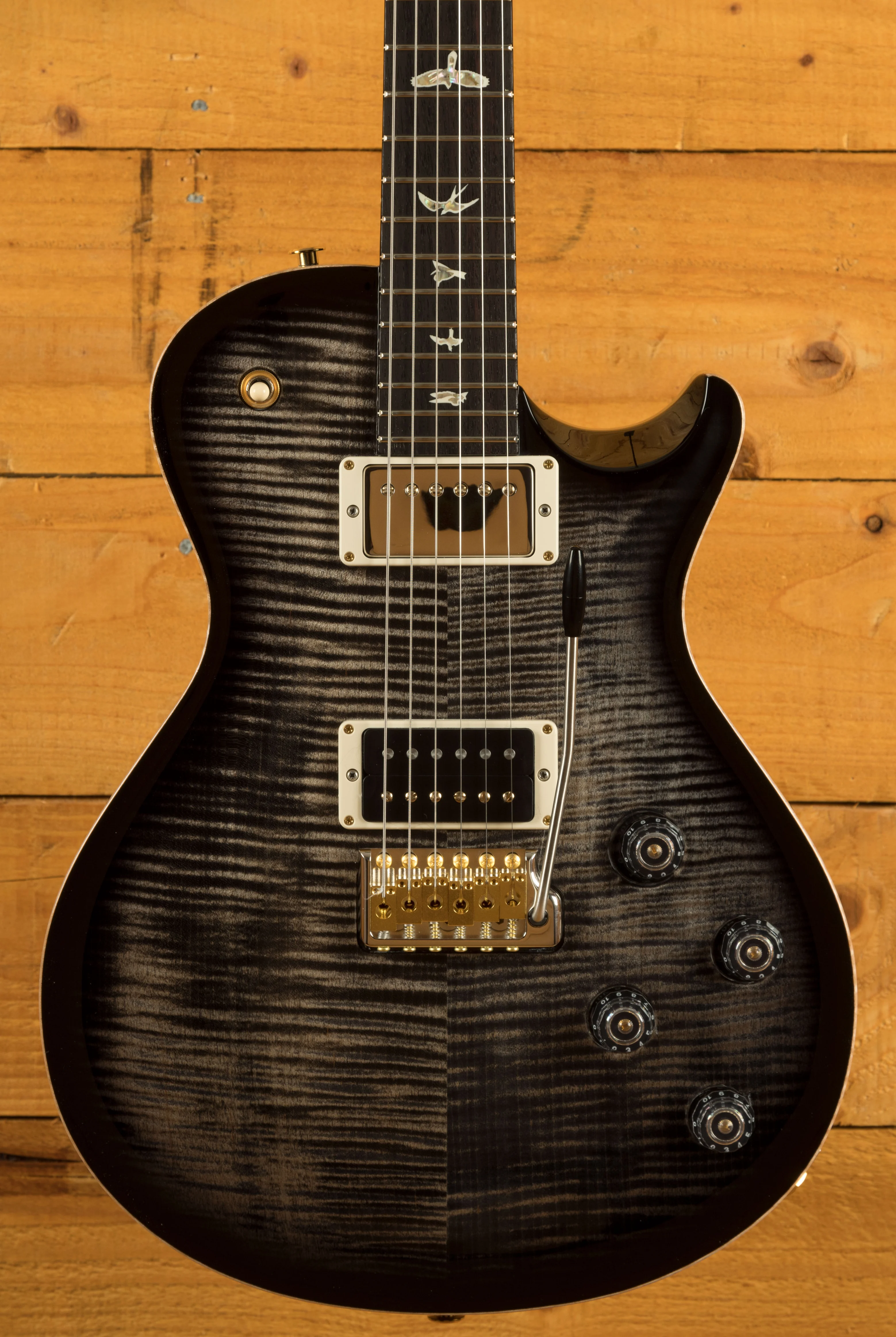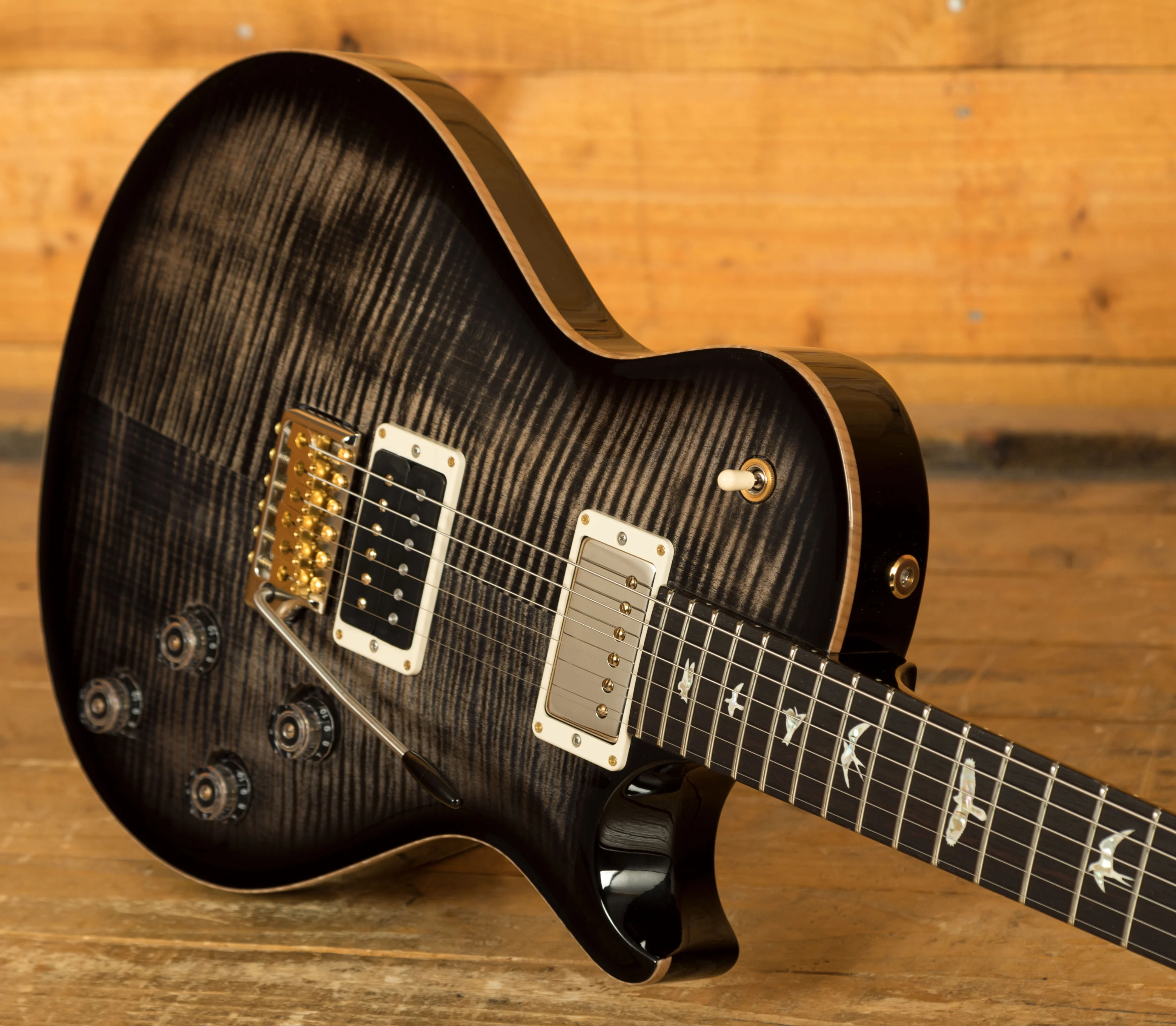 With a stunning carved figured 10 Grade Maple top and mahogany back, it looks every bit as good as it sounds. Beautifully balanced and offering great access right up the neck, it is comfortable and at home whether you are laying down some huge riffs or melting faces at the treble end. The PRS Charcoal Contour Burst finish is really understated and gives this guitar real premium feel.