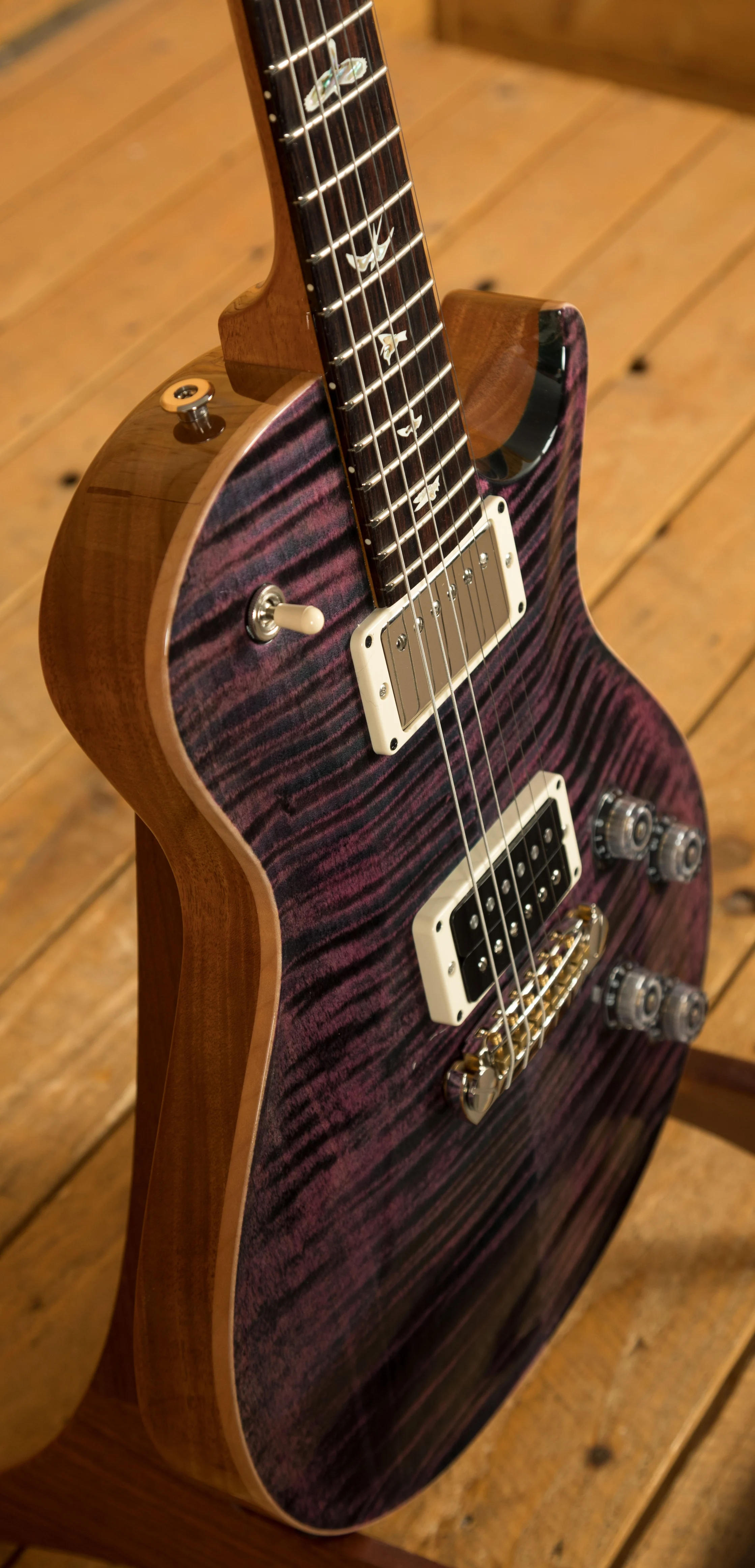 A comfortable 22 fret Mahogany neck boasts a Rosewood fingerboard that proudly bears the signature PRS birds. With a 25 scale length and a pattern thin profile, its a neck that just wants to be played.
