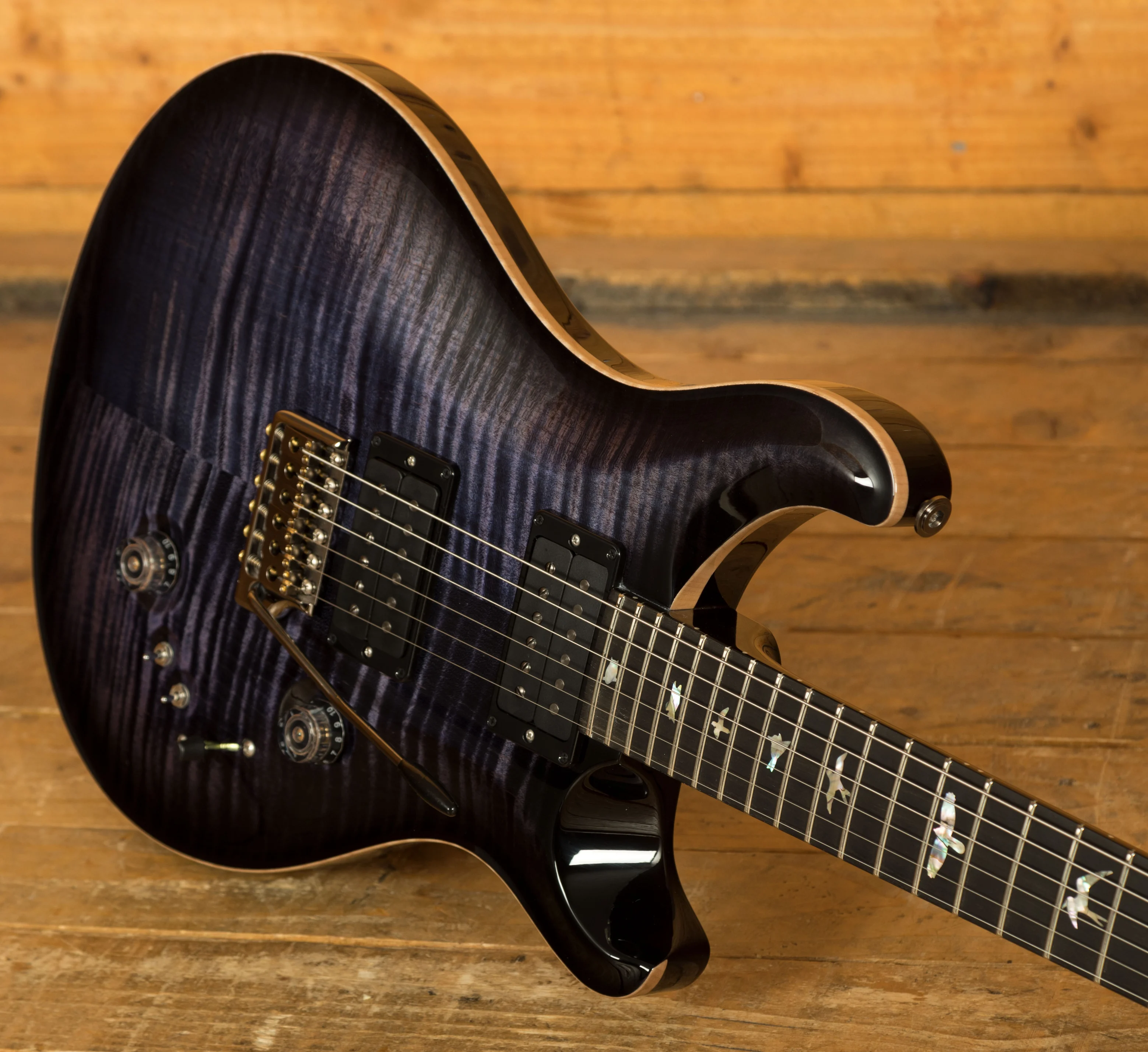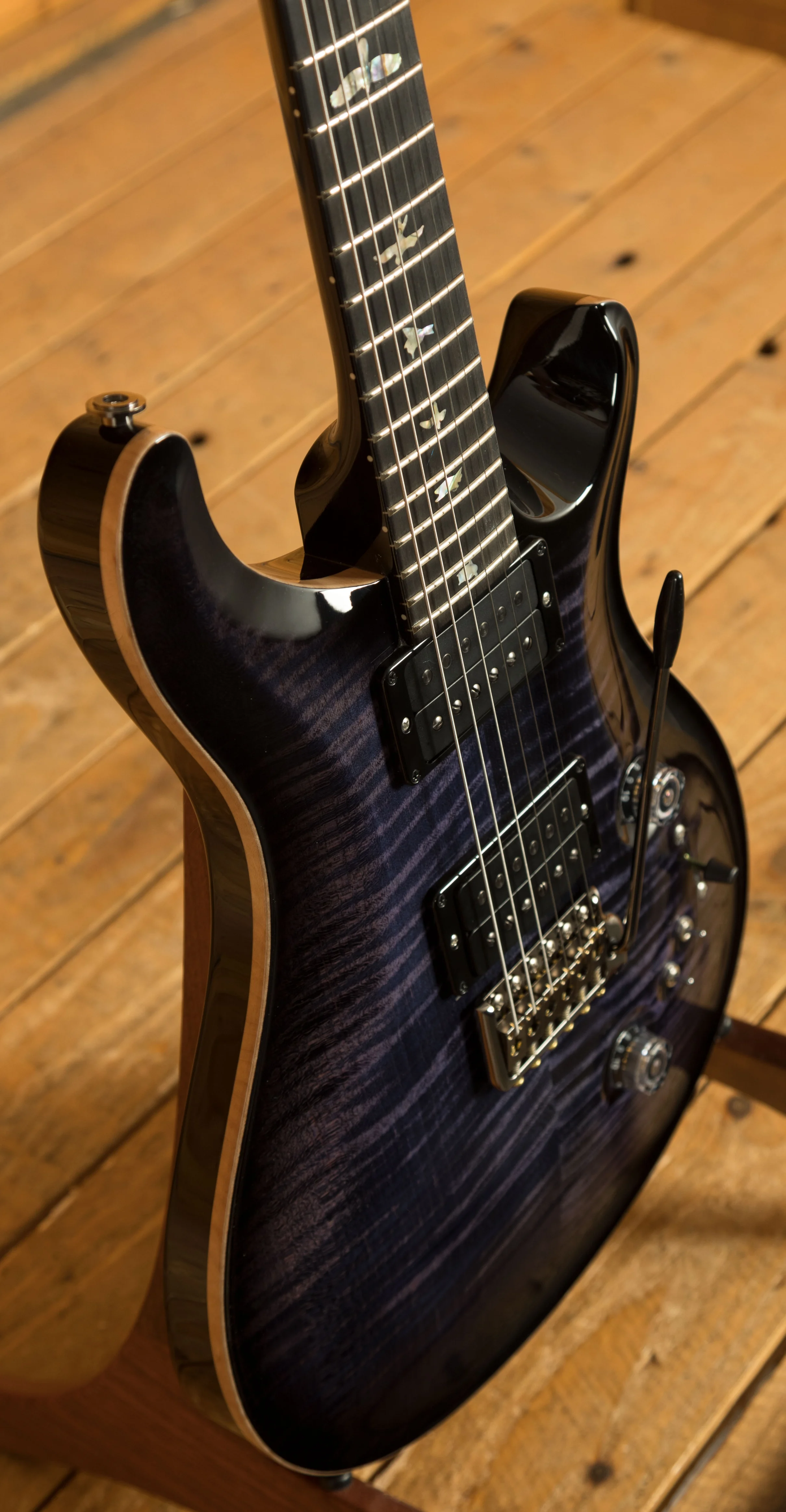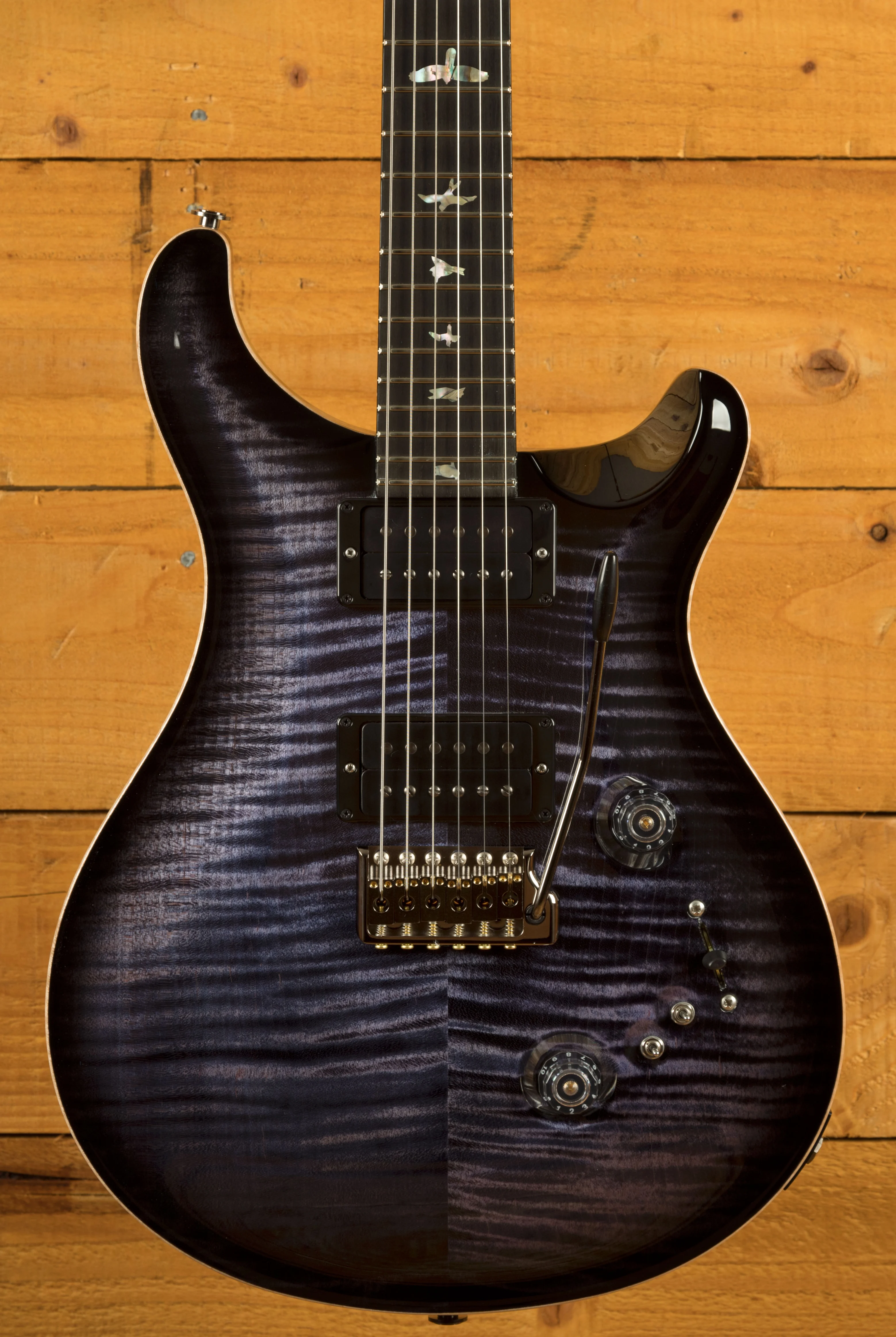 The Mahogany body with the Violin Carved Figured Maple top offers a rich warmth and depth that complements the beautiful aesthetic. With a Pattern Thin profile, 25" scale length and of course, 24 frets, the Mahogany neck feels really comfortable and familiar. The iconic PRS birds sit proudly atop the Ebony fingerboard for the definitive PRS experience.