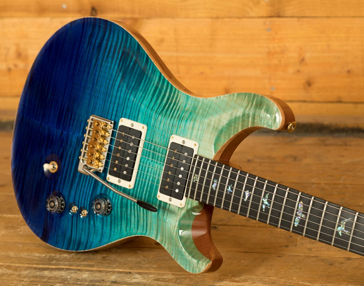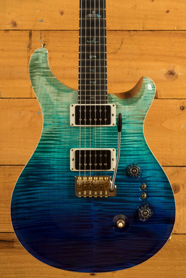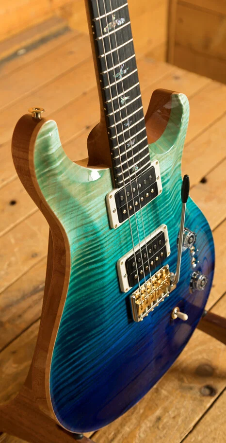With a stunning carved Wood Library Maple Top and a One-Piece Mahogany back, finished in Blue Fade the Custom 24-08 looks every bit as good as it sounds.